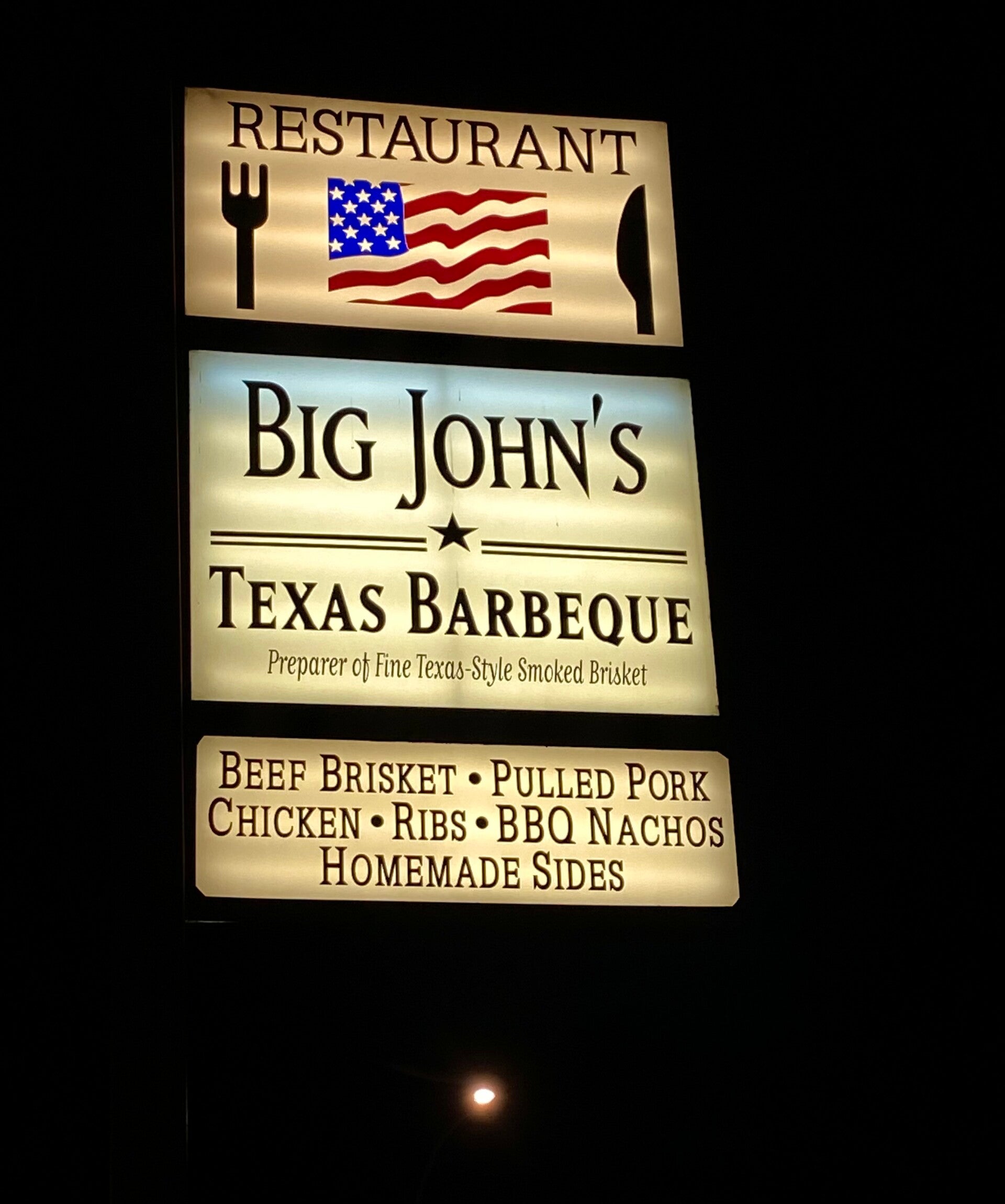 Den heutigen Abend haben wir gleich hier um die Ecke in einer umgebauten Tankstelle beim Texas Barbeque mit Live Musik ausklingen lassen. Und welch Zufall, bei uns am Tisch saß ein junges Paar aus dem Landkreis Aschaffenburg, dass hier auch einen dreiwöchigen Road Trip unternimmt. :-)