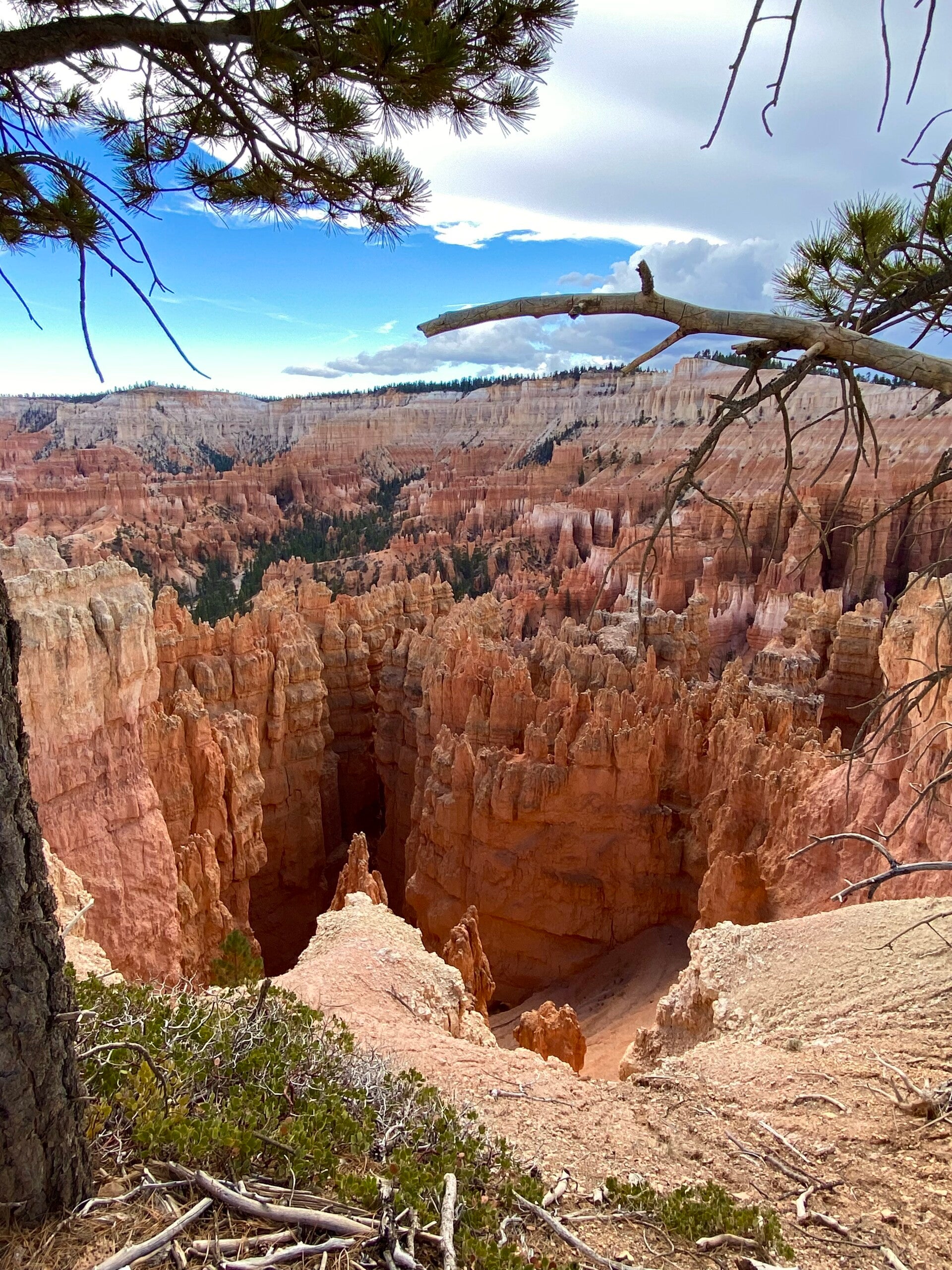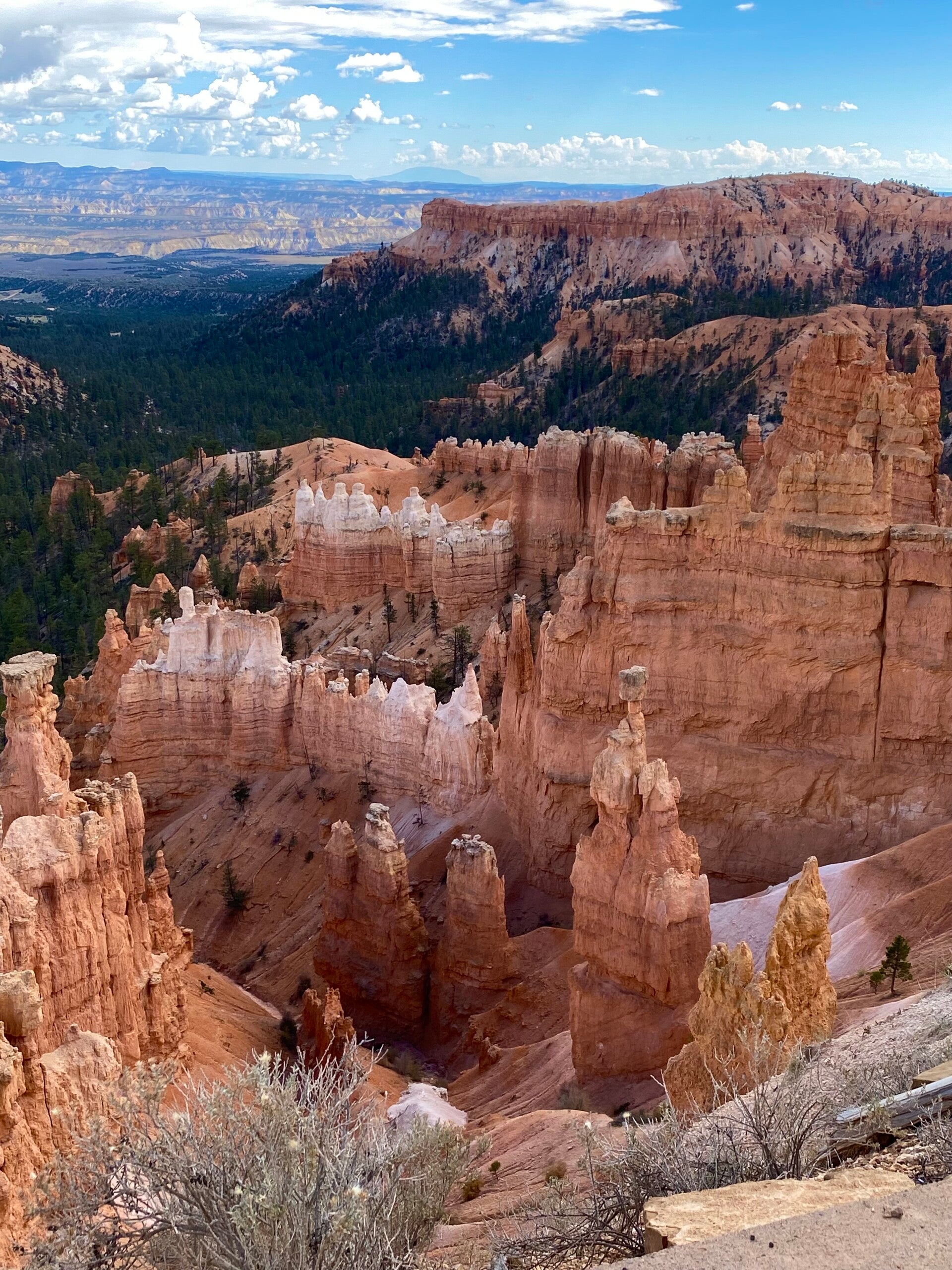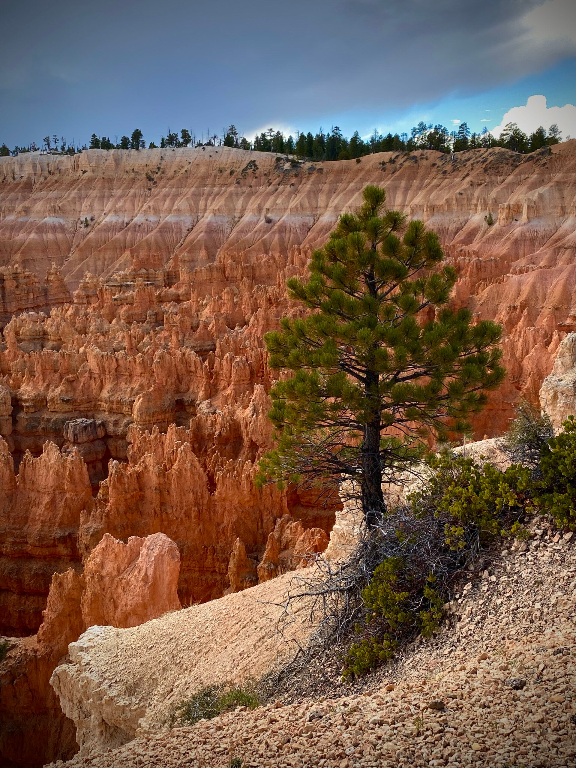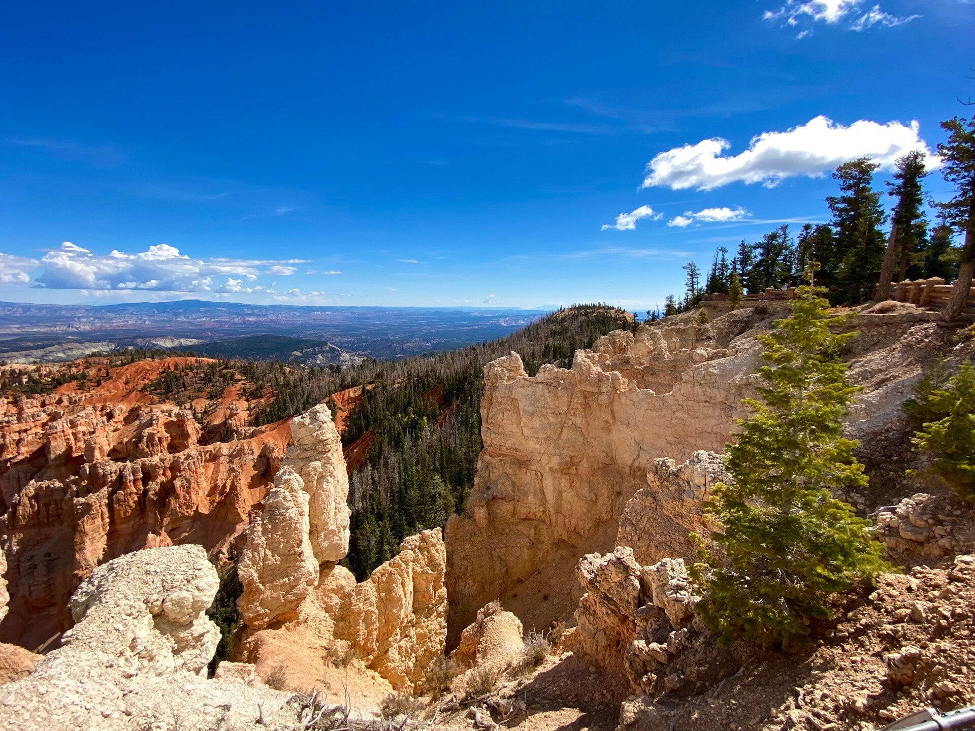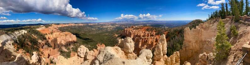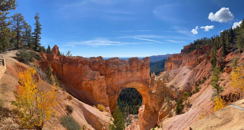 Dann passierten wir den Eingang zum Nationalpark. Hier fährt man ca. 20 Meilen auf dem Grad des Berge bis auf eine Höhe von 2700 m. Unser erster Halt, die Naturbridge. Man könnte ewig am Geländer stehen und die Schönheit betrachten. Aber es gab noch viel mehr zu sehen. So fuhren wir erstmal zum Endpunkt dem Rainbow Point um dann auf dem Rückweg die Aussichtspunkte abzuklappern.