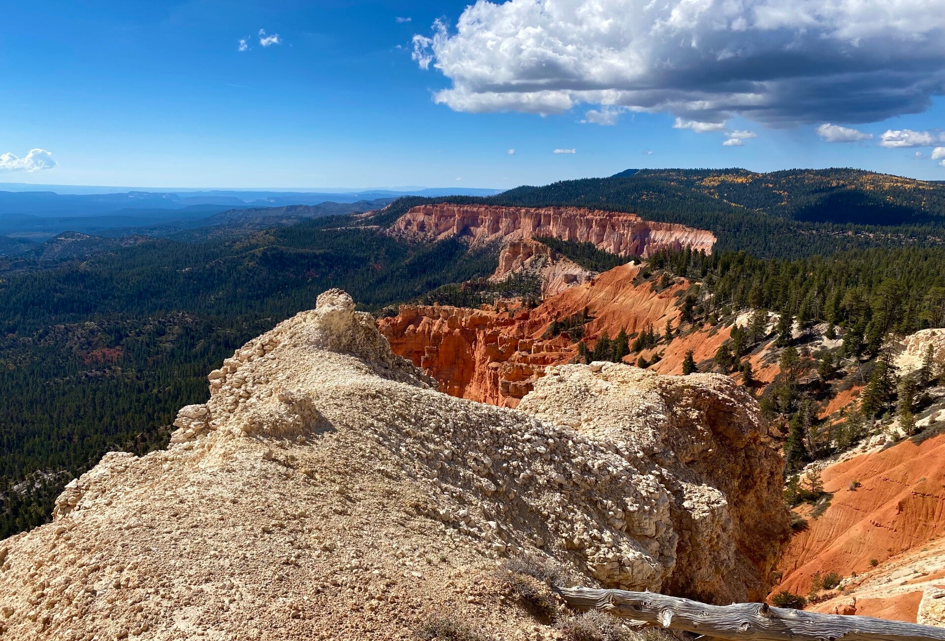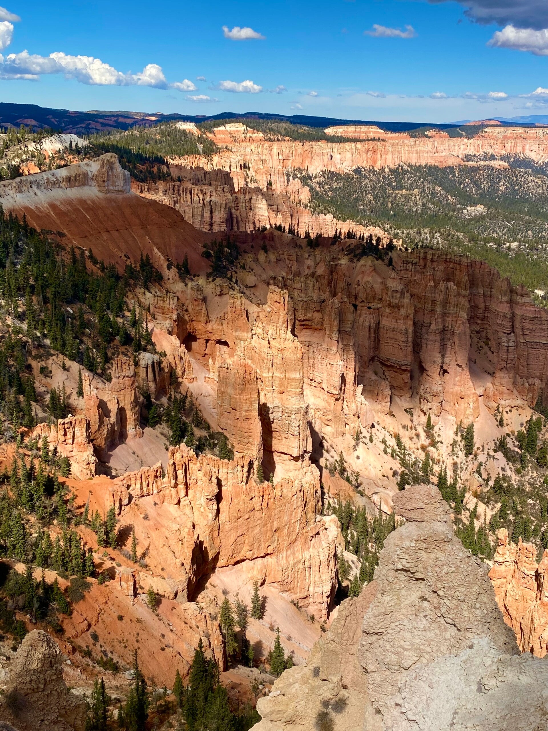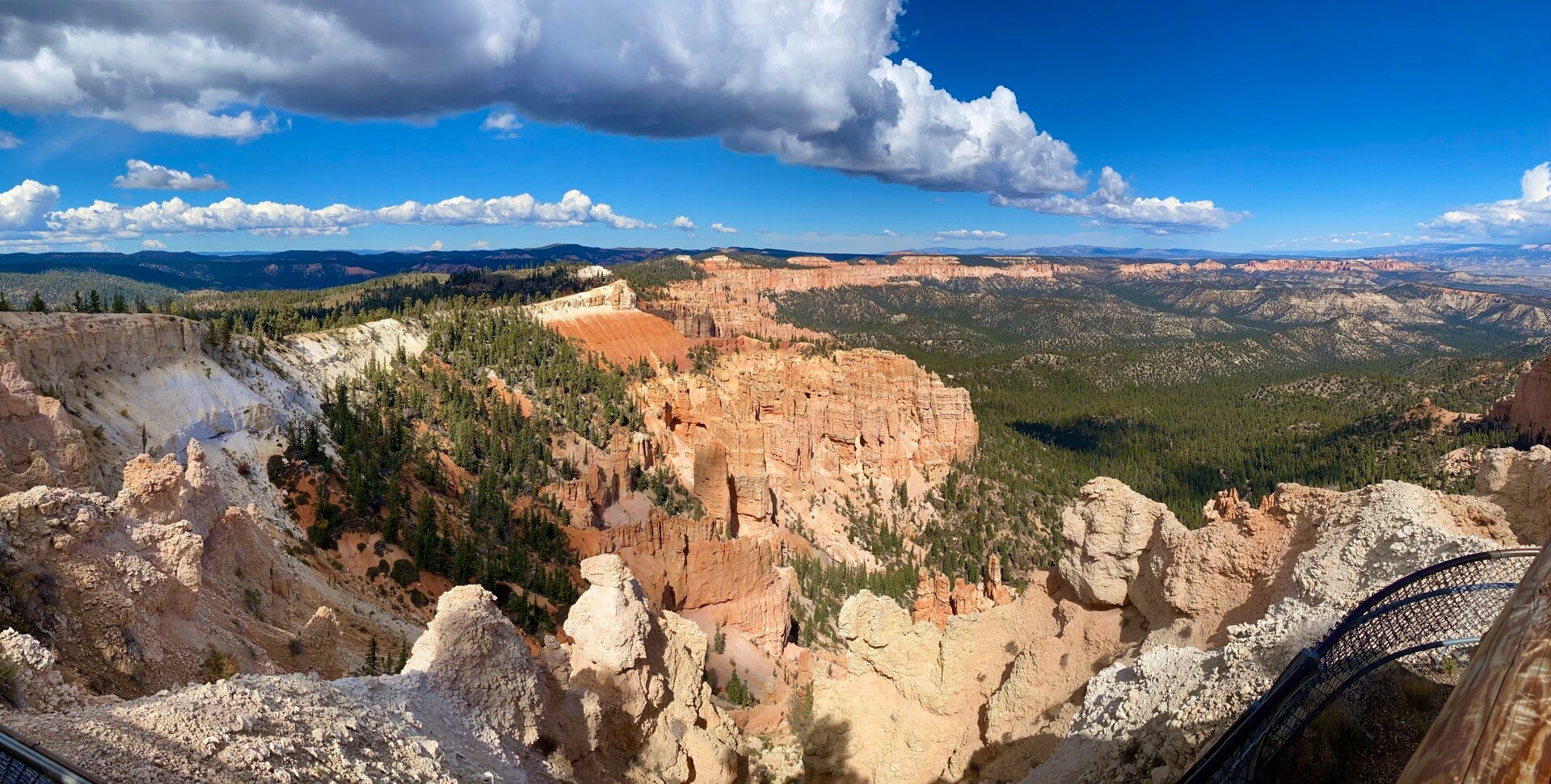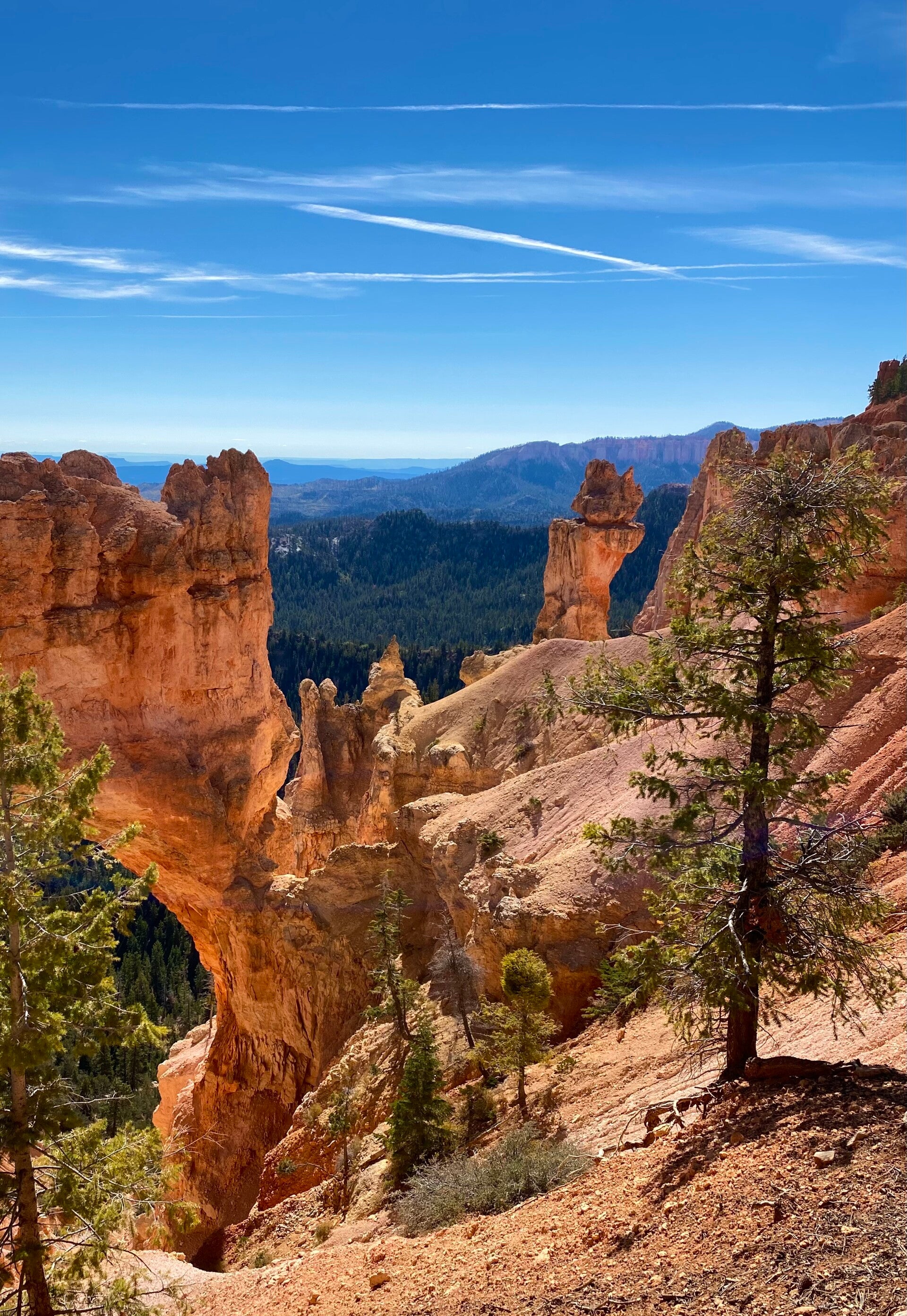 Dann passierten wir den Eingang zum Nationalpark. Hier fährt man ca. 20 Meilen auf dem Grad des Berge bis auf eine Höhe von 2700 m. Unser erster Halt, die Naturbridge. Man könnte ewig am Geländer stehen und die Schönheit betrachten. Aber es gab noch viel mehr zu sehen. So fuhren wir erstmal zum Endpunkt dem Rainbow Point um dann auf dem Rückweg die Aussichtspunkte abzuklappern.