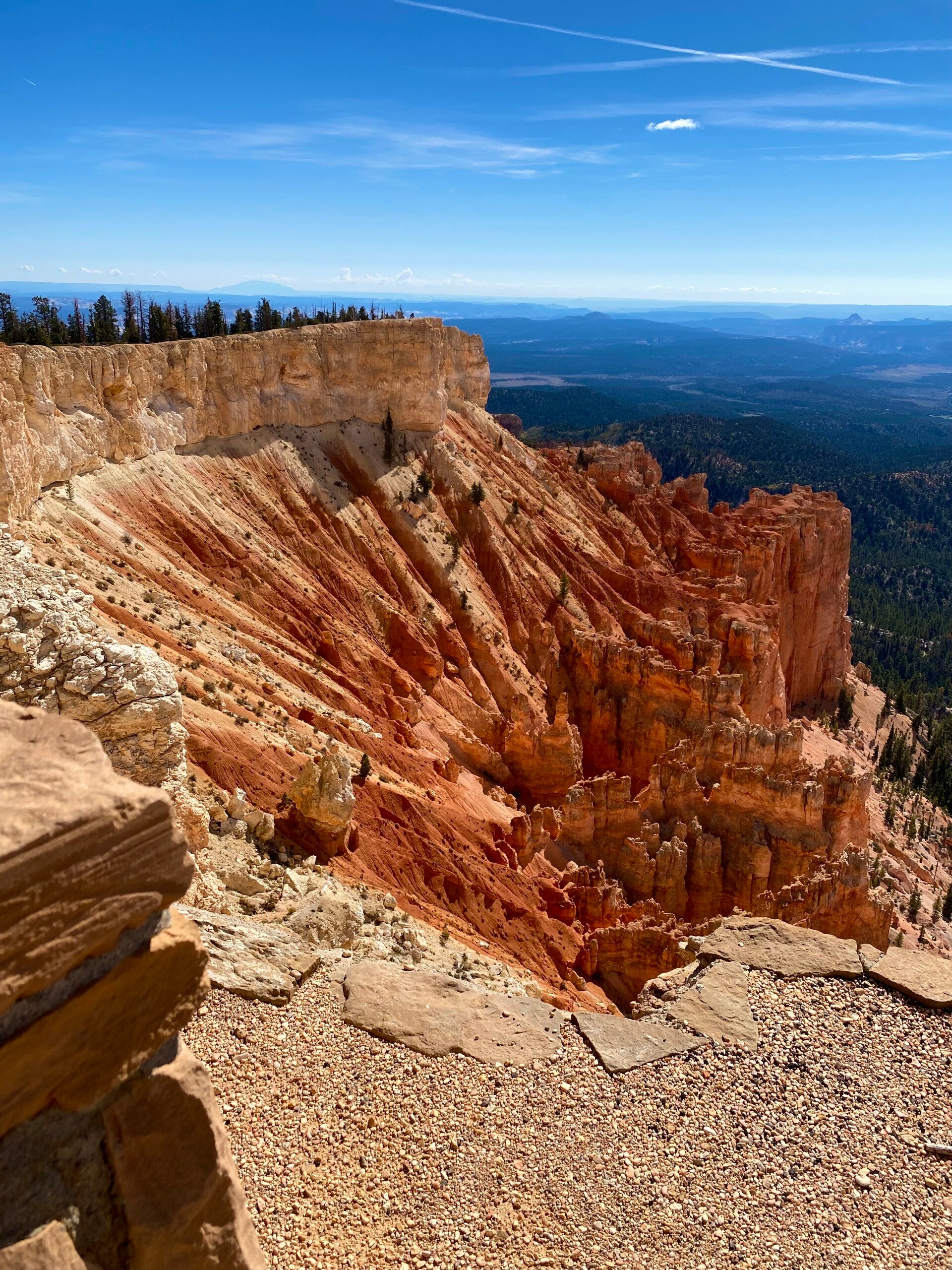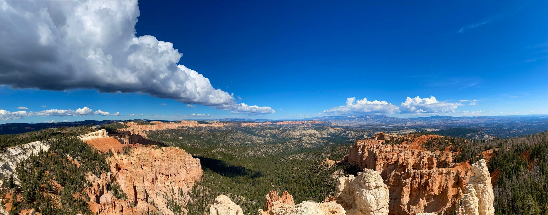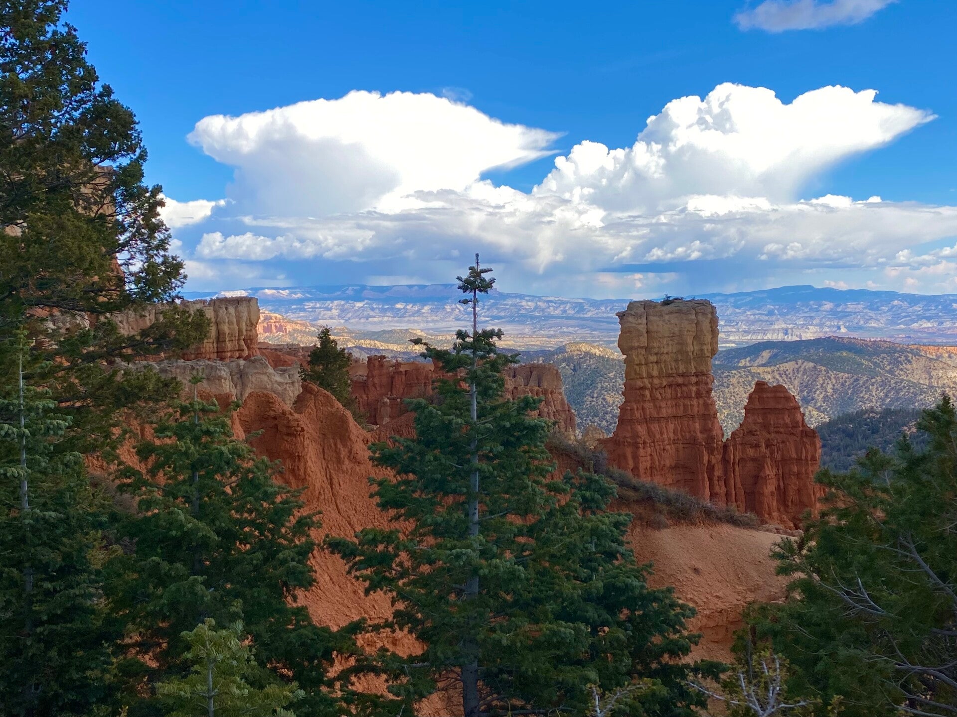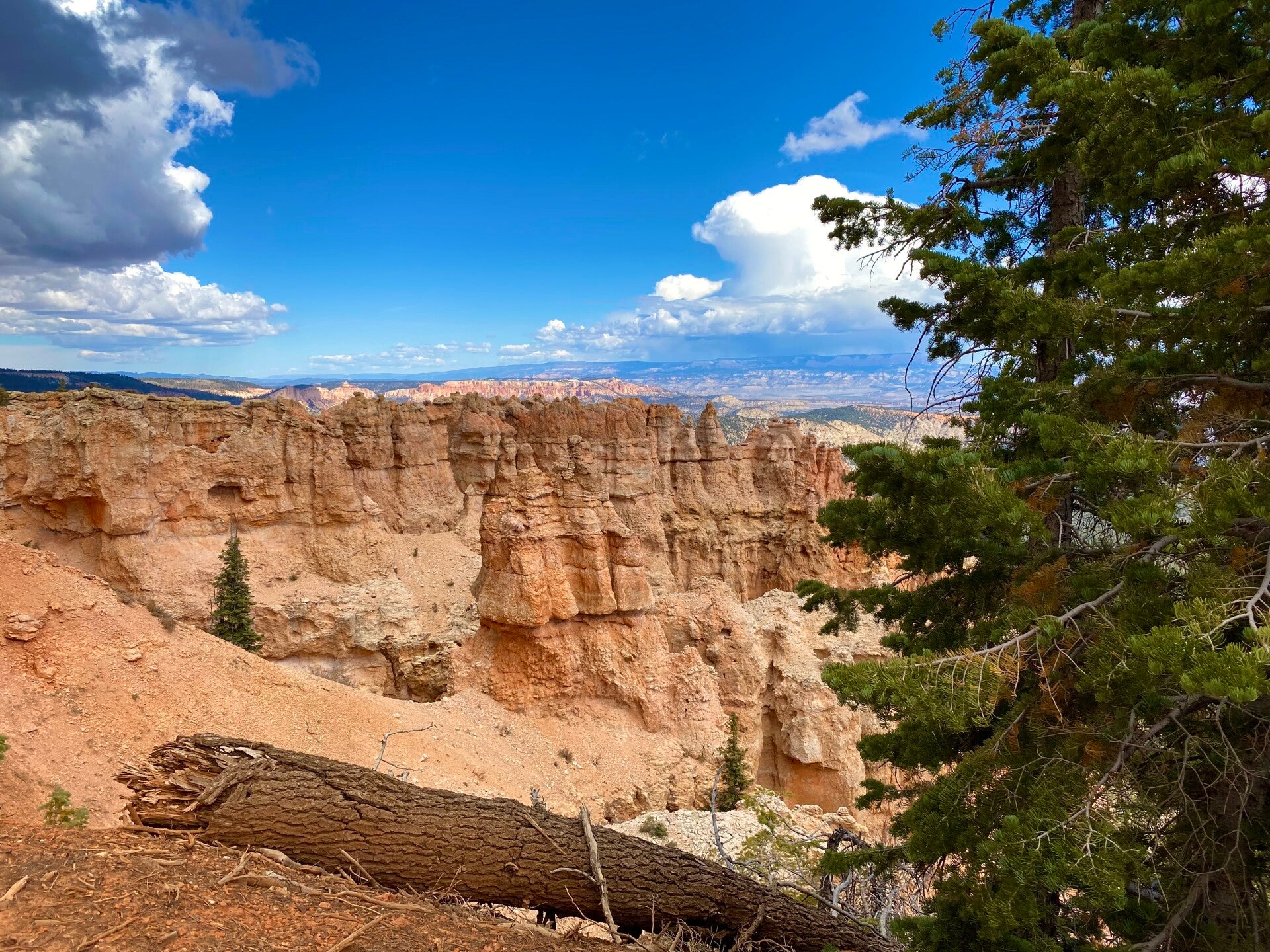 Dann passierten wir den Eingang zum Nationalpark. Hier fährt man ca. 20 Meilen auf dem Grad des Berge bis auf eine Höhe von 2700 m. Unser erster Halt, die Naturbridge. Man könnte ewig am Geländer stehen und die Schönheit betrachten. Aber es gab noch viel mehr zu sehen. So fuhren wir erstmal zum Endpunkt dem Rainbow Point um dann auf dem Rückweg die Aussichtspunkte abzuklappern.