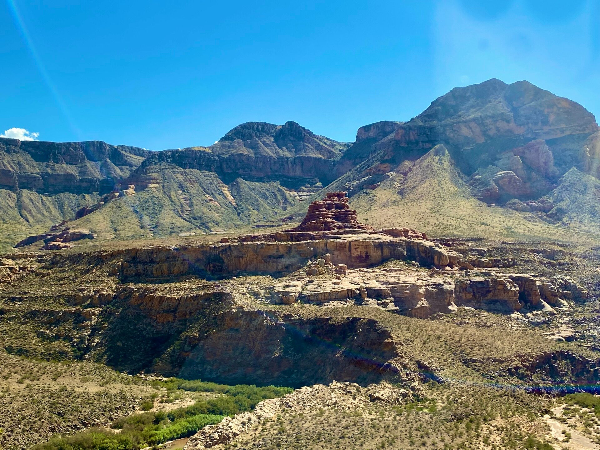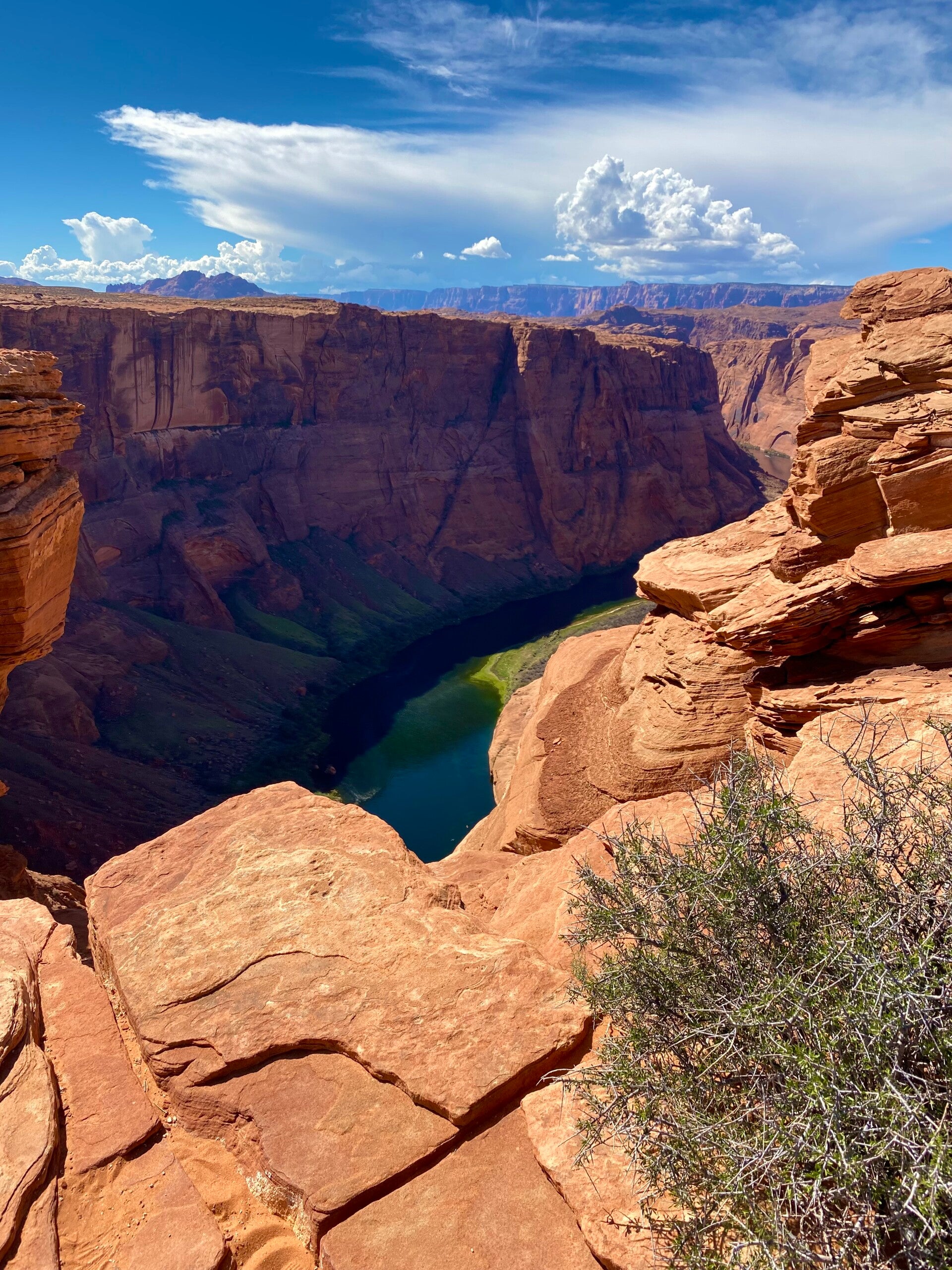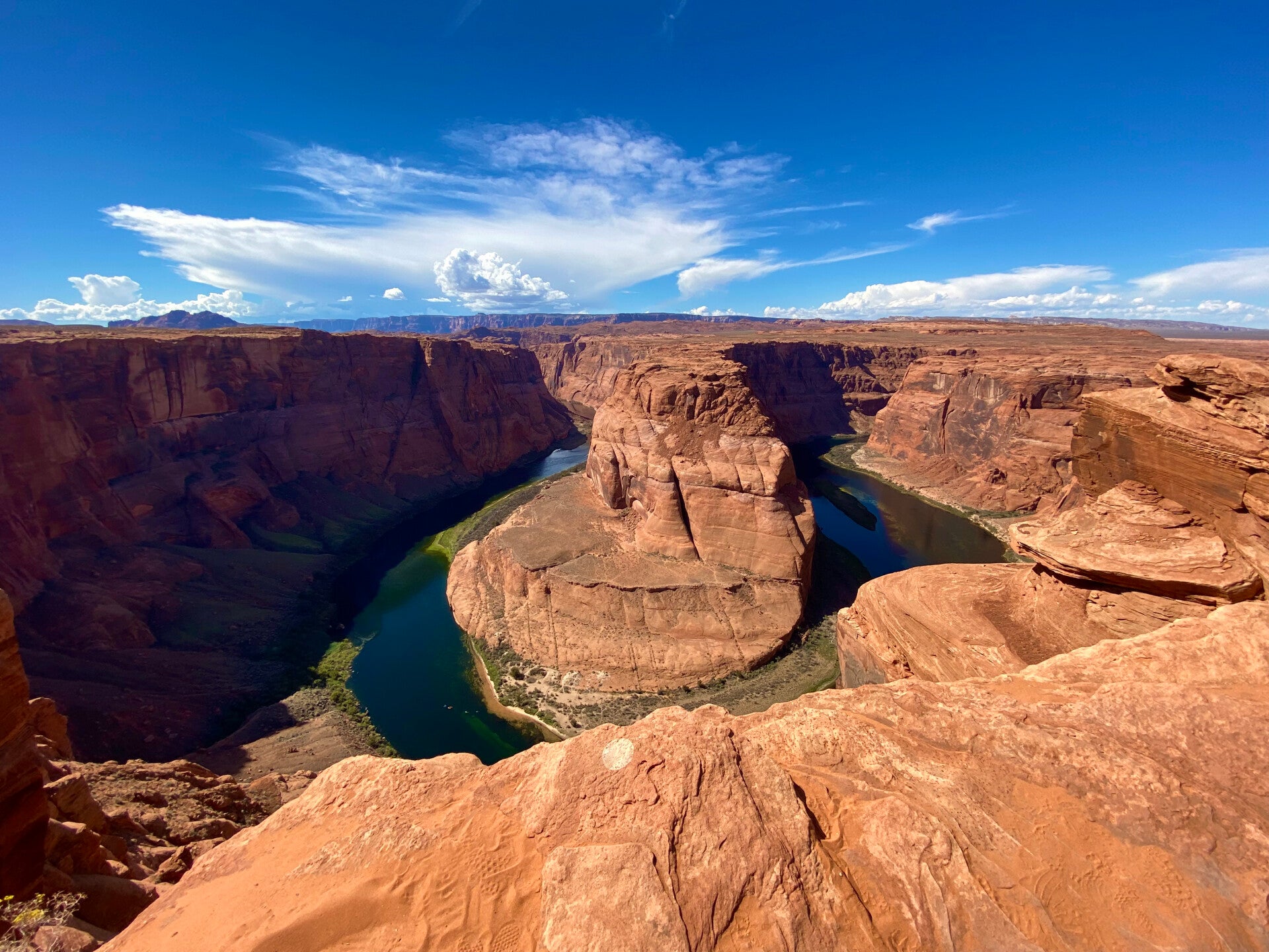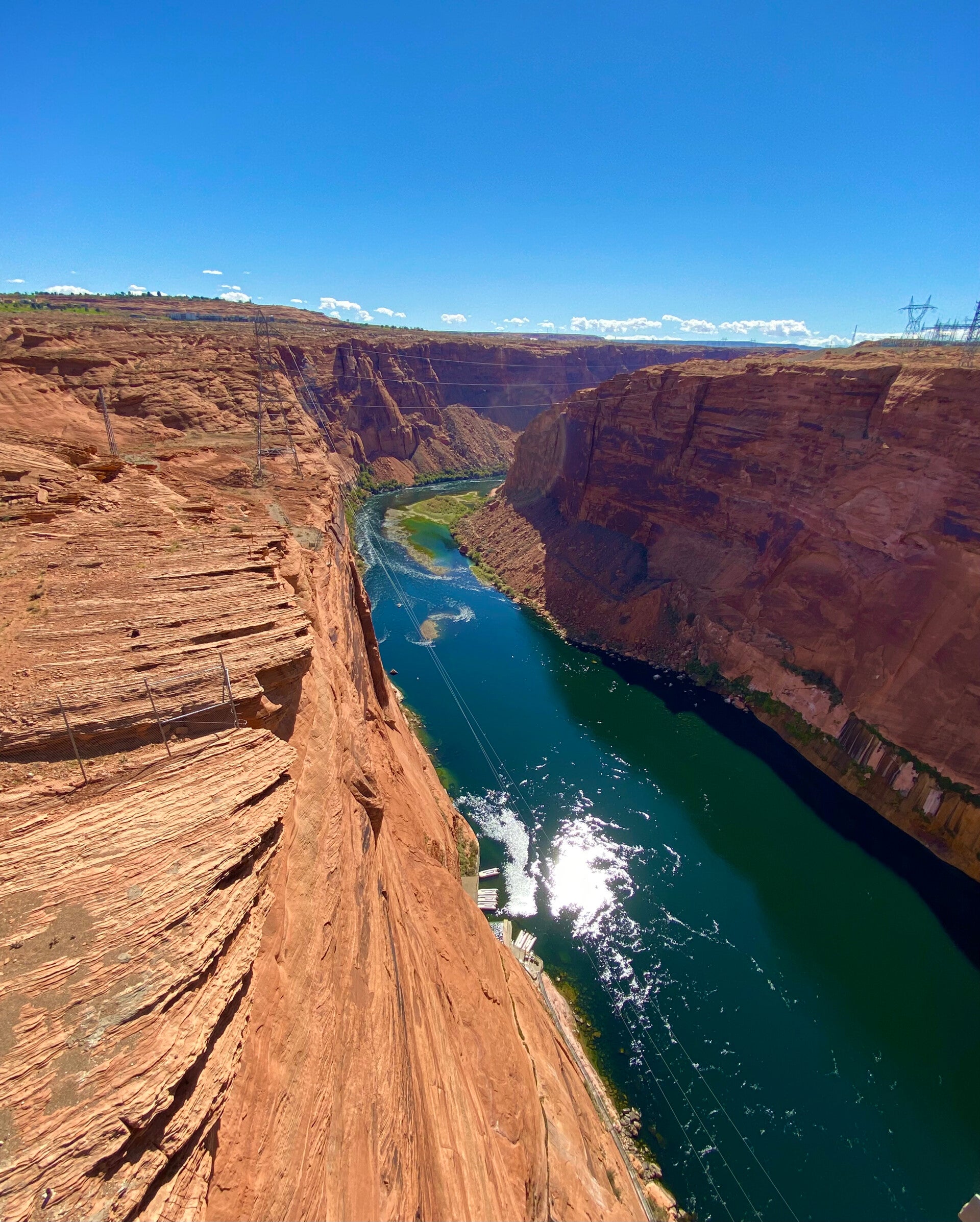 Ein Bildausschnitt aus der Mitte des Tales am Rande des Colorado Rivers. Der kleine gelbe Punkt ist ein Kajak. Die Menschen so klein wie Ameisen. Also die Größe und Tiefe hier einfach überwältigend. Man fühlt sich sehr sehr klein hier oben.