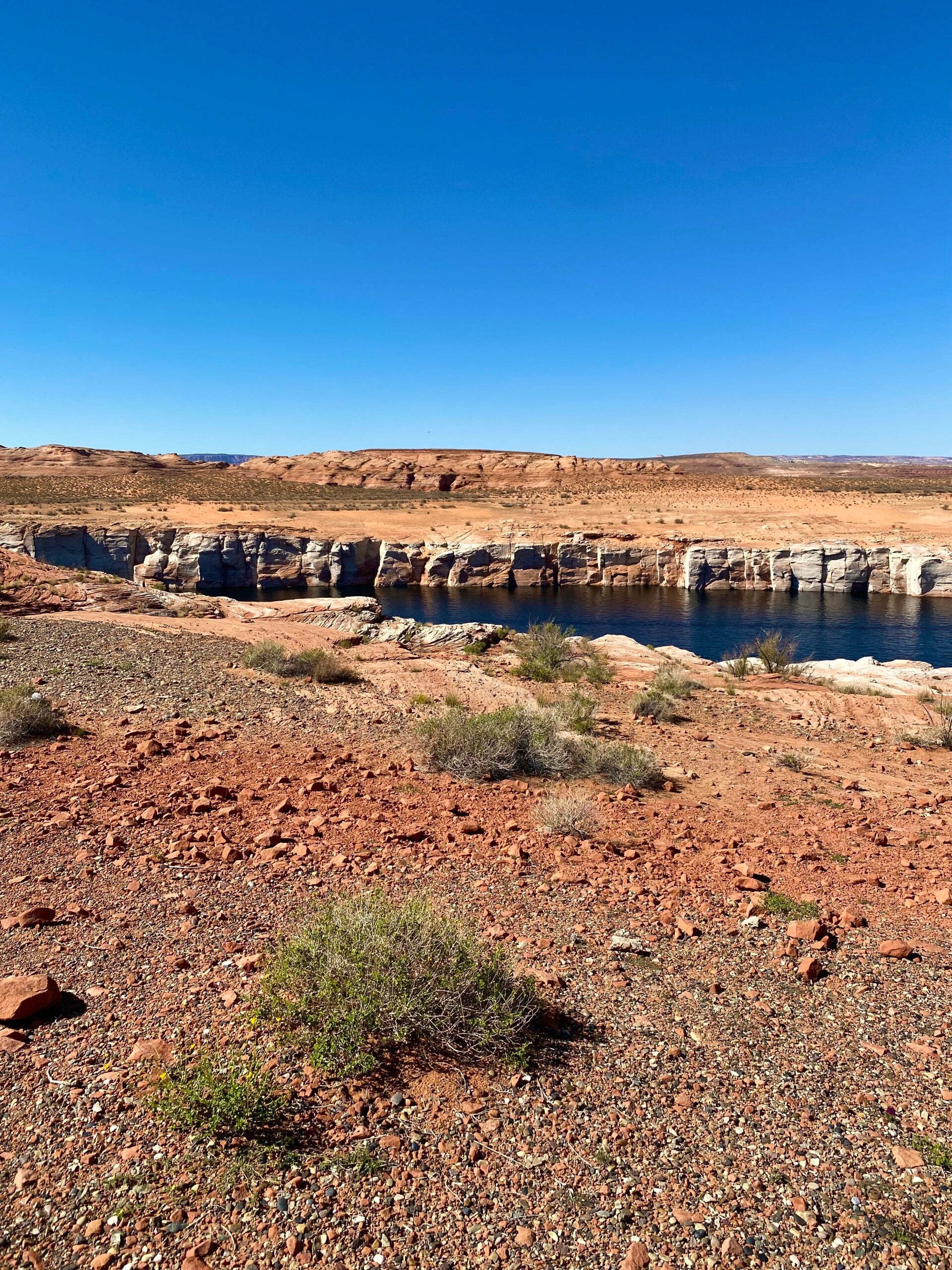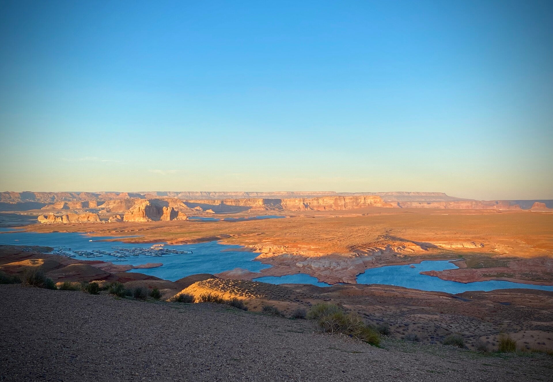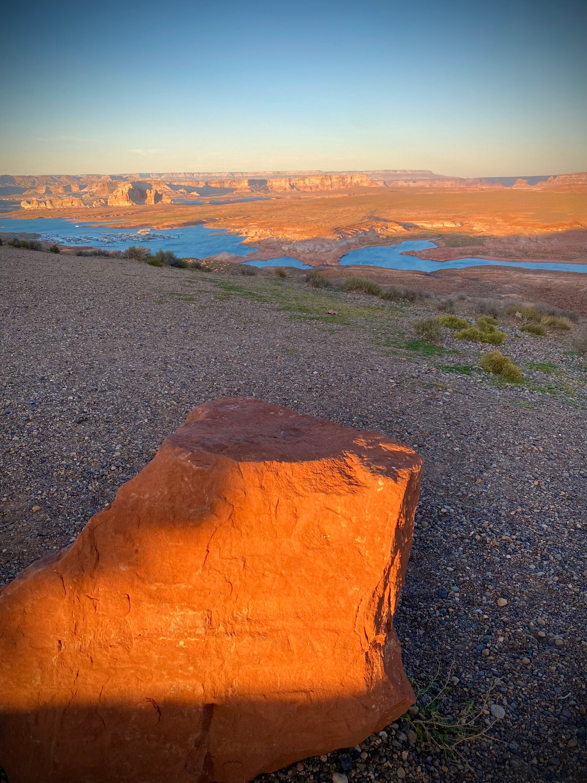 Auf unserem Weg zur Wahweap Marina haben wir den Sunset Overlook Point besucht. Ein herrlicher Ausblick, den man ewig genießen möchte. Der aber auch ehrfürchtig und etwas traurig macht. Welch riesiger See muss sich hier noch vor Jahren befunden haben.