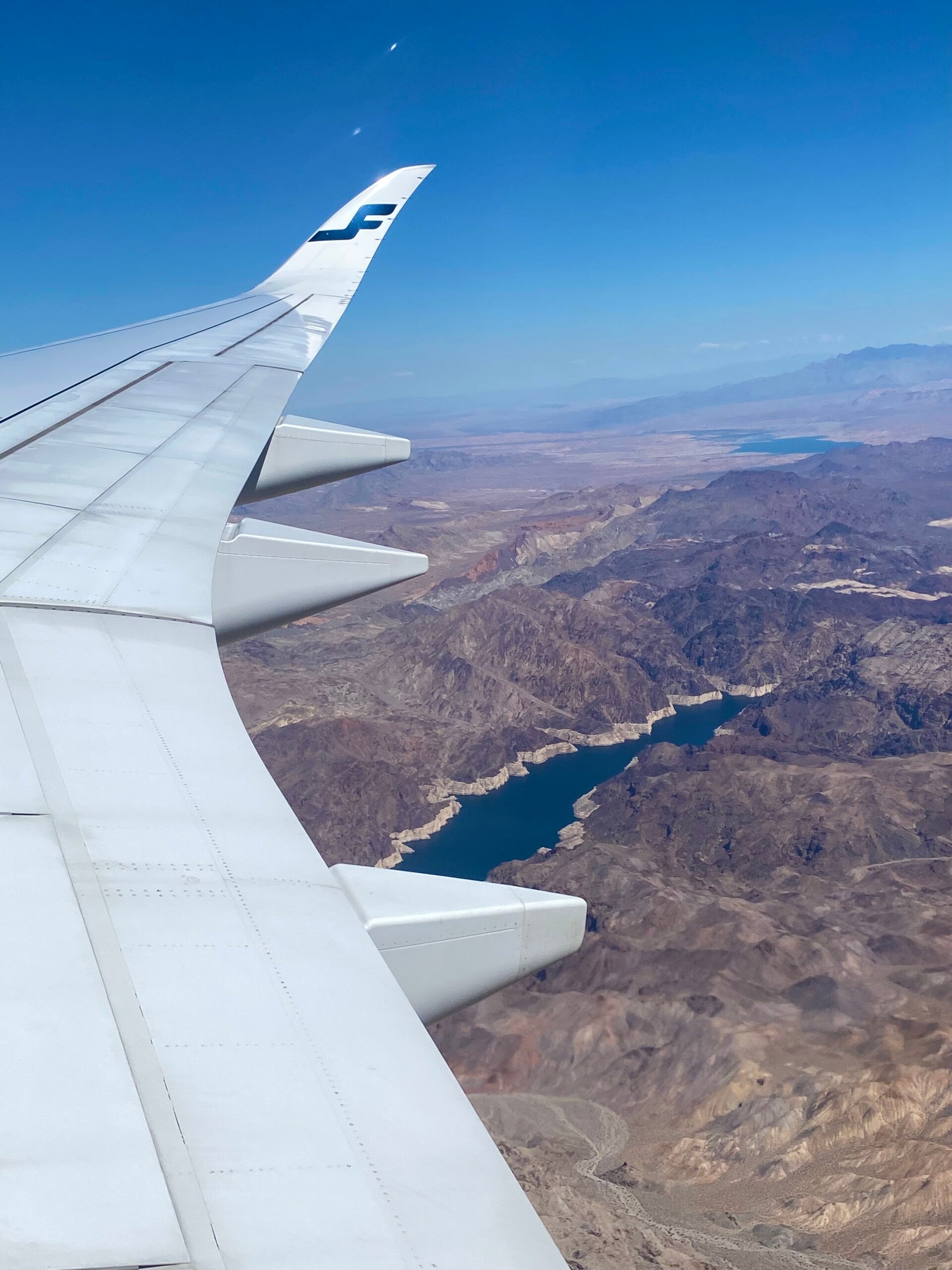 Oben gut zu sehen die Rocky Mountains und der Great Salt Lake. Auf den unteren Bildern der Lake Mead, größter Stausee deer USA, kurz vor Las Vegas. Man sieht deutlich wo vor kurzem noch die Wasserkante war, hier fehlt jede Menge Wasser. Der Wasserspiegel ist leider auf einem historischen Tiefstand.