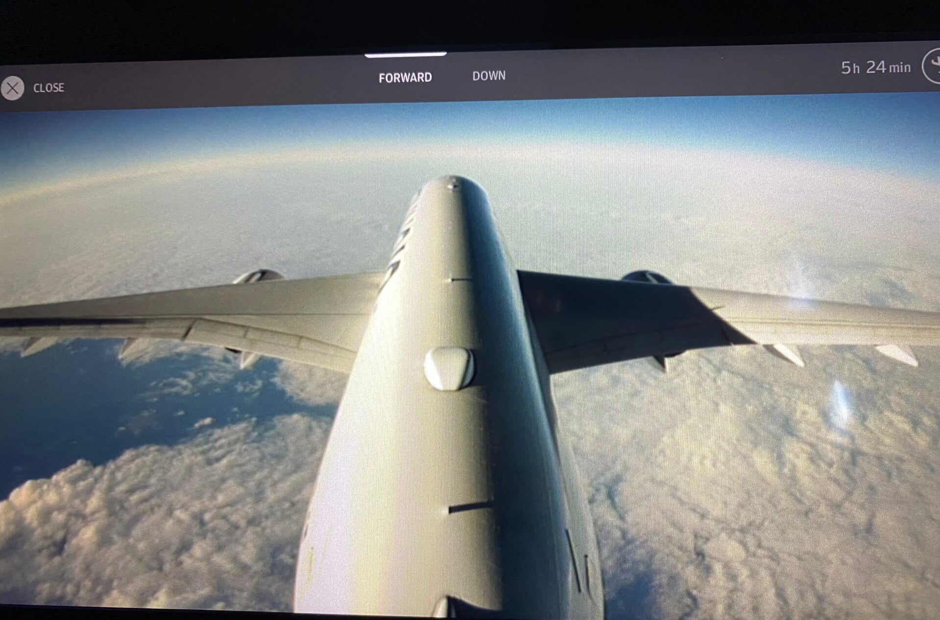 Super, und für mich neu, sind die Kameras außen am Flugzeug, so kann man auch ohne einen Fensterplatz immer sehen, was außerhalb vor sich geht.
