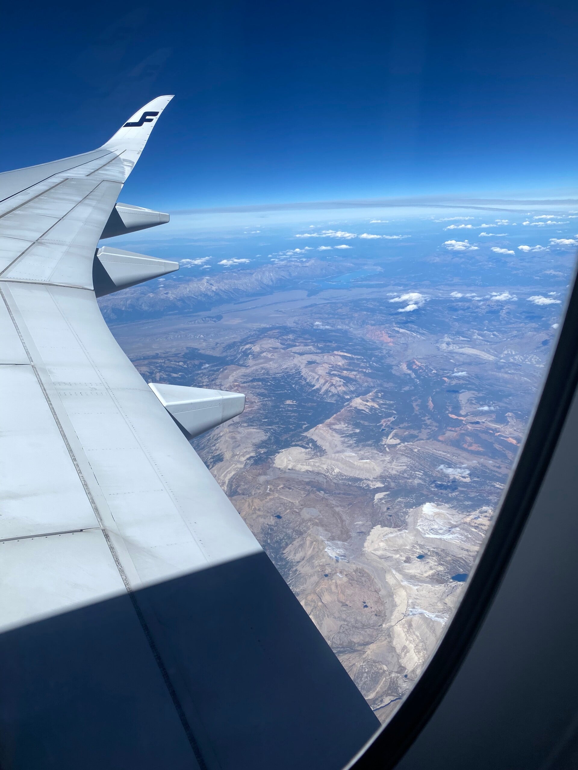 Die Sicht war phantastisch, selten habe ich die Berge von Grönland so deutlich gesehen. Unsere Flugroute ging direkt über die Rocky Mountains, was schöne Erinnerungen an den letzten Roadtrip (Cody, Billings, West Yellowstone, Salt Lake City) wach gerufen hat.