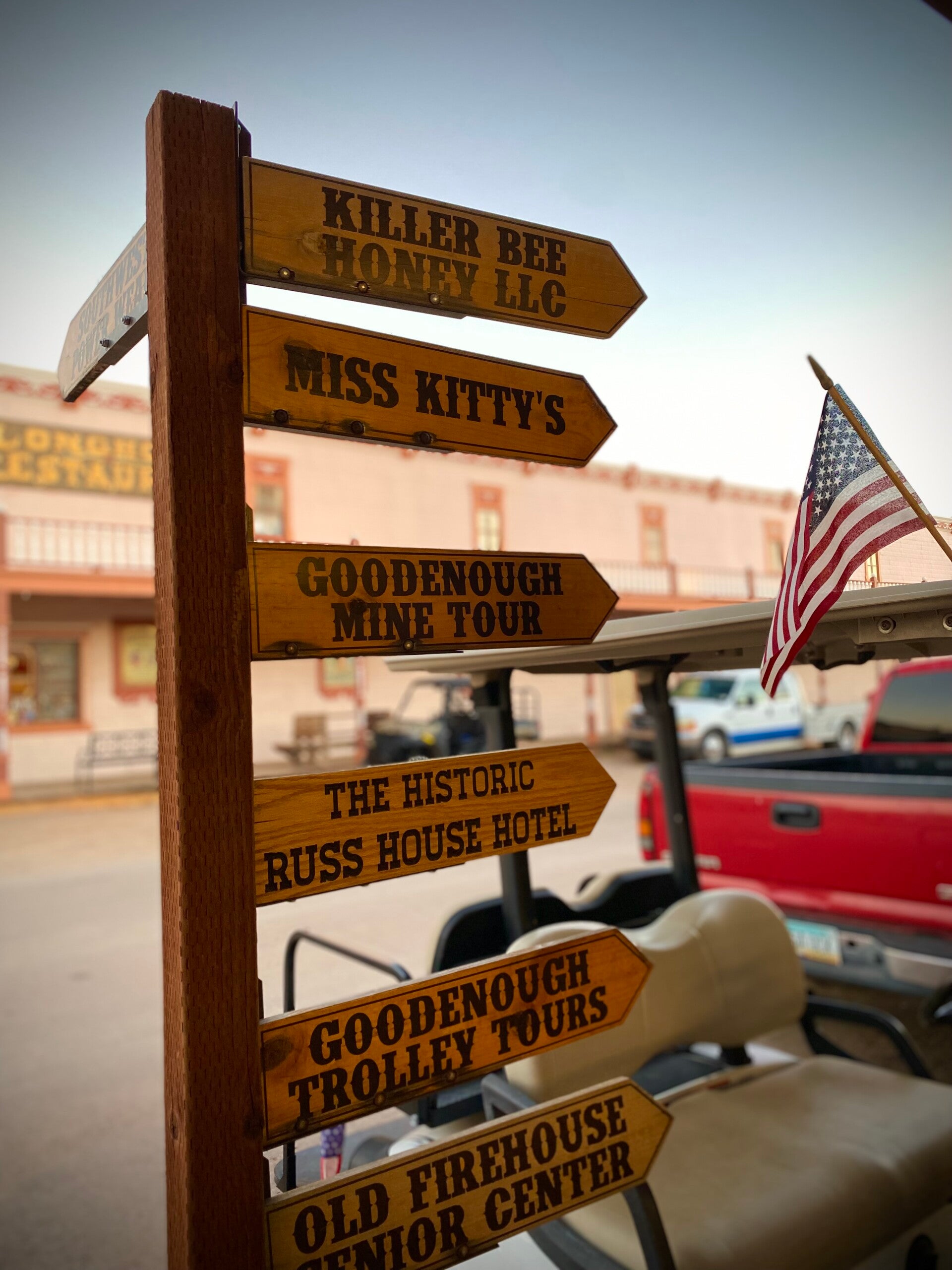 Zur Main Street sind es nur wenige Gehminuten, besser hätte Ernie unsere Unterkunft nicht aussuchen können. Also machen wir uns zum Sonnenuntergang gleich mal auf eine erste Besichtigungstour.