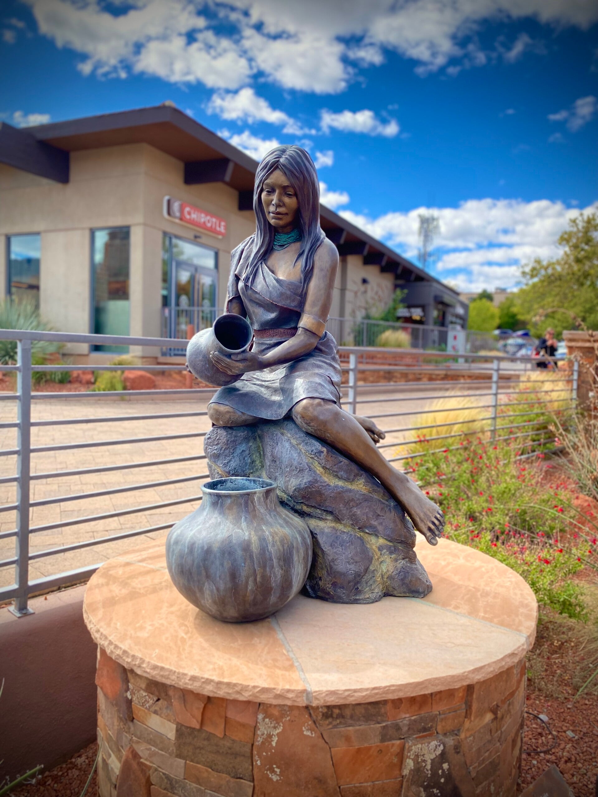 Über die Stadt verteilt findet man jede Menge Statuen und sehr schön angelegte Grünanlagen. Die Läden auch mit sehr hochwertigen Kunstgegenständen. Hier verweilen sicher auch gut betuchte Touristen gerne. Und das Ganze in einer absolut malerischen Umgebung! Es war das erste mal seit Beginn unserer Tour schwer einen freien Parkplatz zu finden.