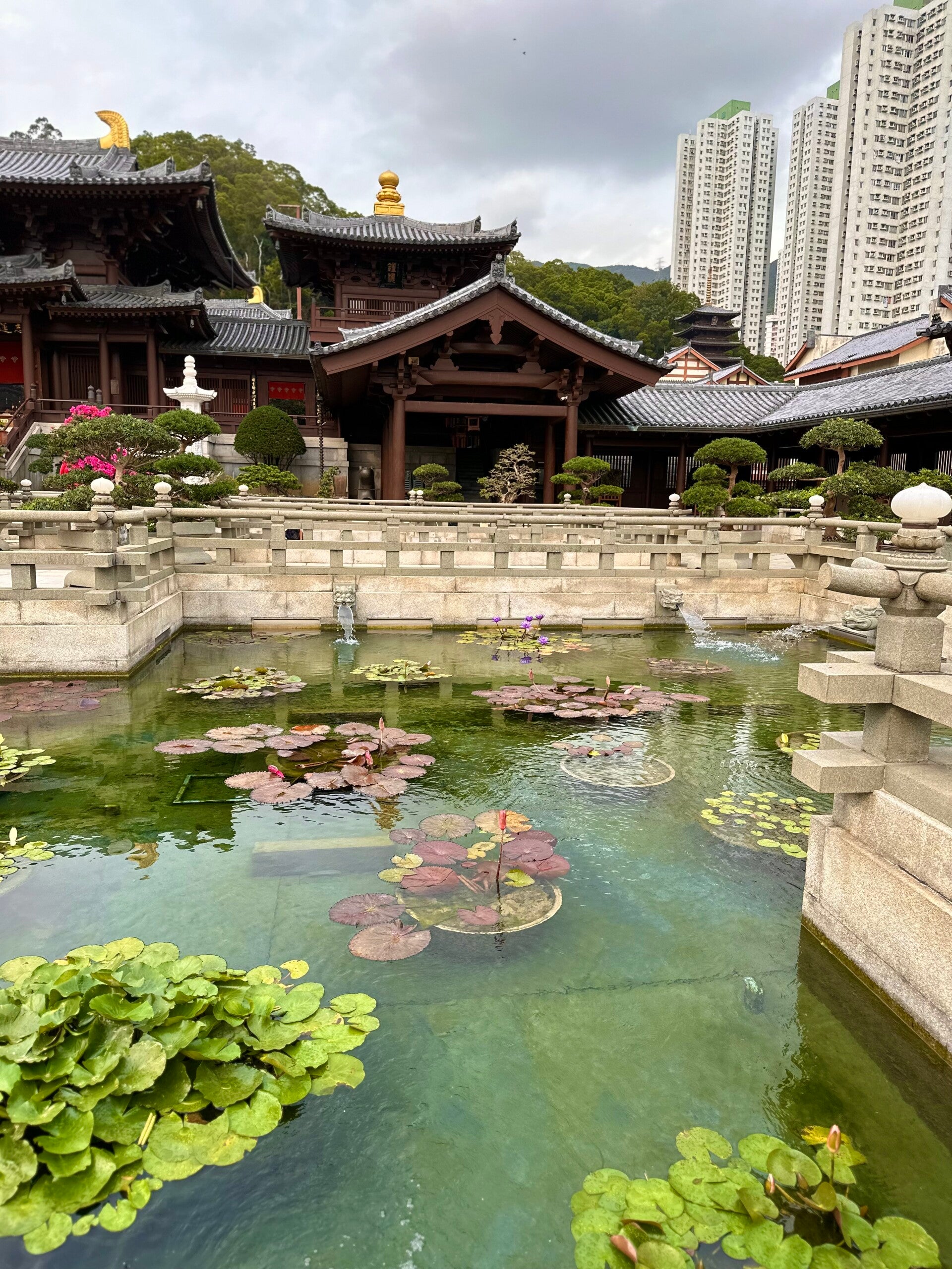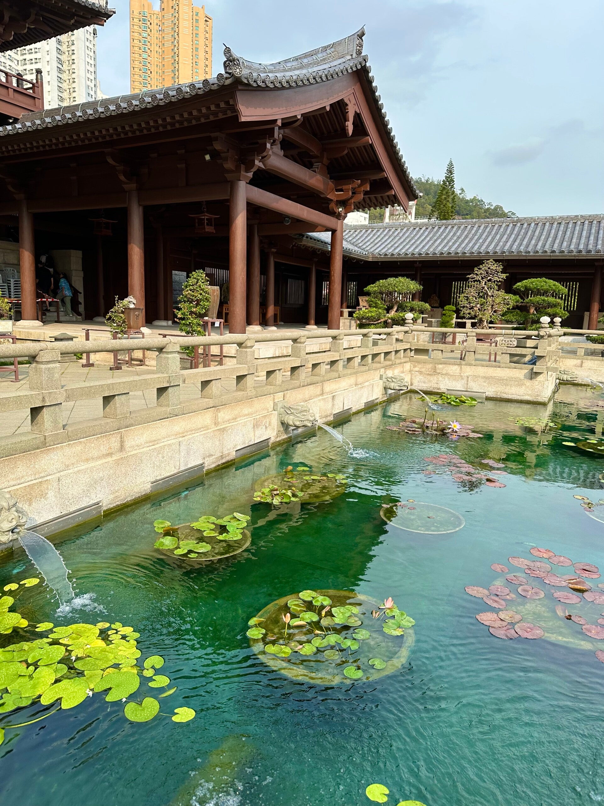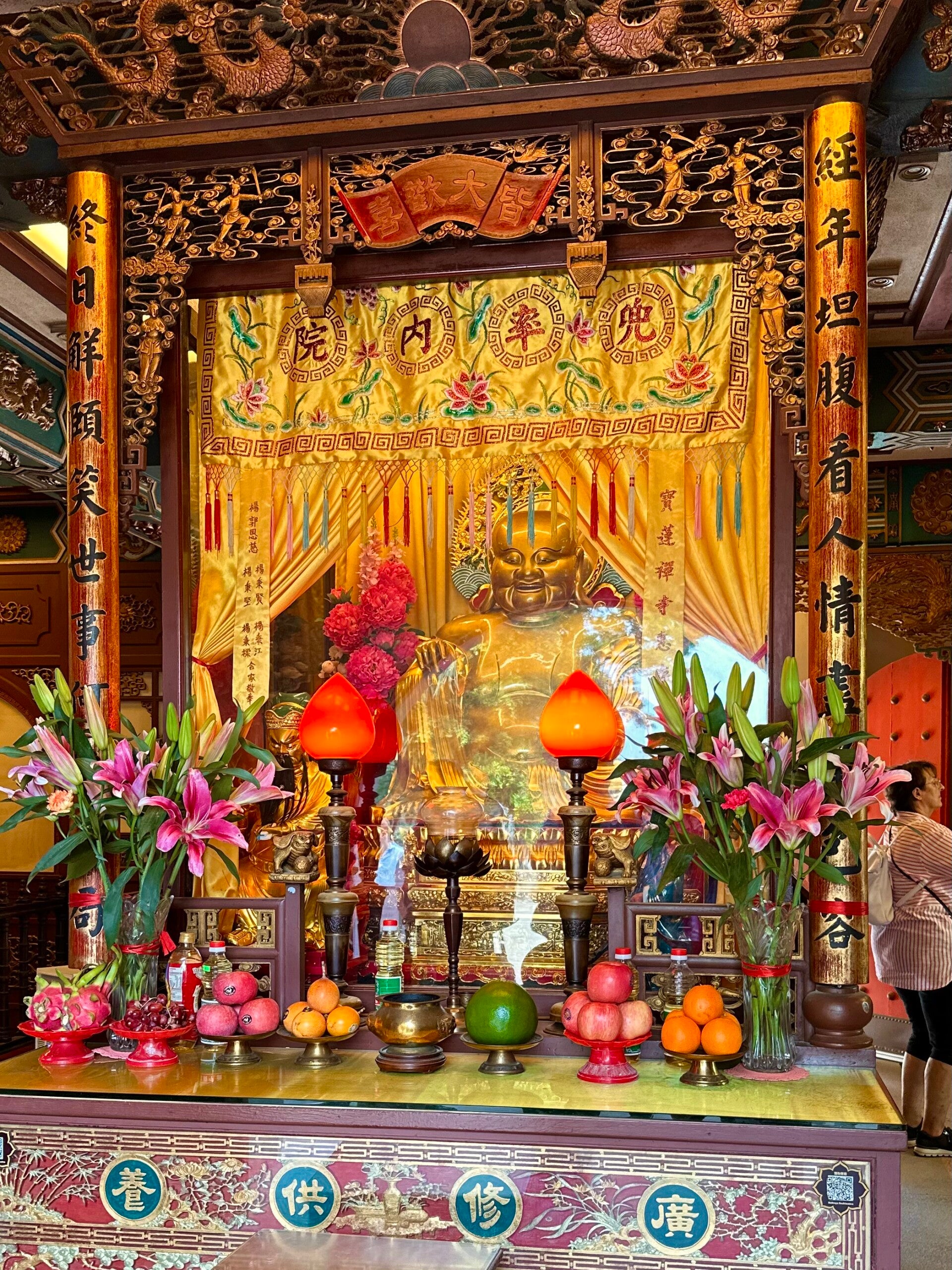 Das Gold der verschiedenen Altäre in den Nischen glänzte wie frisch poliert, die hunderten Bonsaibäume im Garten waren beeindruckend und so manche Lotusblüte war gerade dabei sich zu öffnen.