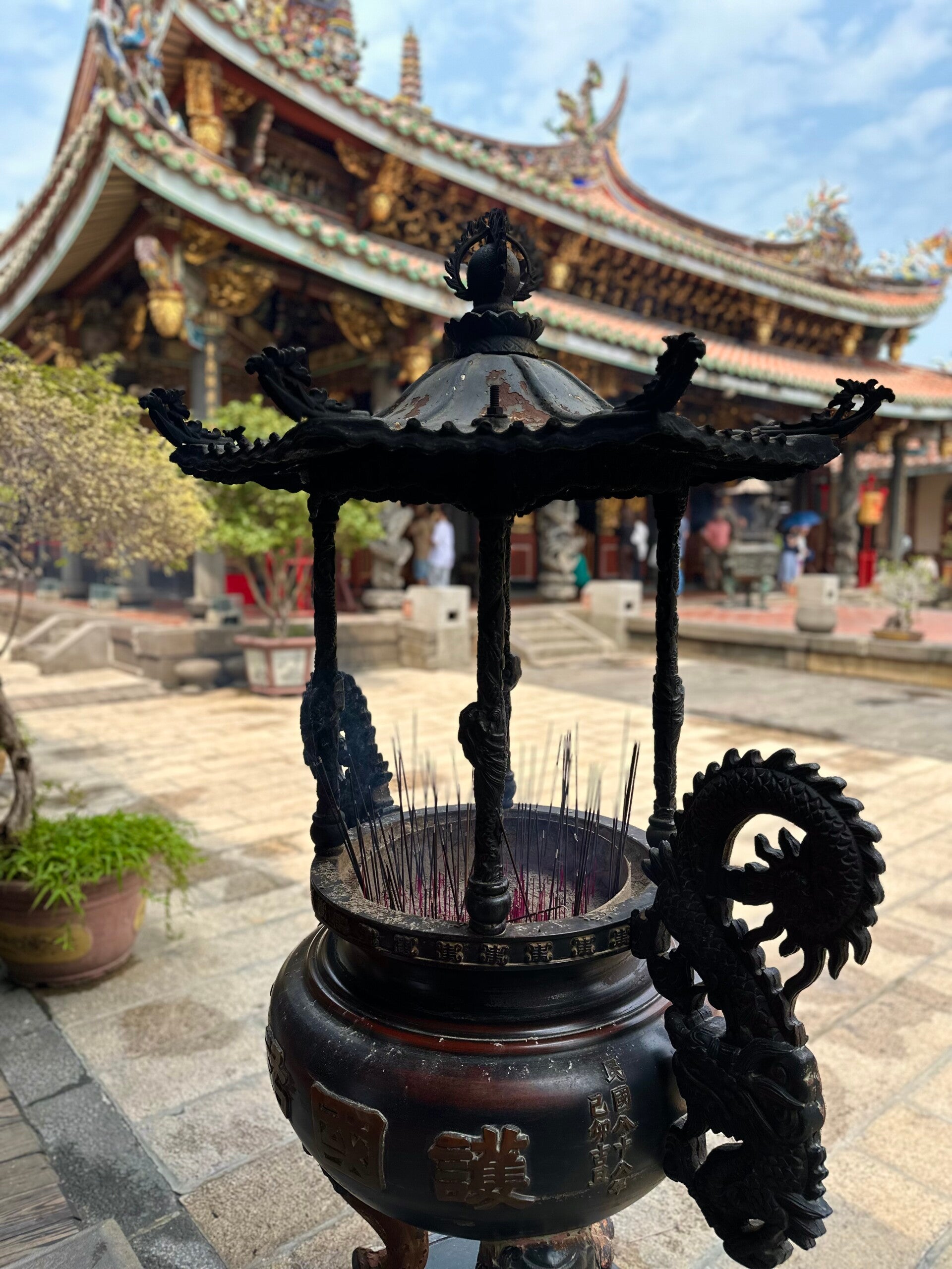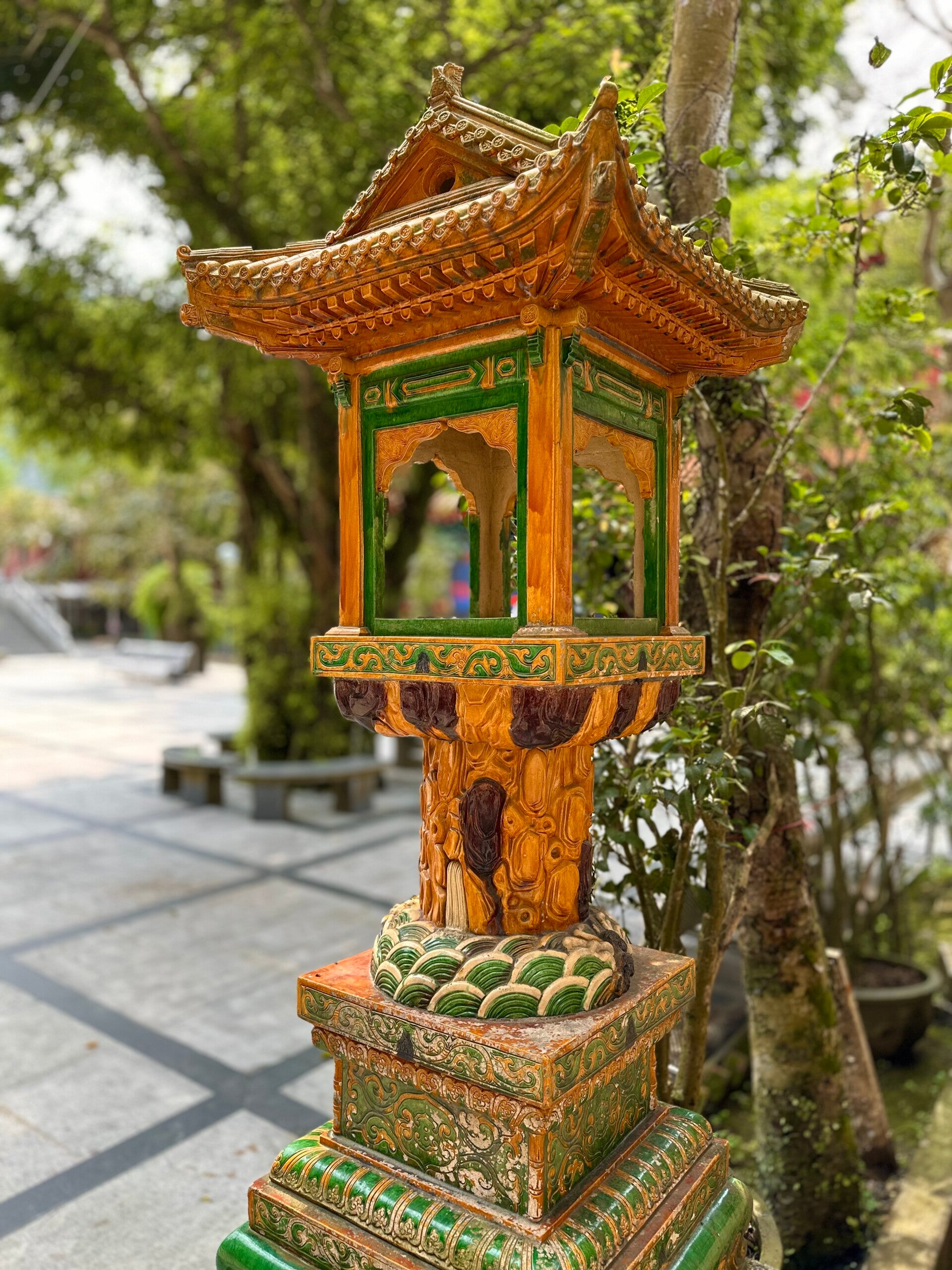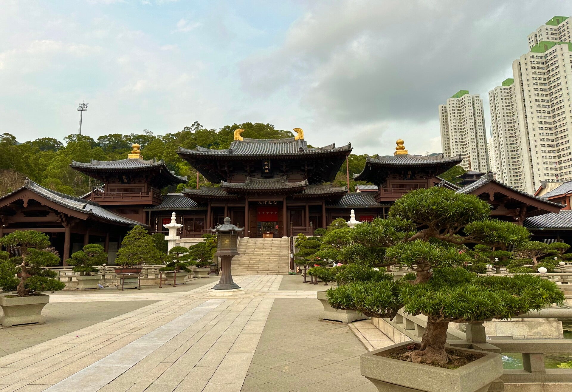 Das Gold der verschiedenen Altäre in den Nischen glänzte wie frisch poliert, die hunderten Bonsaibäume im Garten waren beeindruckend und so manche Lotusblüte war gerade dabei sich zu öffnen.