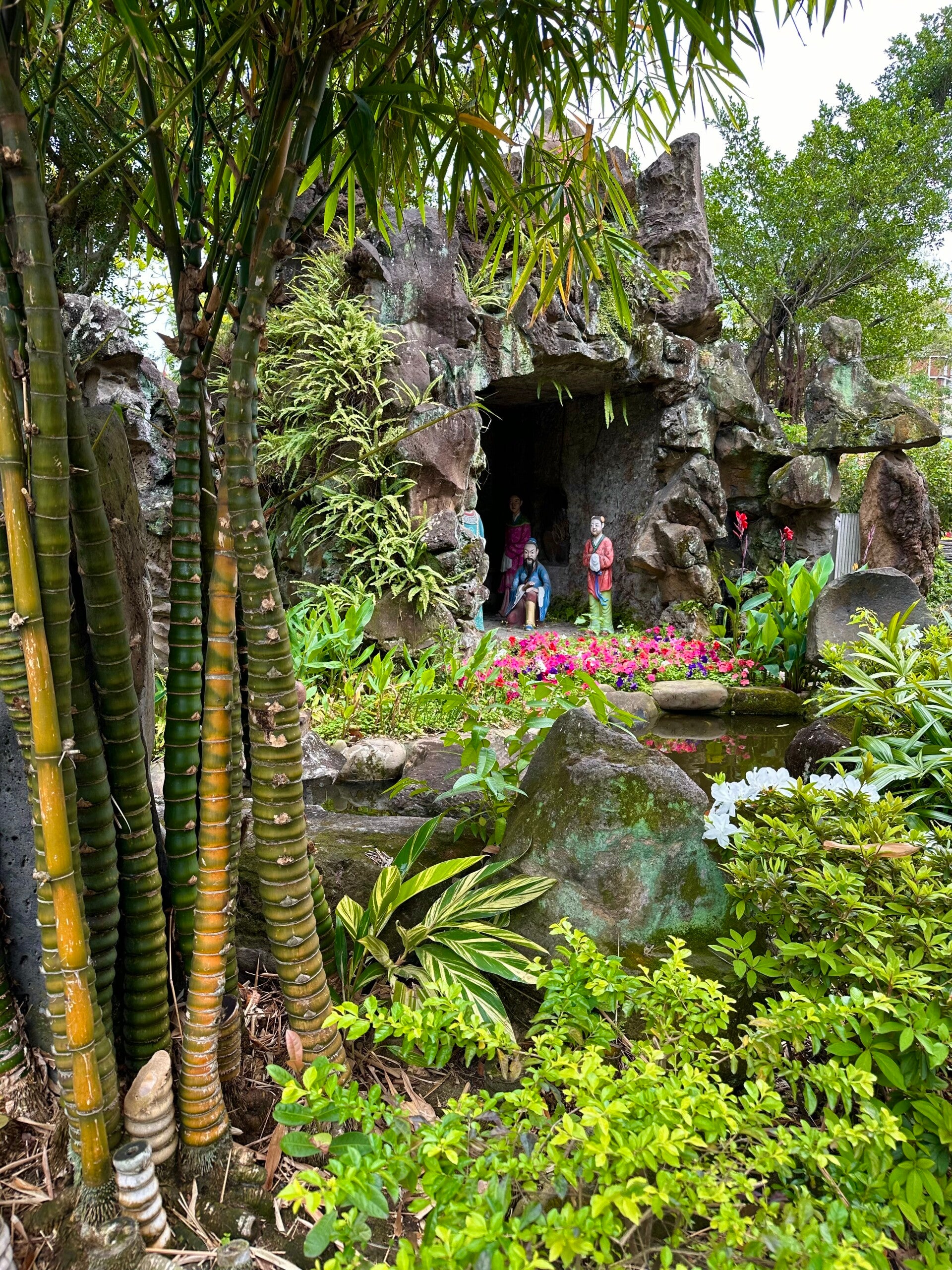 Im oberen Teil des Gartens war eine Tempelanlage angesiedelt, im Hof davor mehrere Teiche mit Lotusblüten in allen Farben.