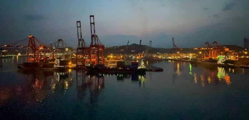 Der Tag neigte sich dem Ende zu und wir verließen unseren Hafen in Keelung wieder. Die ca. 371.000 Einwohner zählender kreisfreie Hafenstadt im Nordosten von Taiwan besitzt den größten Naturhafen Nord-Taiwans, der zugleich auch ein Tiefwasserhafen ist.