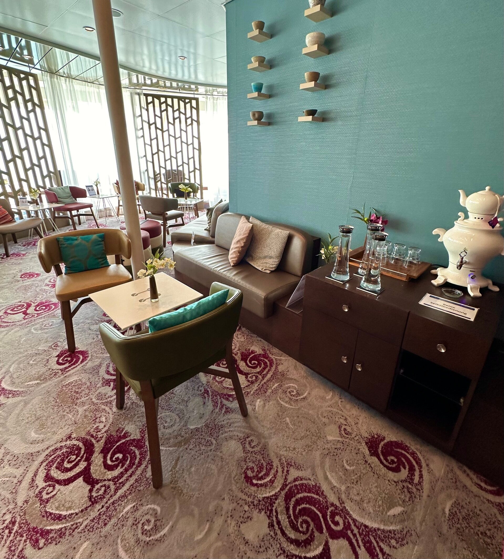 Schon früh am Morgen hatten wir uns Termine im Wellness & Spa Bereich der Mein Schiff 5 reservieren lassen, und begannen diesen Feiertag mit einer wohltuenden Massage. Ein anschließender Tee durfte natürlich nicht fehlen, bevor wir uns ein leckeres Frühstück gönnten. So gestärkt ging es ins Theater, ganz vorne im Bug des Schiffes, um uns einem Lektorenvortrag, über eines unserer nächsten Ziele, anzuhören.