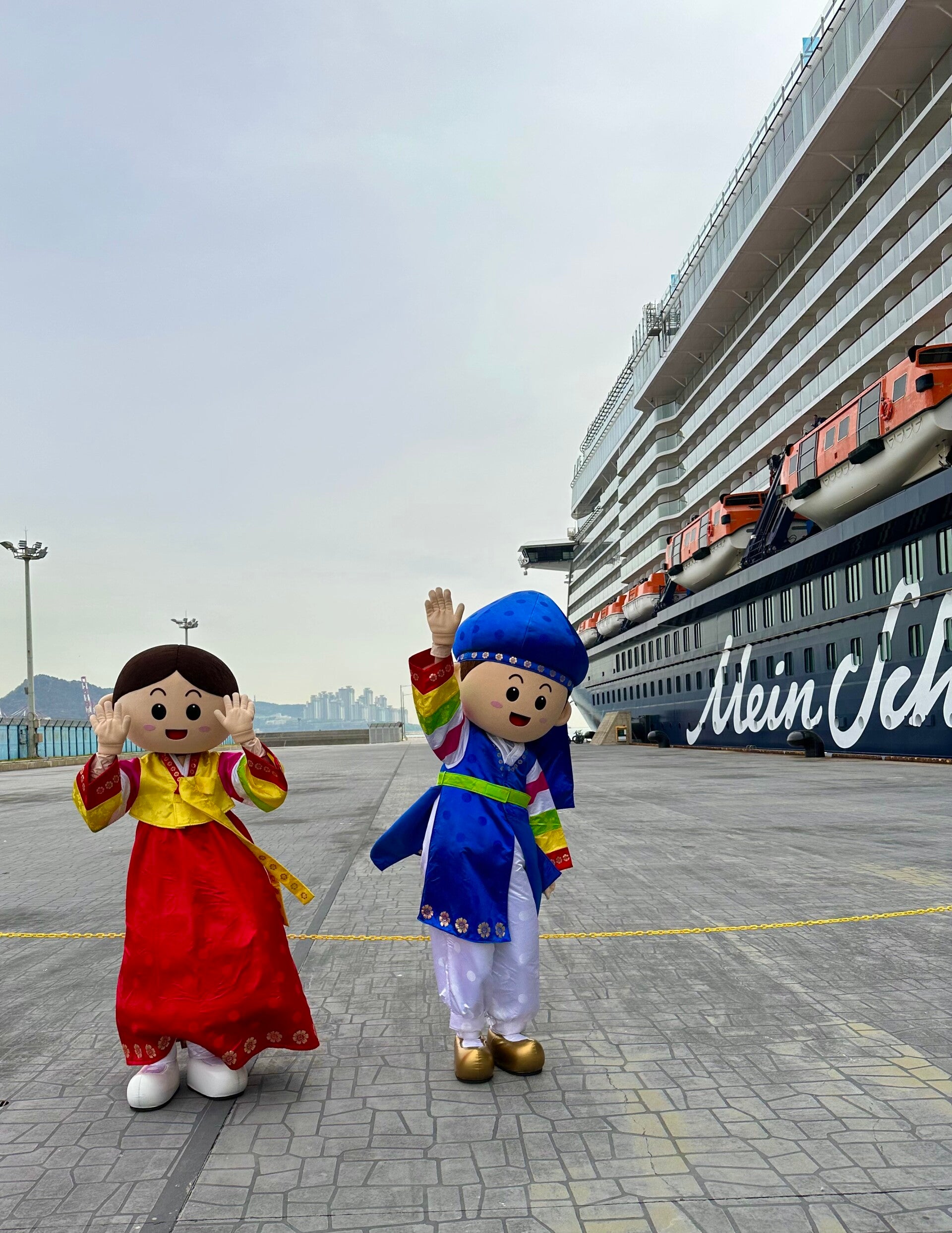 Shanghai in China. Schon um 8 Uhr am Morgen, wurden wir von Trommeln geweckt. Die Mein Schiff fährt diesen Hafen zum ersten Mal an, was doch schon etwas besonderes ist. Unser verschlafener Blick fiel vom Balkon auf eine farbenfrohe traditionelle Tanzgruppe, die uns eine beeindruckende Darstellung bot. Die Tänzer ließen zum Trommelwirbel ihre Drachen tanzen, eine ganz tolle Vorstellung und eine wunderbare Begrüßung in China.