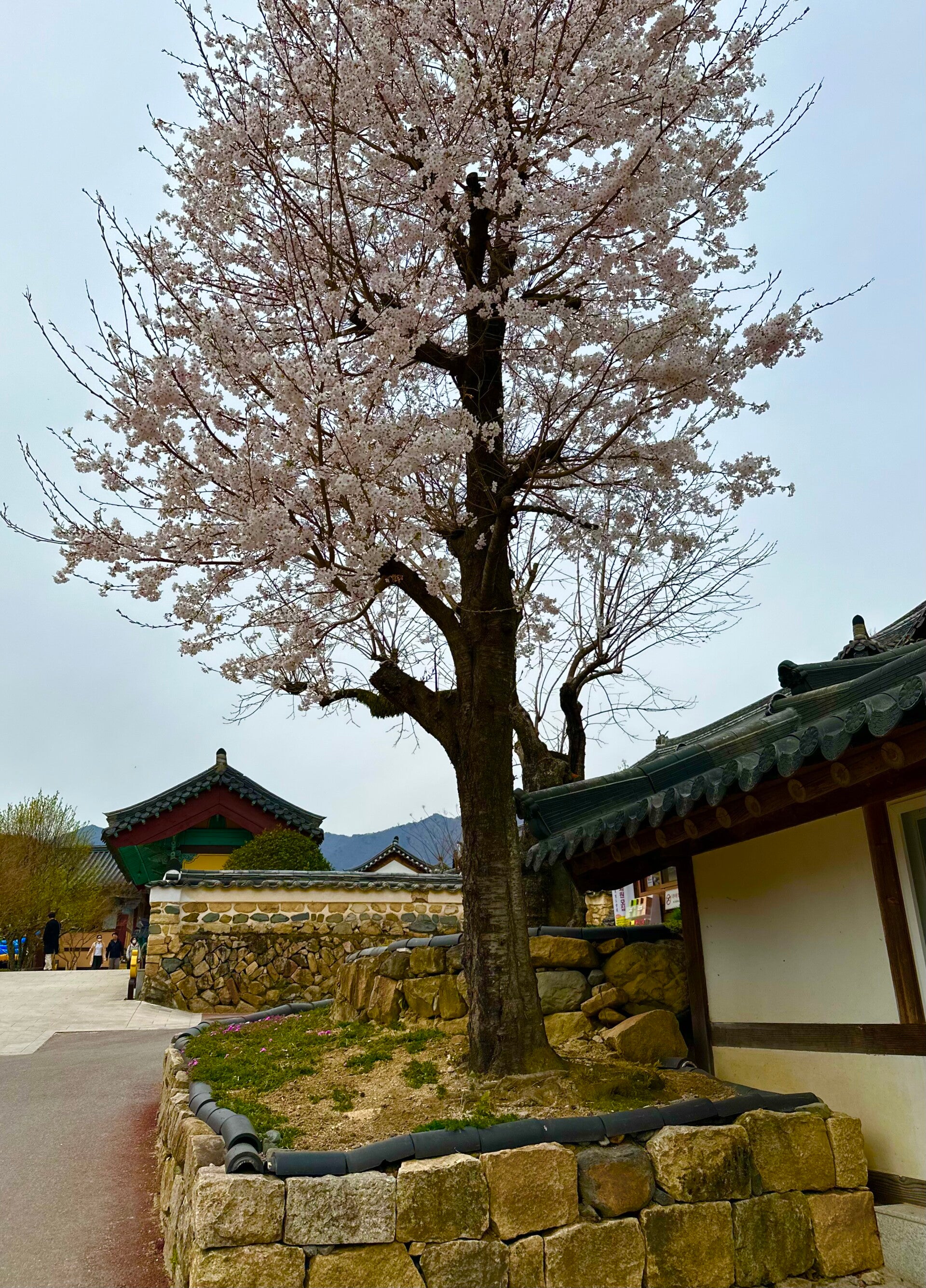 Was sie uns allerdings verdeutlichte, war, welches Glück wir hatten gerade heute im Land zu sein. Die schönsten Tage des Jahres, sind die Tage der Kirschblüten, und diese Bäume gibt es hier zu tausenden. Ewig lange Alleen der in voller Blüte stehenden Bäume säumten unseren Weg. Leider sahen wir diese nur durch die getönten Scheiben unseres Busses, und am Ziel angekommen gab es kaum noch Bäume. Da heftiger Regen angekündigt wurde, sollte dies auch der letzte Tag der herrlichen Kirschblüten sein.