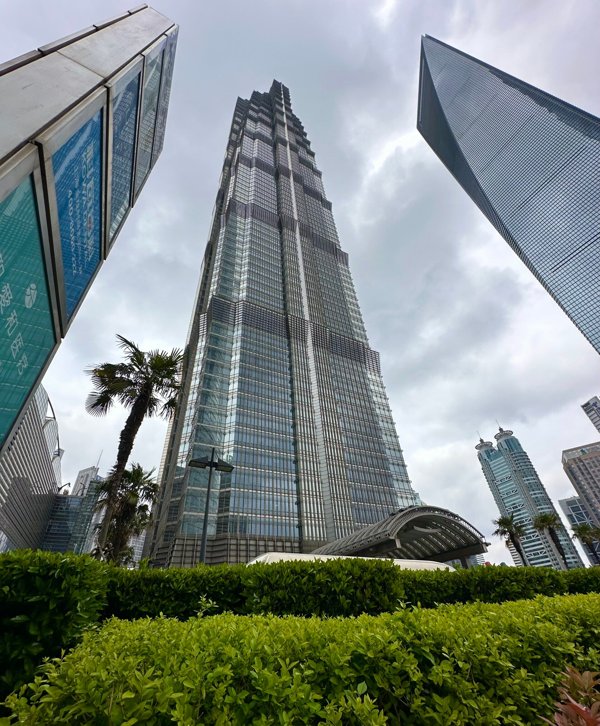 Unser erstes Ziel - wen wundert es - war die 88. Etage des Jin Mao Towers. Hier befinden sich auf engstem Raum die drei höchsten Gebäude Shanghai, liebevoll die Küchenutensilien genannt. Der Jan Mao Tower, Spitzname die Spritztüte, der Shangai Tower, der Quirl und neben an noch der Flaschenöffner.