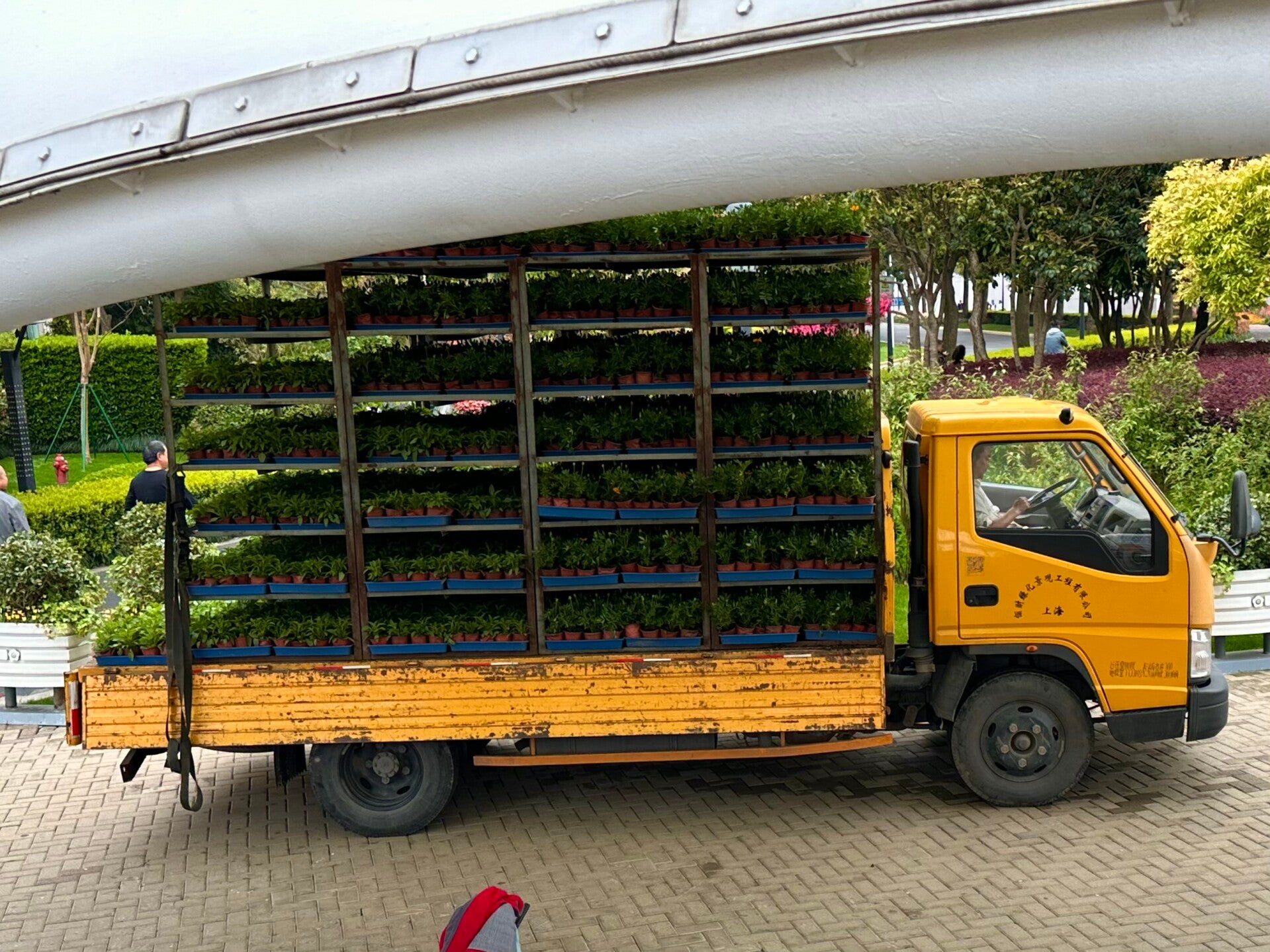 Die Verkehrsinseln und Promenaden waren wunderschön angelegt. Und wir hatten heute die Gelegenheit zu sehen wie das ganze vor sich geht. Es standen LKW´s bereit in die die alten Pflanzen wanderten, und LKW´s die neue Pflanzen brachten. Und in den Beeten verteilt, saßen jede Menge Leute, die die neuen Sommerblüher in Rekordzeit gerade neu einsetzten.