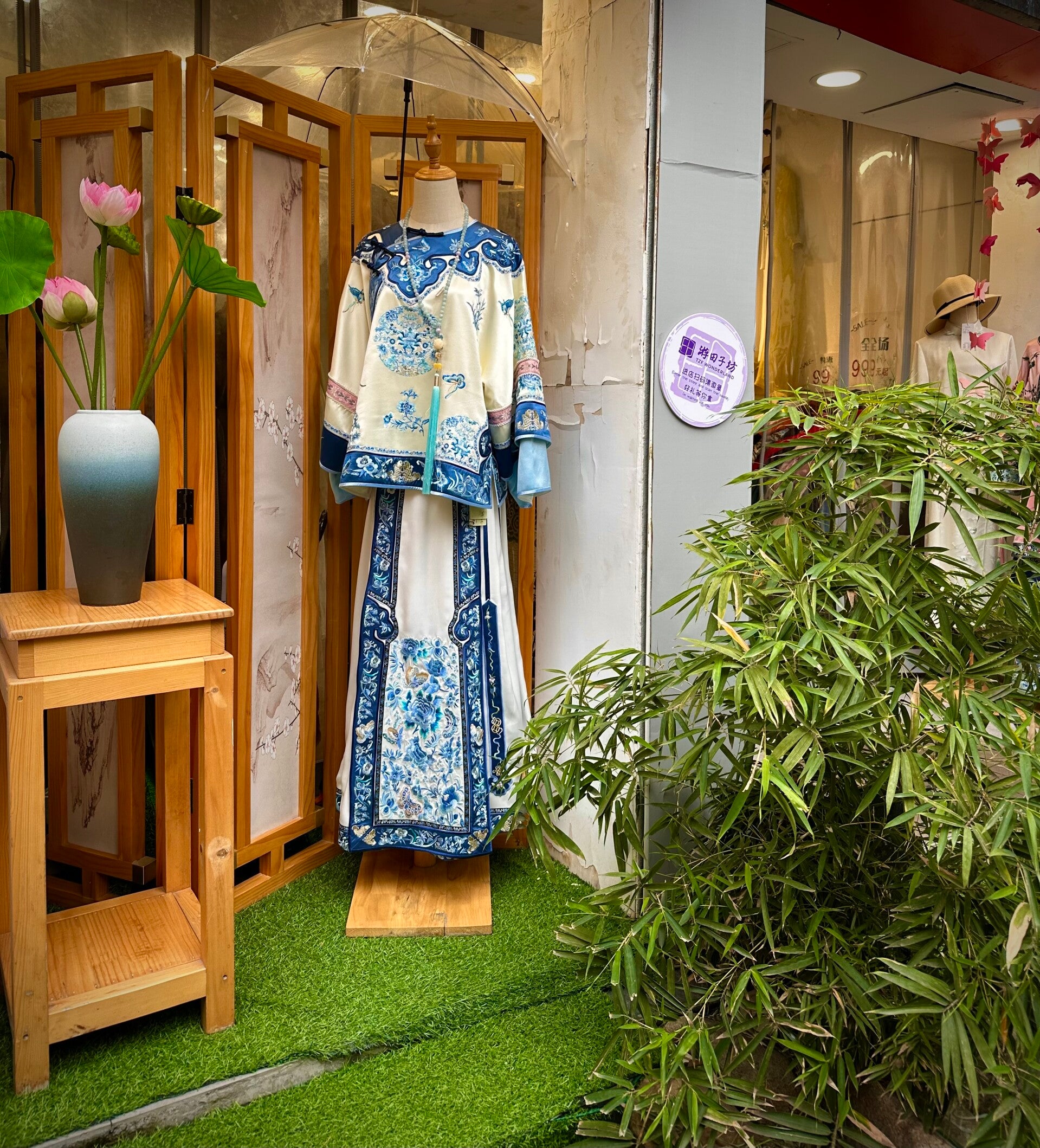 Nach einem Spaziergang am "Bund" fuhren wir weiter zur trendigen Anfu Road, eine Einkaufsstraße mitten in Shanghai. Man könnte sie auch Flaniermeile nennen, immer peinlichst sauber gehalten, und von der Gehsteigmüllpolizei, die jedes Blatt einzeln aufgesammelt.