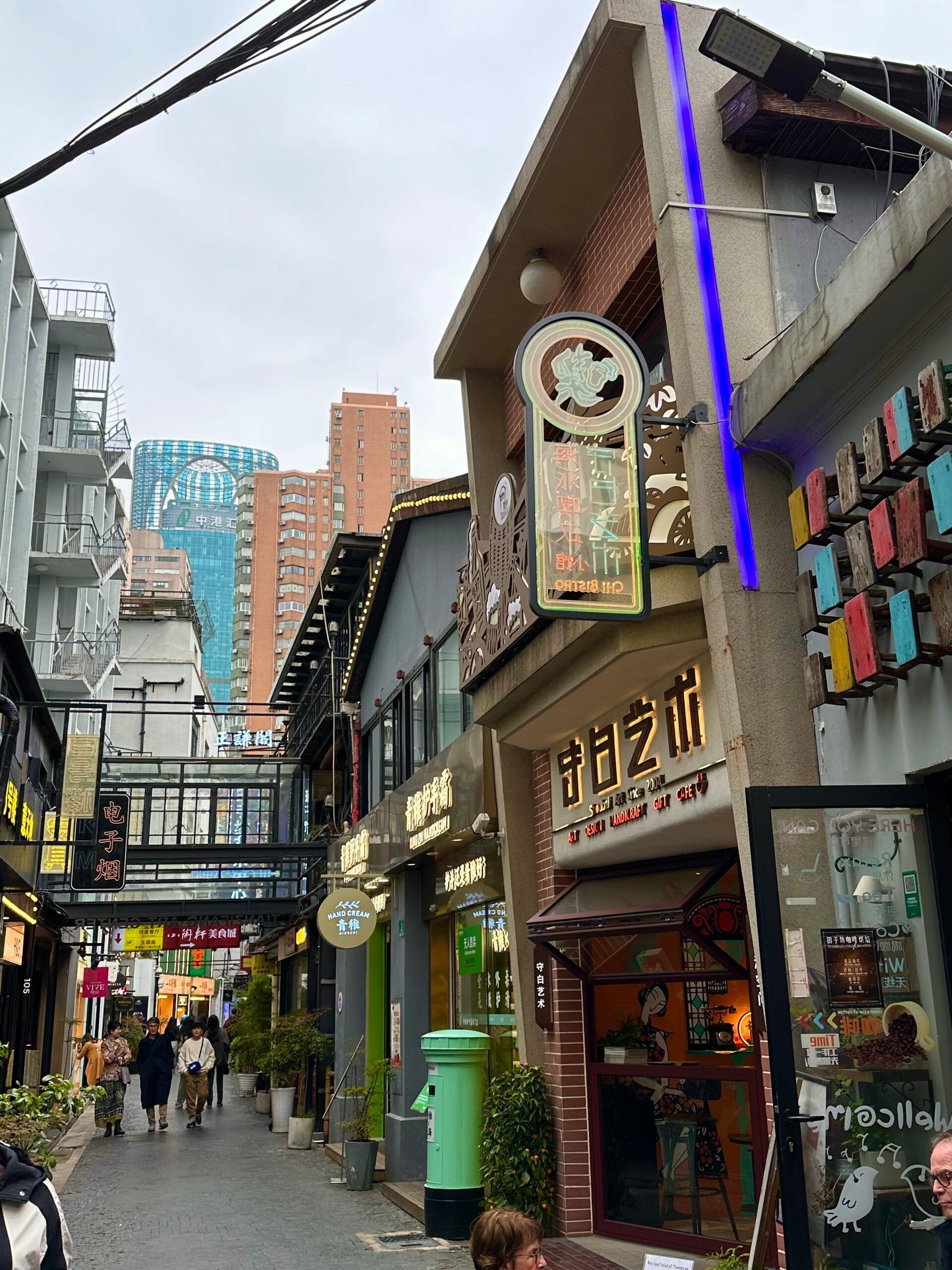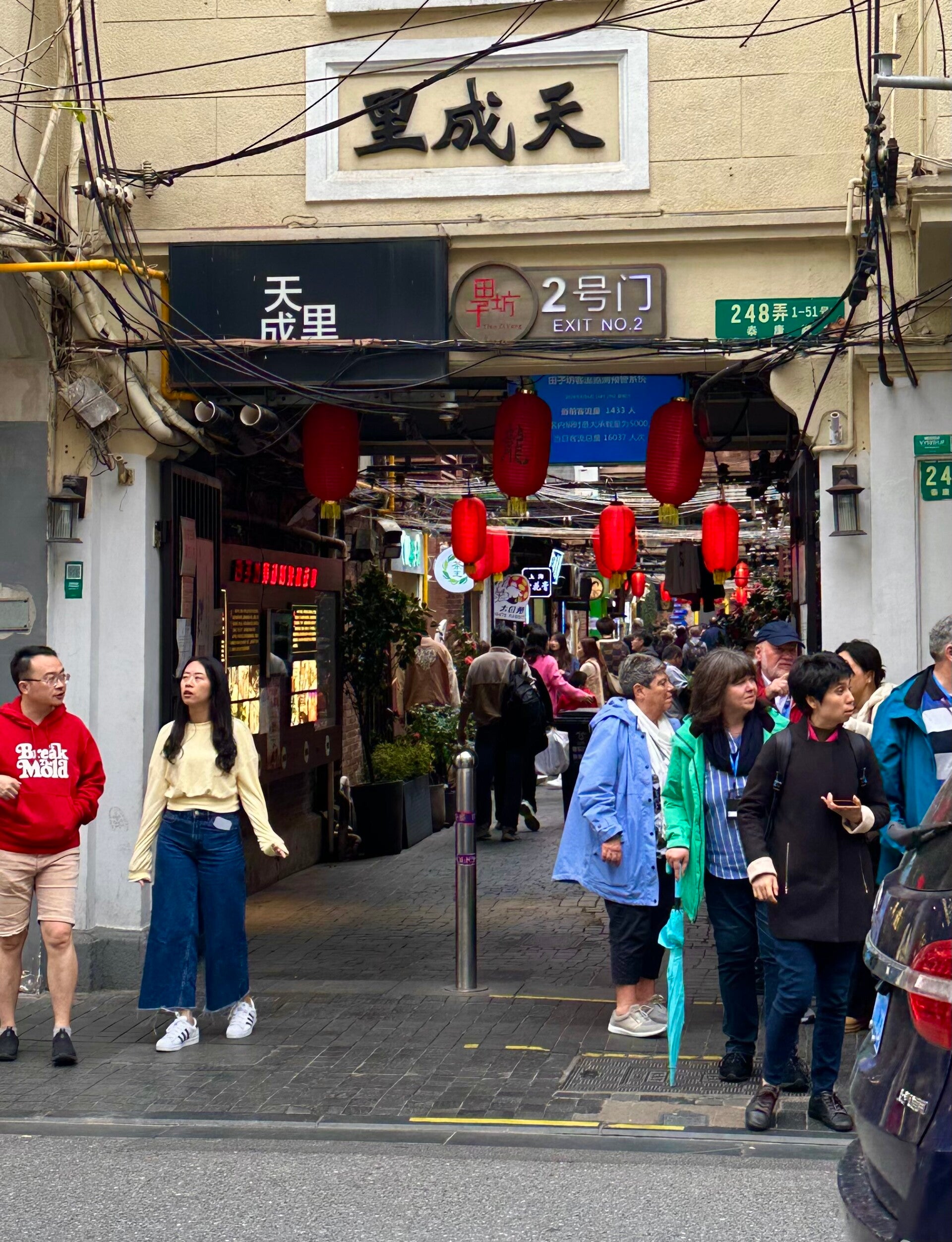 Letzter Tagespunkt für heute, sollte das alternative Viertel Tianzifang für uns sein. Durch unscheinbare Durchgänge ging es in ein Wirrwar von kleinen Gässchen, vollgestopft mit kleinen Läden, Kunsthandwerk, Trinkstuben, kleinsten Restaurant´s, allem, was das Herz begehrt.