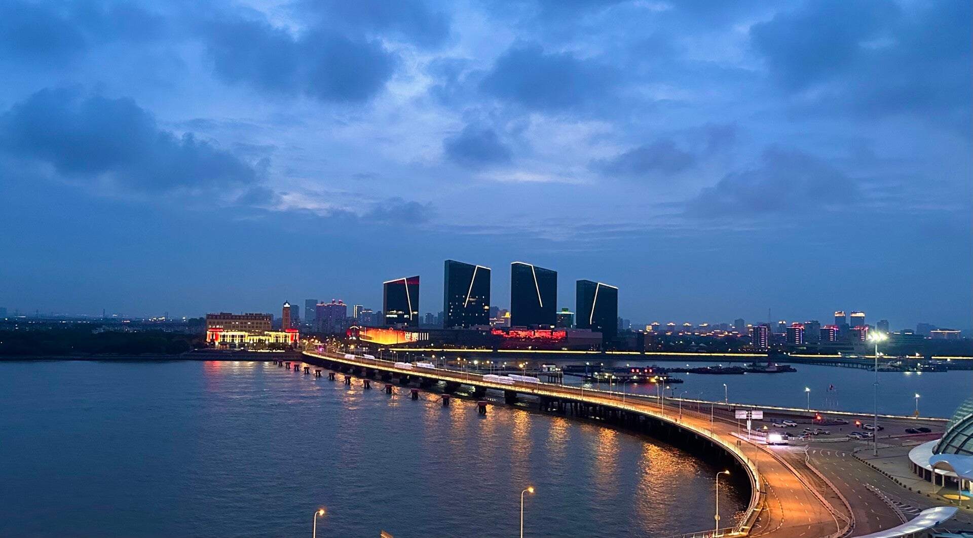 Den Abend genossen wir an Bord der Main Schiff 5 im Hafen von Wusongkou am Changjiang River, an dem Shanghai liegt. Dieser Fluss ist so stark befahren, dass mein meinen könnte direkt an der A3 zu wohnen. Allerdings machen die vorbeiziehenden Schiffe, vom Containerschiff bis zum Fischerboot - weniger Lärm. Unser heimiliges Zuhause auf dieser Reise ist die 10095 auf Deck 10, mit einer tollen Aussicht.