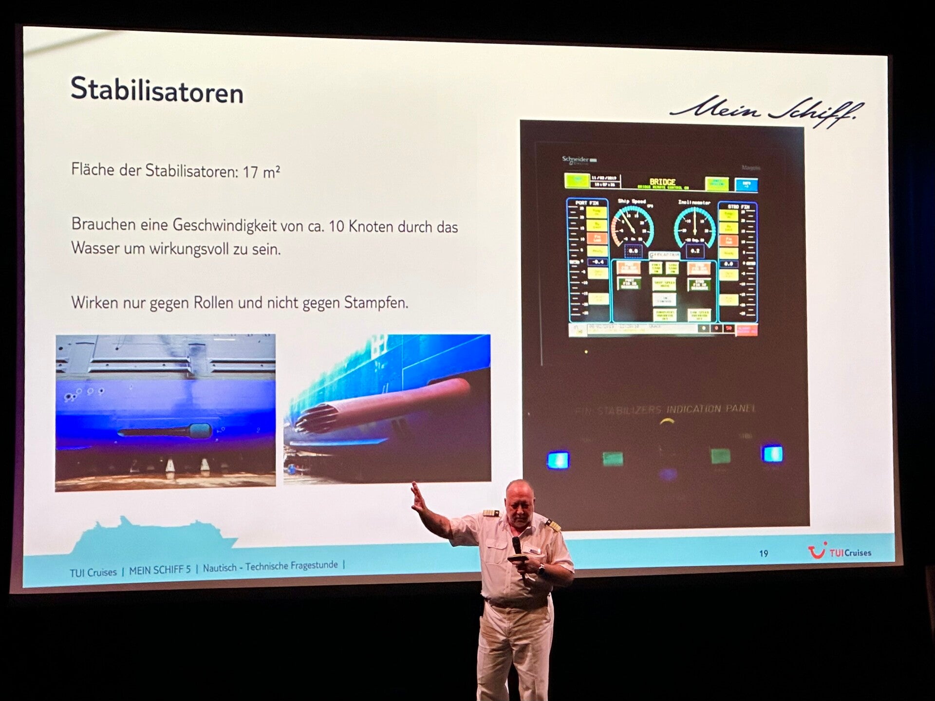 Heute vormittag im Angebot, die Technisch, Nautische Fragestunde mit dem Kapitän Andreas Gräulich, einem sehr sympathischen Kapitän, dessen Durchsagen am Morgen und am Abend immer sehr informativ und interessant sind, und vorallem gut verständlich. Kapitän Gräulich hat auch schon das Traumschiff gesteuert, wärend der Dreharbeiten mit "Kapitän Sasha Hehn".