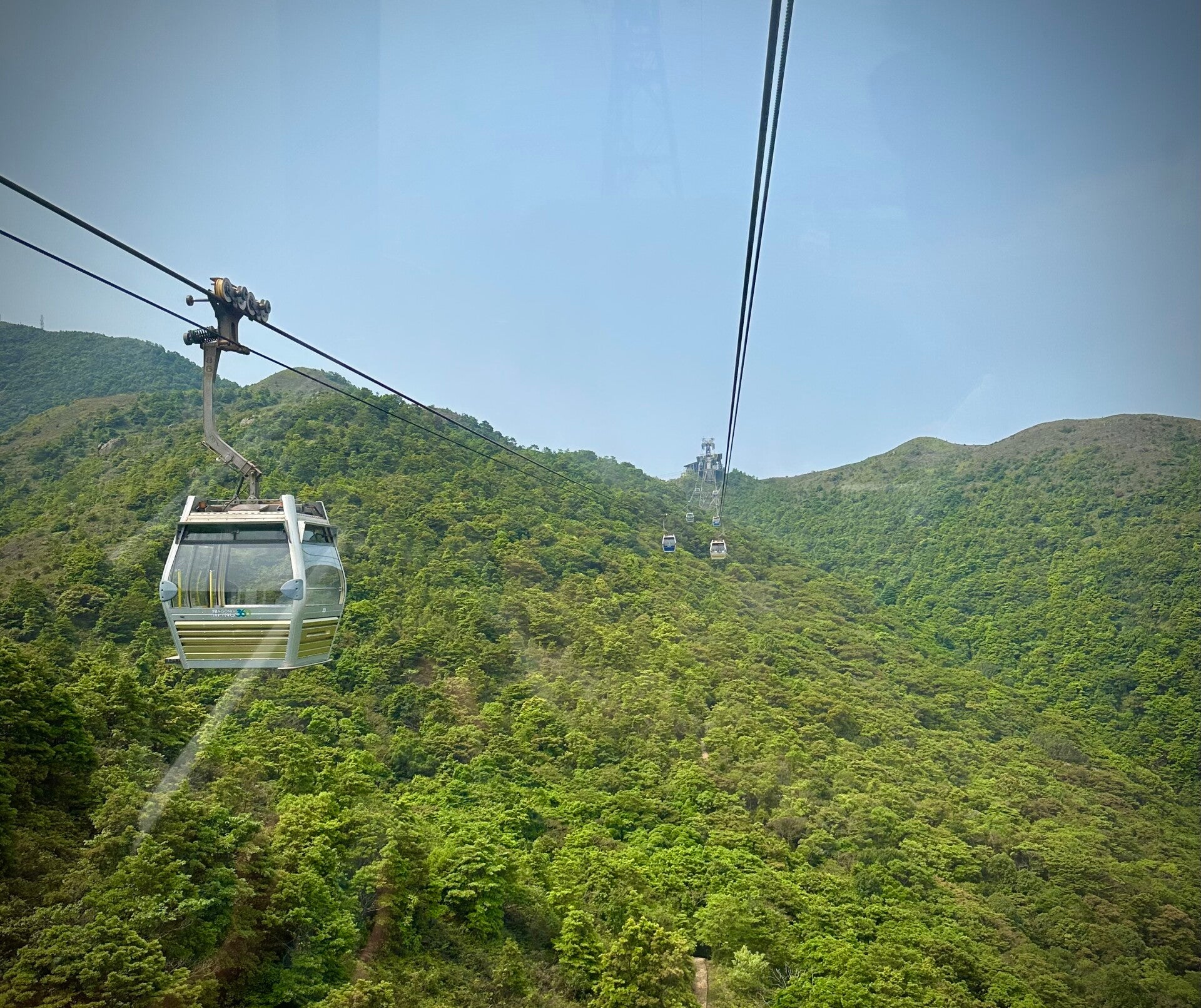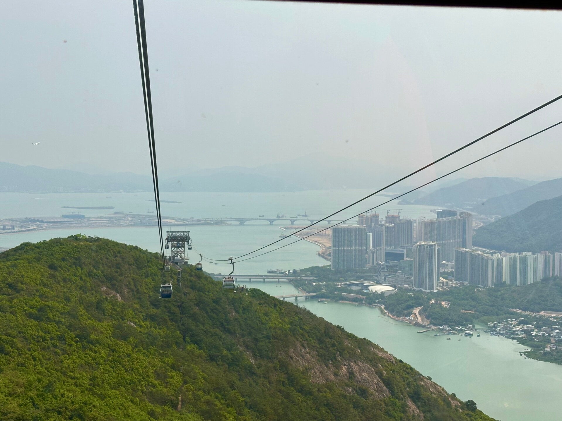 Die Fahrt mit der Seilbahn, vorbei am Flughafen und der imposannten Brücke nach Macao, die einfach so in einem Tunnel unter dem Meer entschwindet, und über die saftig grünen Hügel der Insel Lantau, habe ich noch Mal in vollen Zügen genossen, die Eindrücke dieses Landes, das wir schon am Abend verlassen würden, in mich aufgesaugt.