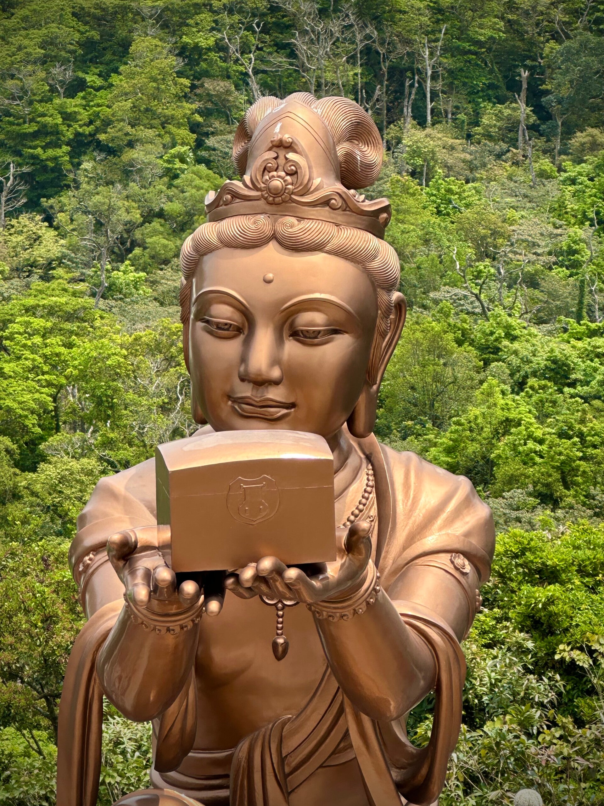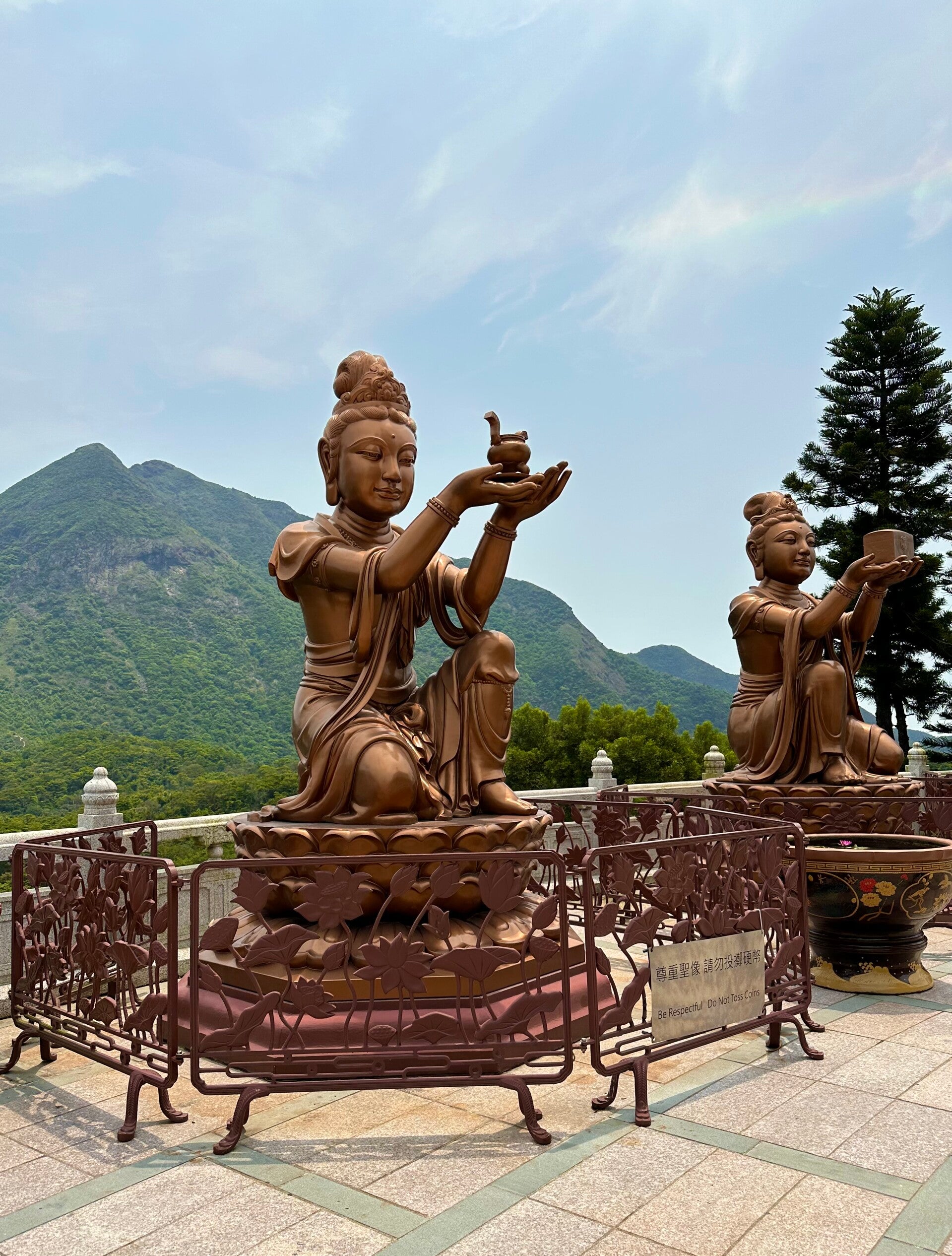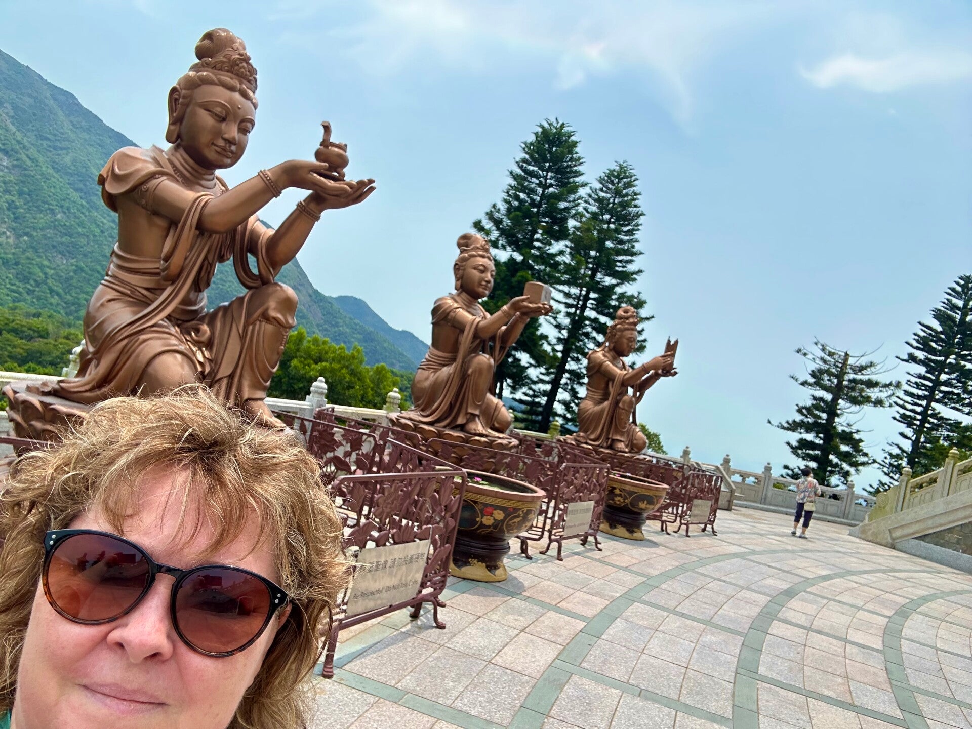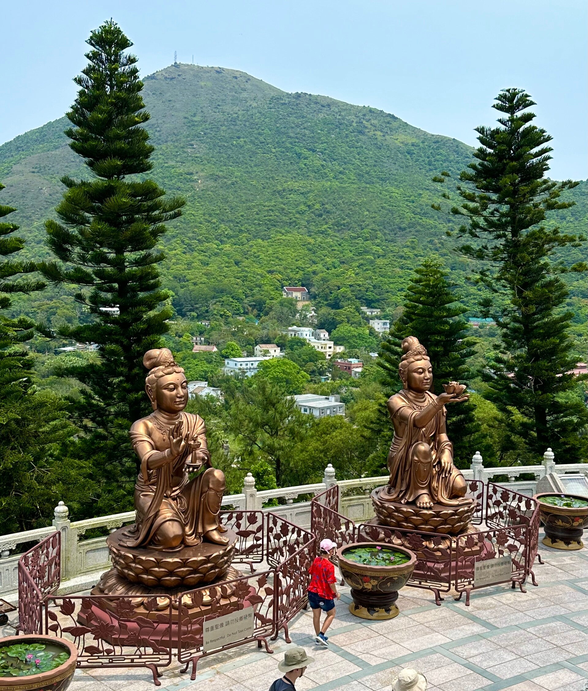 Der letzte Teil der Fahrt mit der Seilbahn, nach der letzten Umlenkstation, ging wieder leicht bergab, und wir hatten einen tollen Blick auf den "Großen Buddha". Eine Bronzefigur mit 35 Metern Höhe und einem Gewicht von 250 Tonnen.