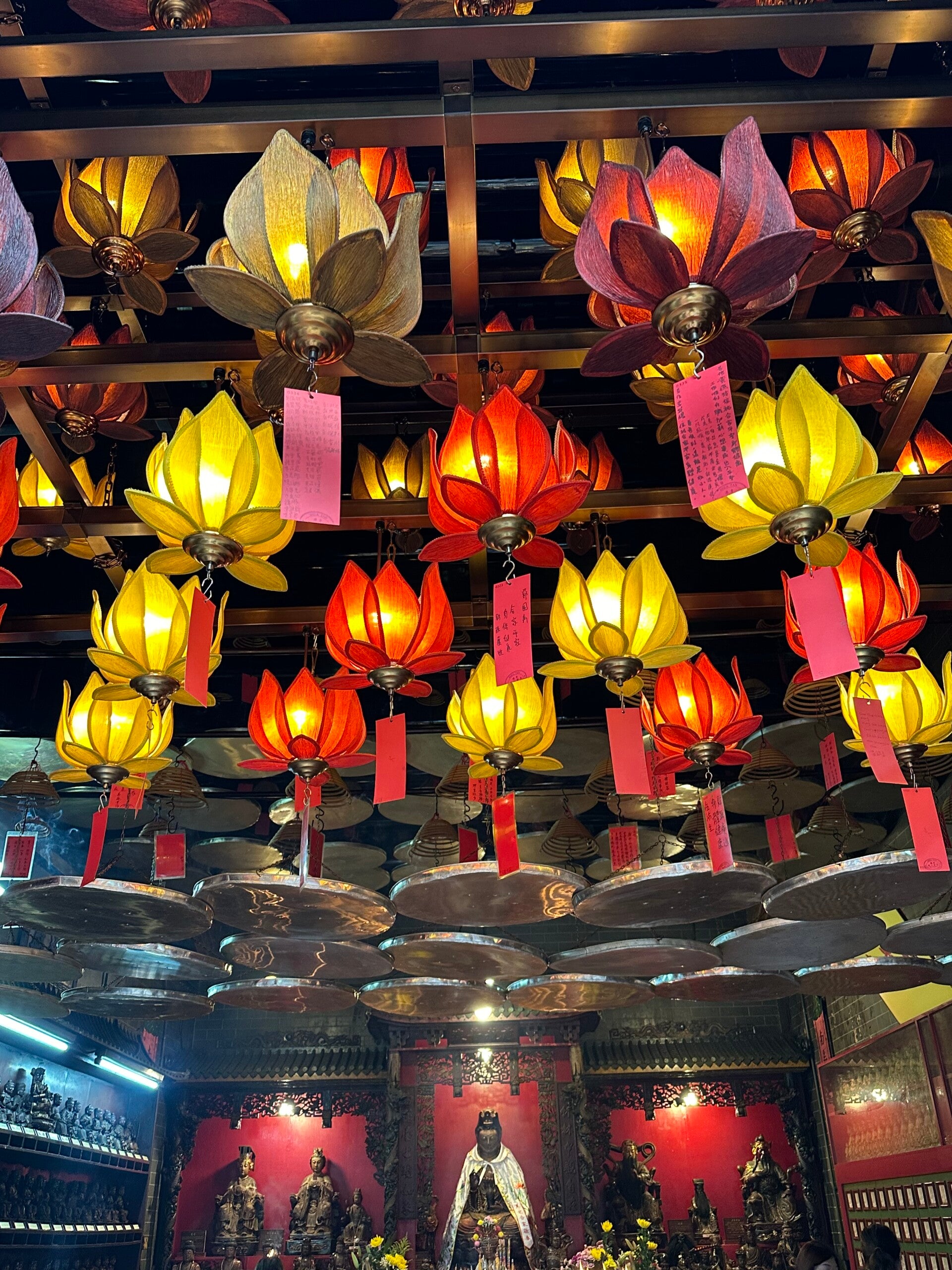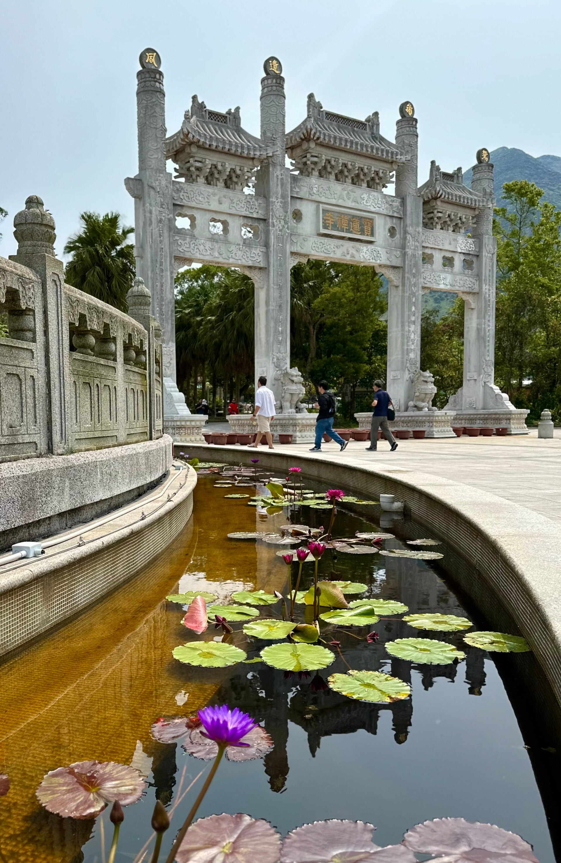 Vor dem Tor zum Kloster wieder die wunderbaren Lotusblüten und viele bunte Lampions, die uns begrüßten.