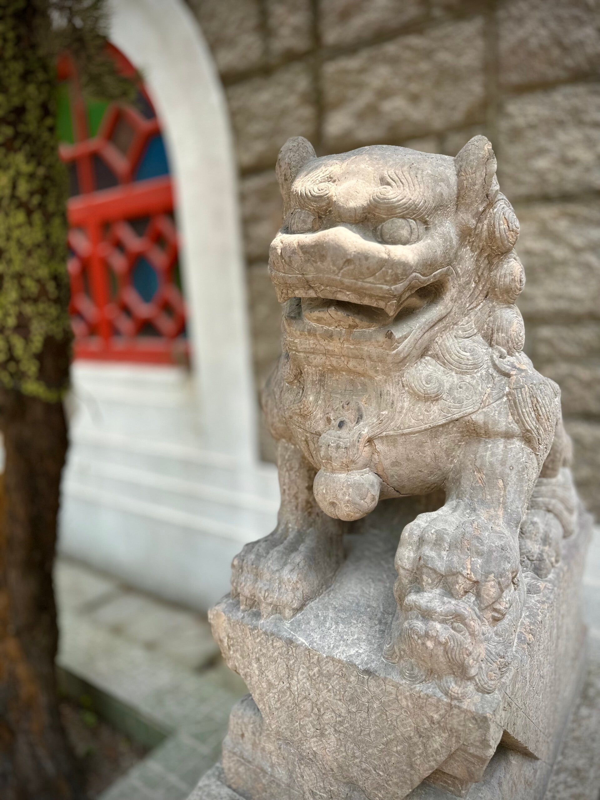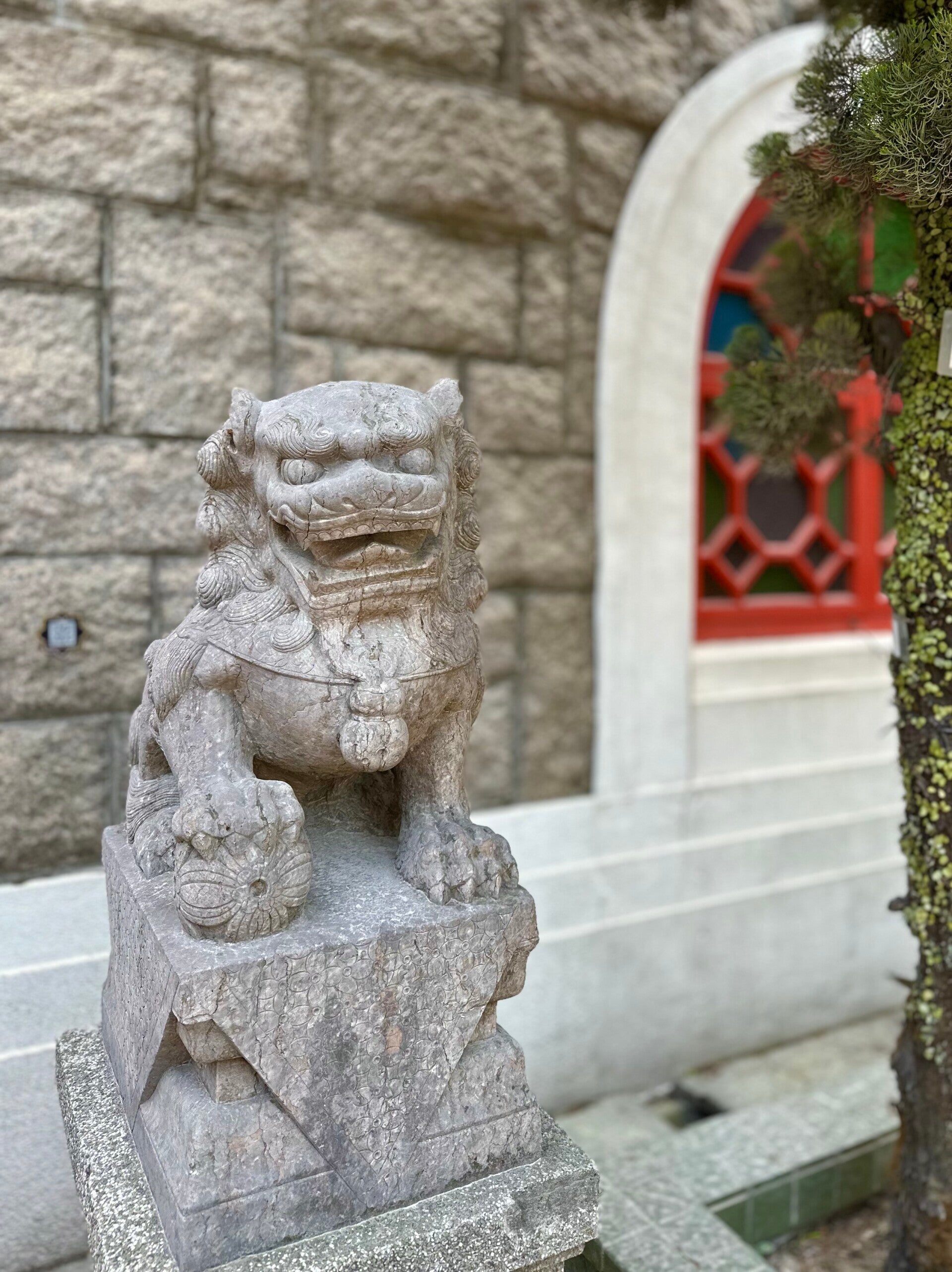 Die obigen Steinfiguren symbolisieren einen weiblichen und einen männlichen Löwen. Woran erkennt man den männlichen Löwen?