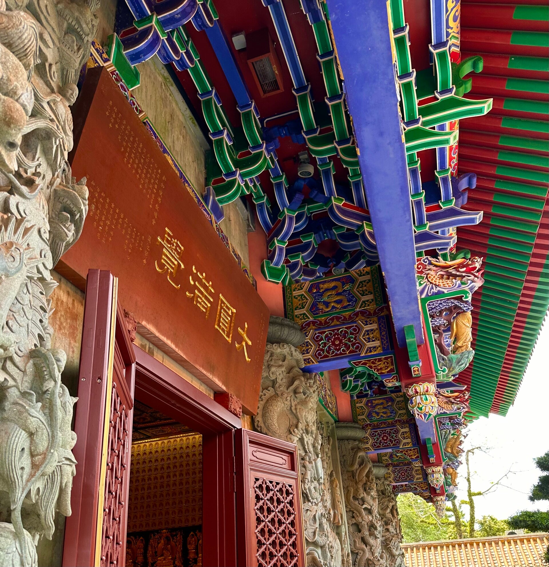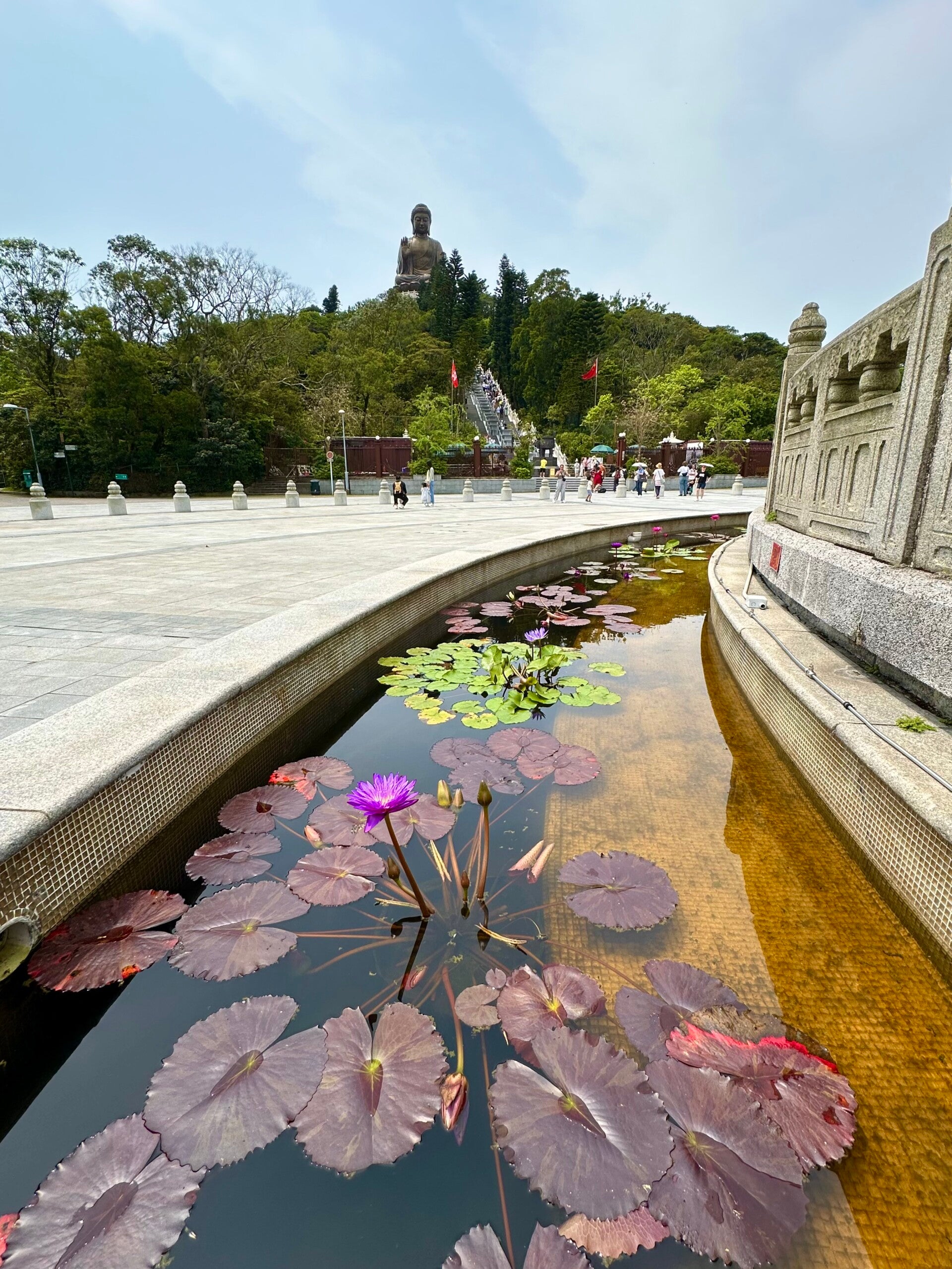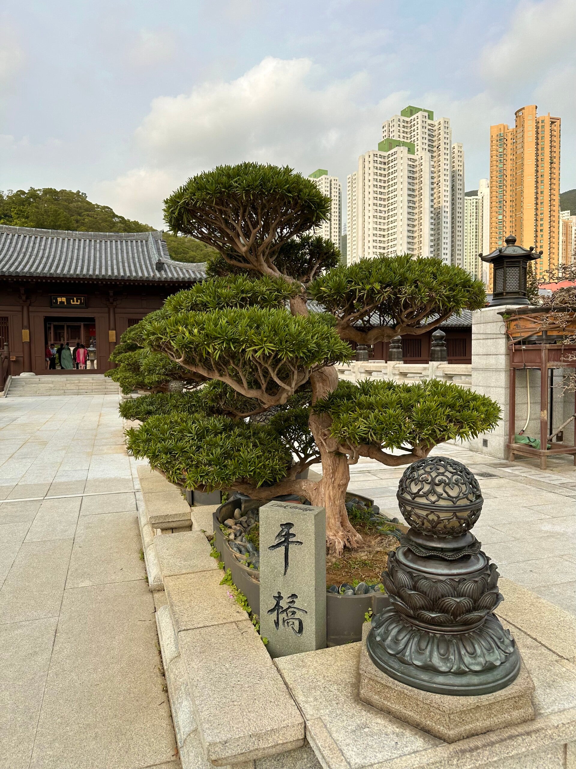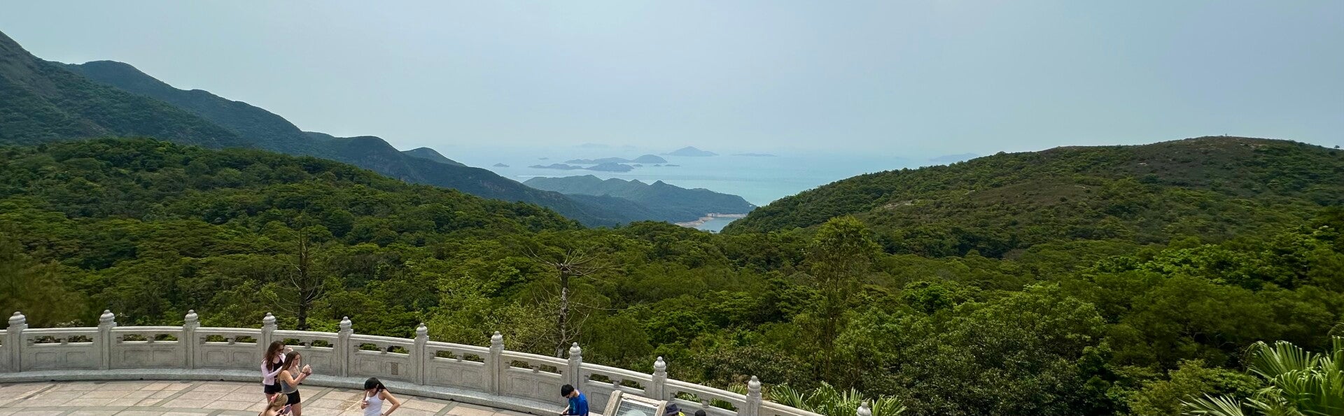 Hier oben erwartete mich ein atemberaubender Ausblick, zur einen Seite auf den Ozean, mit seinen vorgelagerten Inseln. Zur anderen Seite ein eindrucksvoller Anblick des Po-Lin-Klosters, welches ich gerade besucht hatte.