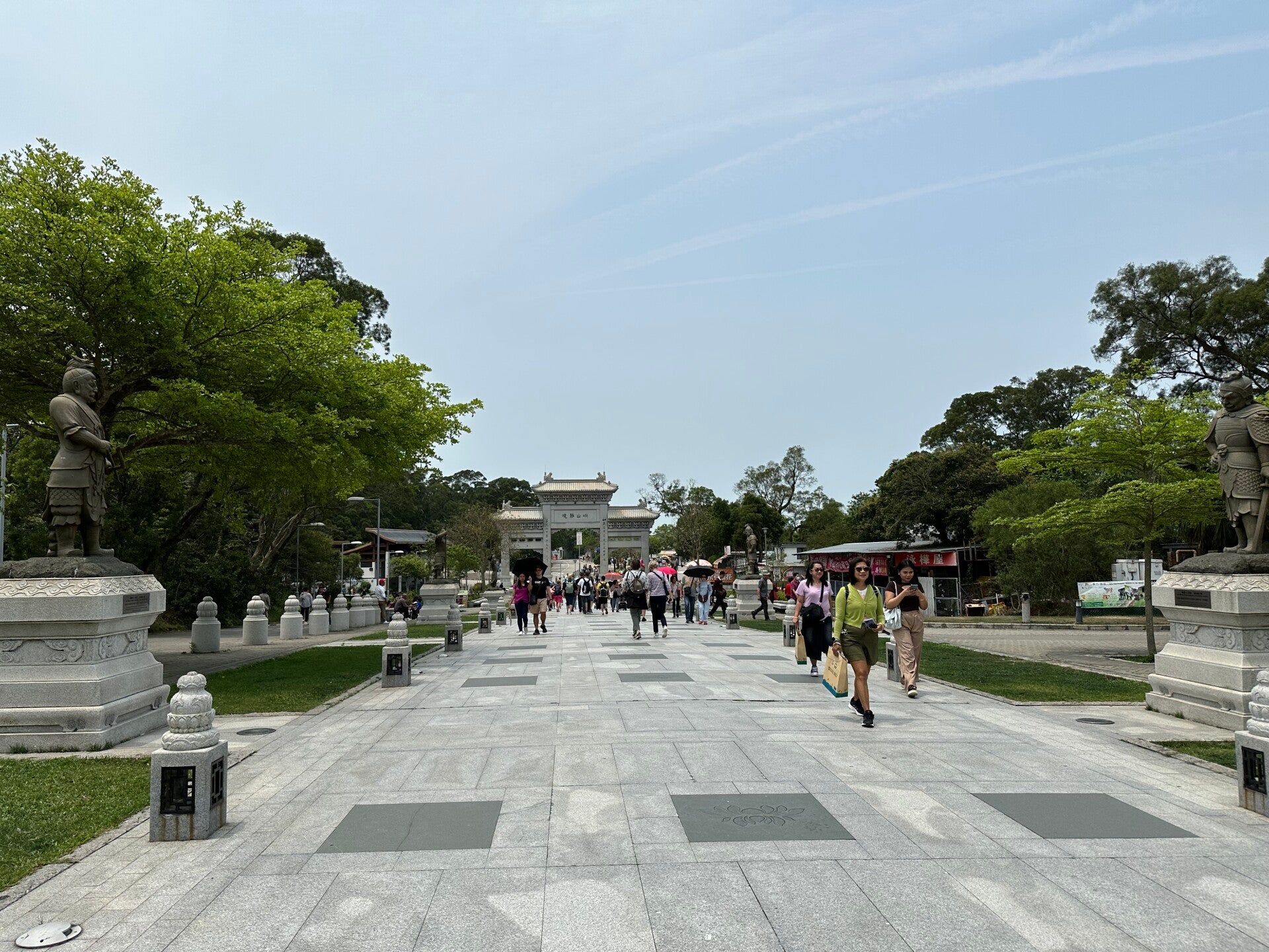 Die Bergstation der Seilbahn liegt in einem touristischen Village mit vielen kleinen Geschäften. Zu Fuß machen wir uns auf den Weg zu unseren ersten Station, dem buddistischen Po- Lin-Kloster.