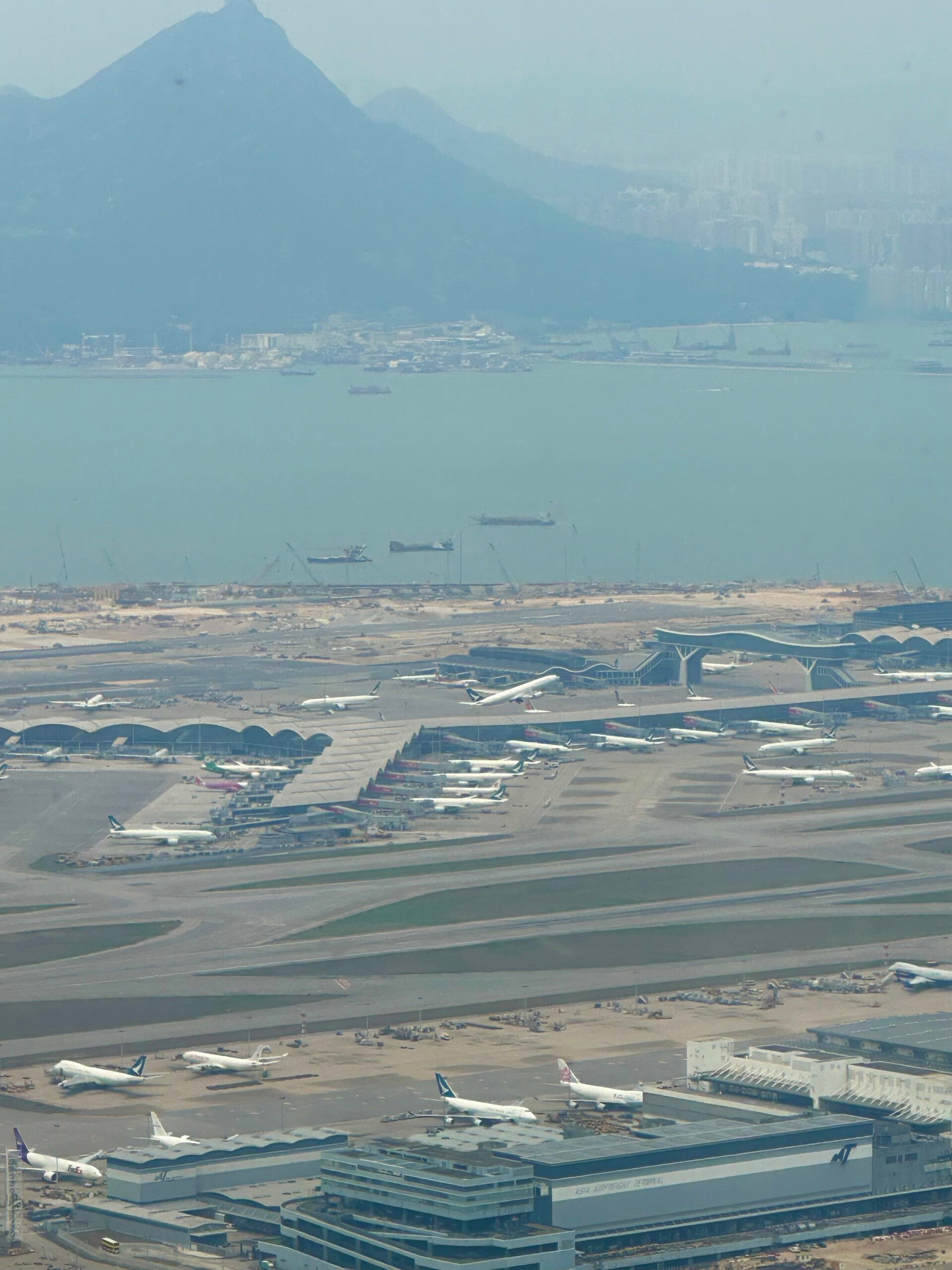 Hier, bei dem Blick auf den neuen Flughafen Hongkongs Chek Lap Kok, der 1998 in Betrieb ging, und neben 70 Millionen Passagieren im Jahr, der größte Frachtflughafen der Welt ist, konnten wir den Maschinen beim Starten und Landen von oben zusehen.