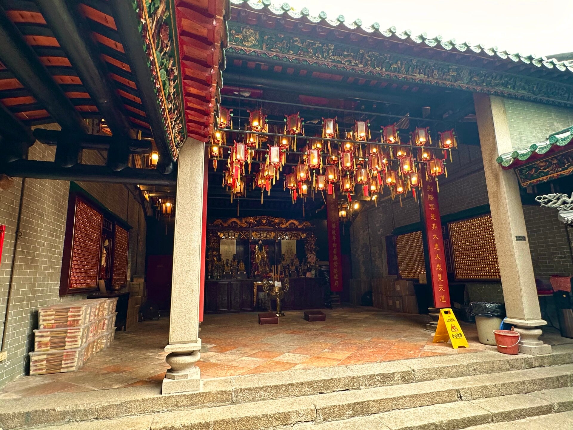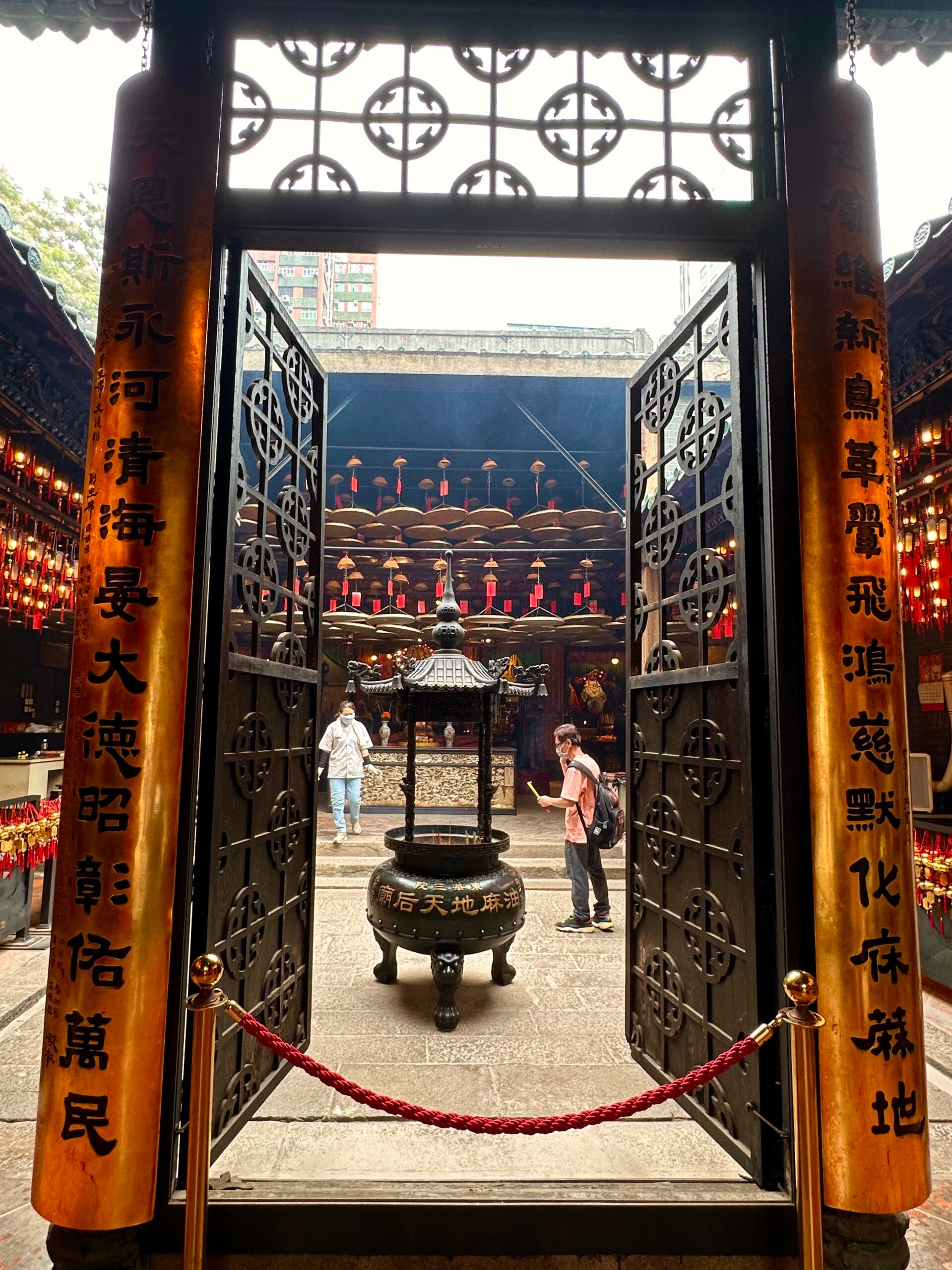 Nach einem Spätaufsteherfrühstück vor der Kulisse von Hongkong, machten wir uns auf zu unserem ersten Ausflug. Hongkongs Märkte und Tempel, sollte heute das Ausflugsmotto sein. So führte uns der erste Weg in der 7 Millionen Einwohner Stadt an der Südküste der Volksrepublik China, direkt zum ersten Tempel. Hongkong hat jede Menge Wolkenkratzer und zwischen diesen Hünen finden sich immer wieder kleine Tempel in denen man seinen Göttern huldigen kann.