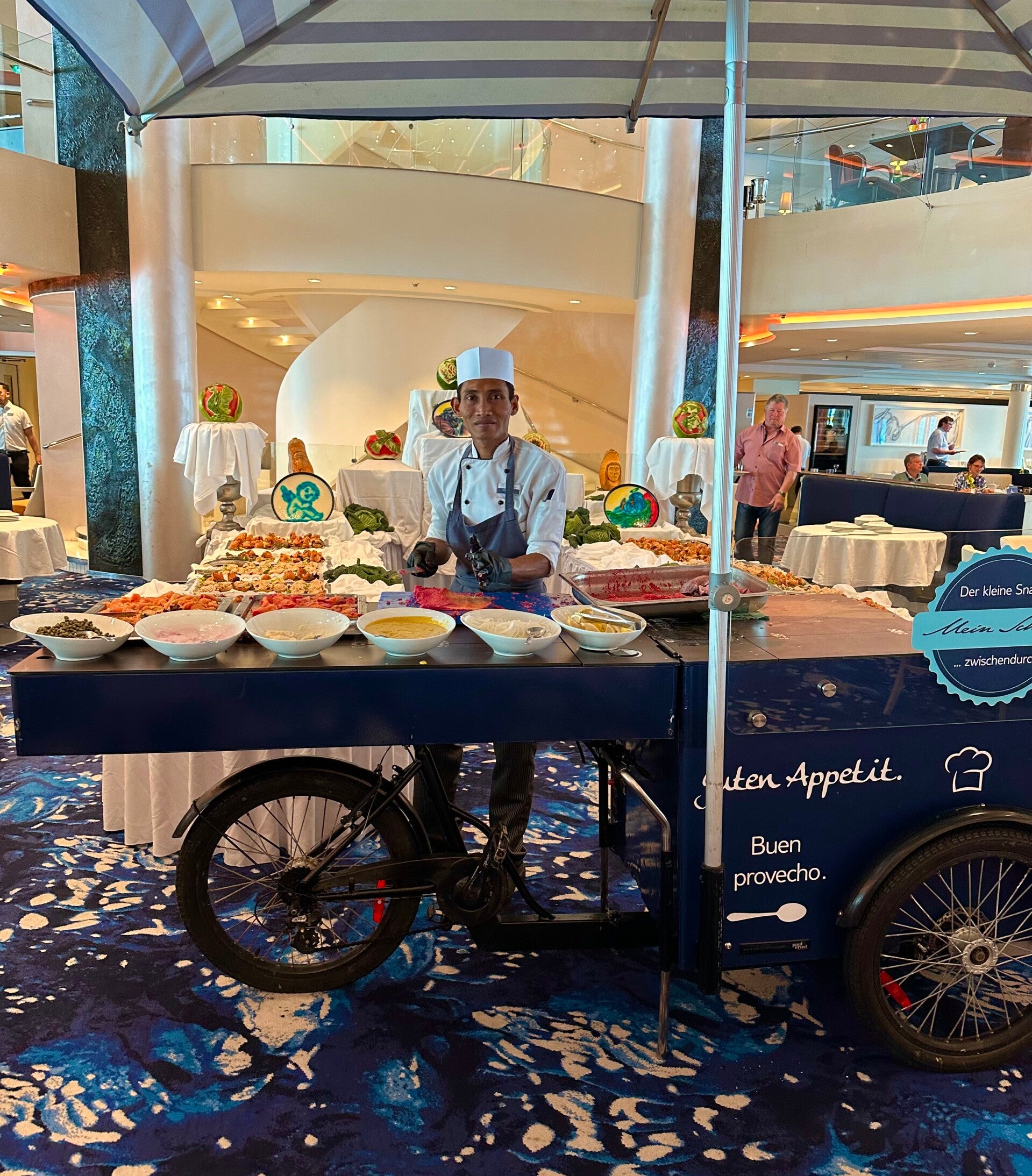 Am Abend ging der Genuß im Restaurant Atlantik, mit internationalem Käsebuffet, weiter. Das Essen auf Mein Schiff ist generell immer gut, aber auf dieser Fahrt muss man wirklich sagen: Überragend! Essen und gute Laune sind eben wirklich auch abhängig vom Küchenchef, dem Kapitän und dem Kreuzfahrtdirektor, dass lehrte uns die Erfahrung.