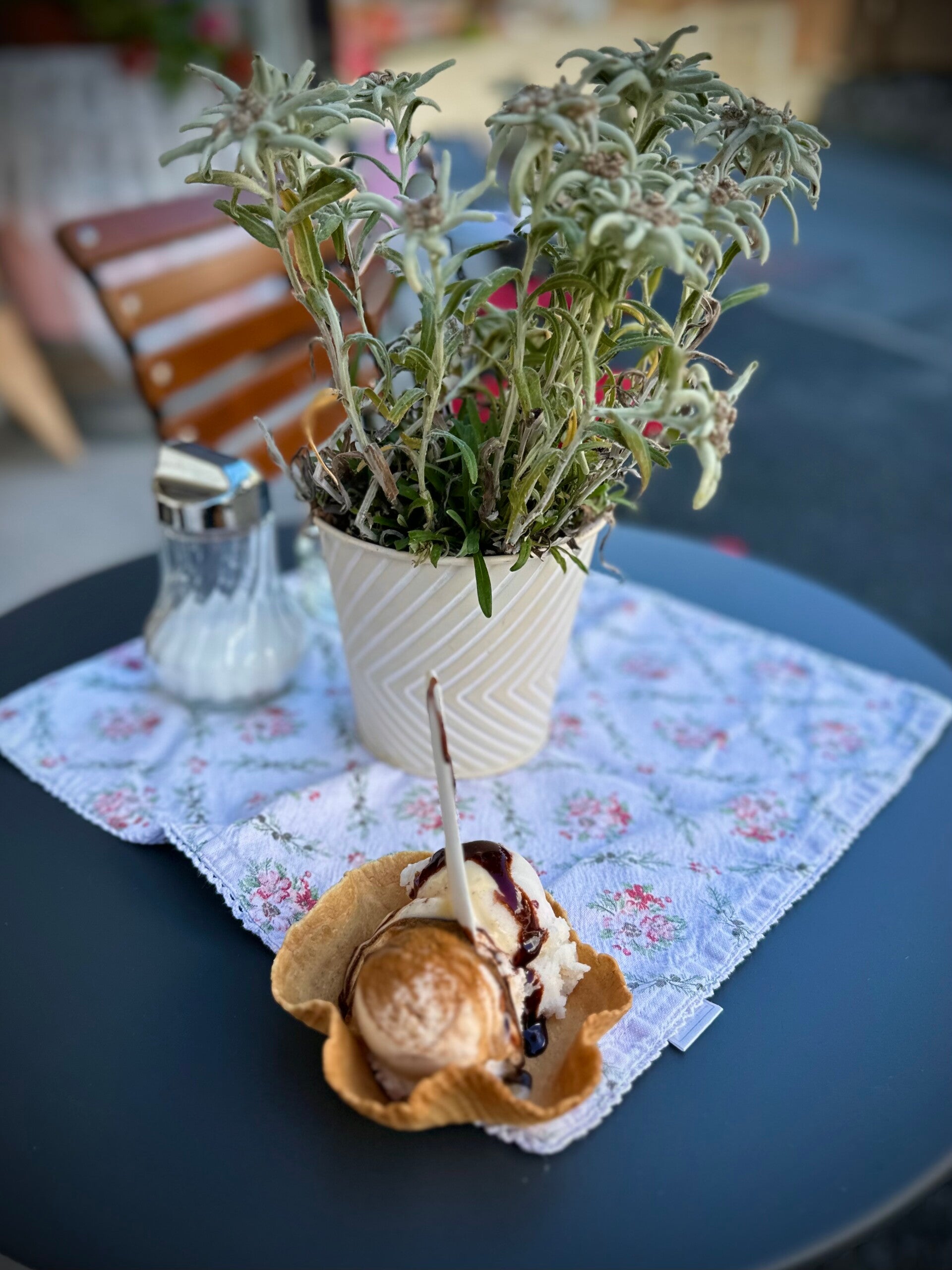 Auch der Dorfplatz in Going erscheint auf den ersten Blick eng, klein und unwirklich. Was ihm aber nichts von seiner Schönheit eines Dorfmittelpunktes nimmt. In der Kirche bekamen wir ein kostenlose Probe der Orgelmusik, und in einem Nebengässchen fanden wir eine hervorragende kleine Eismanufaktur.