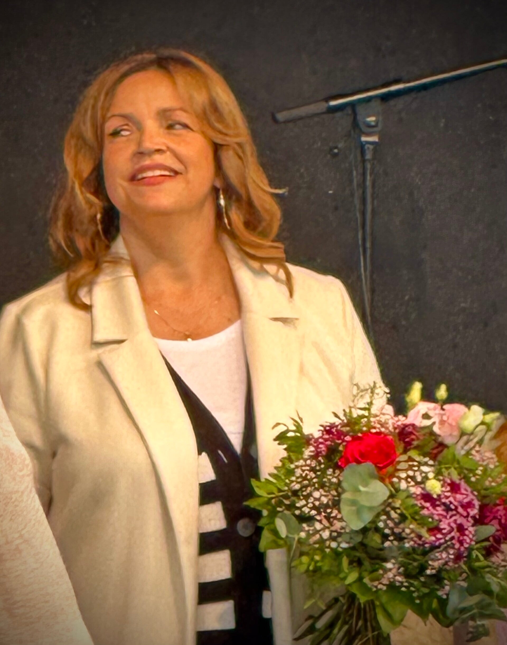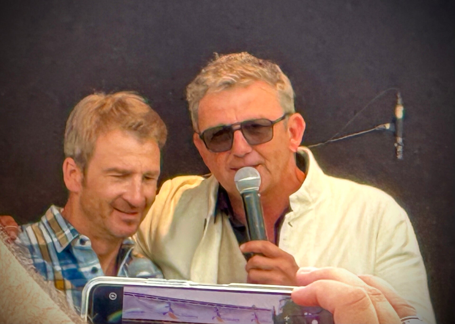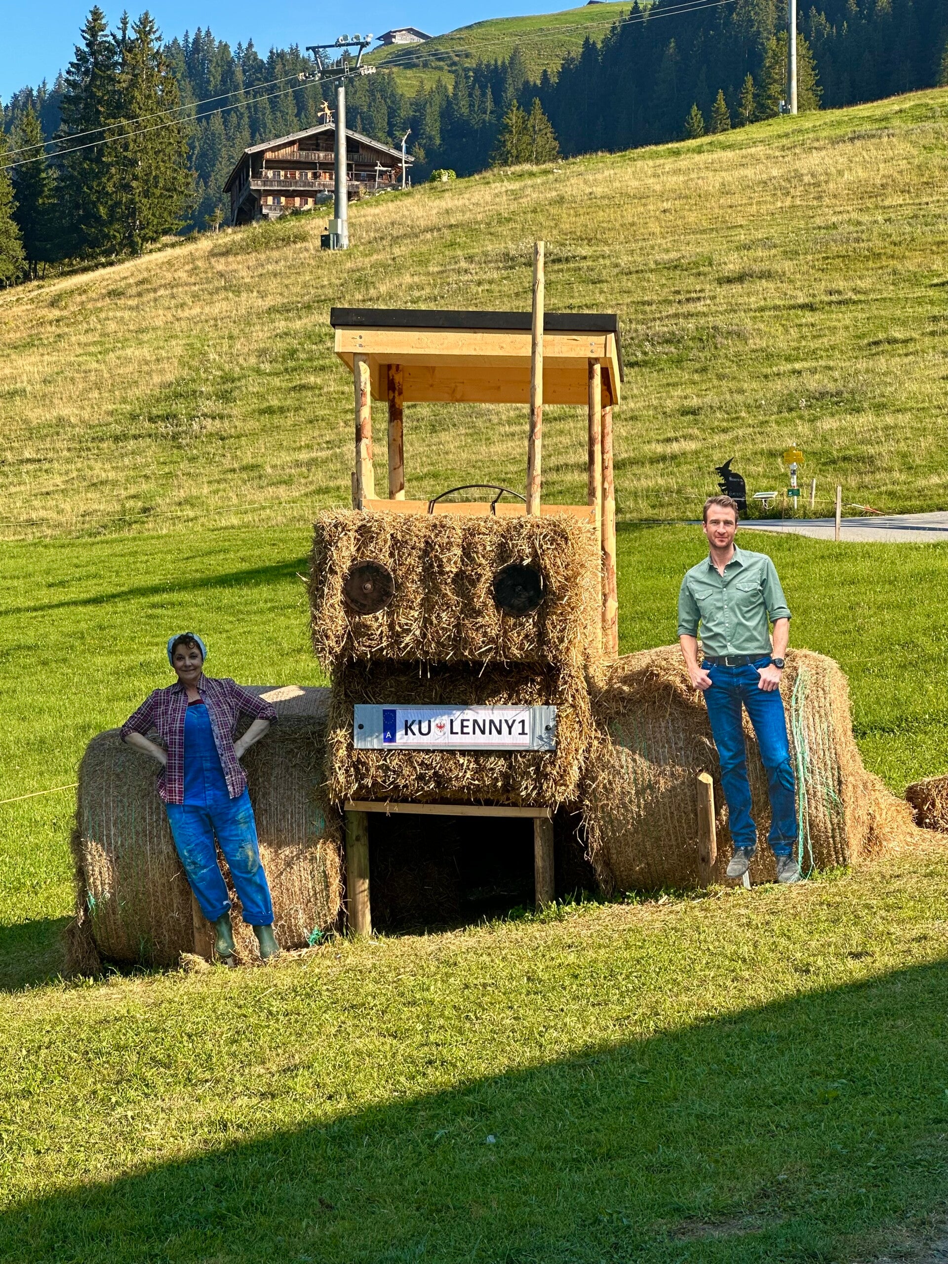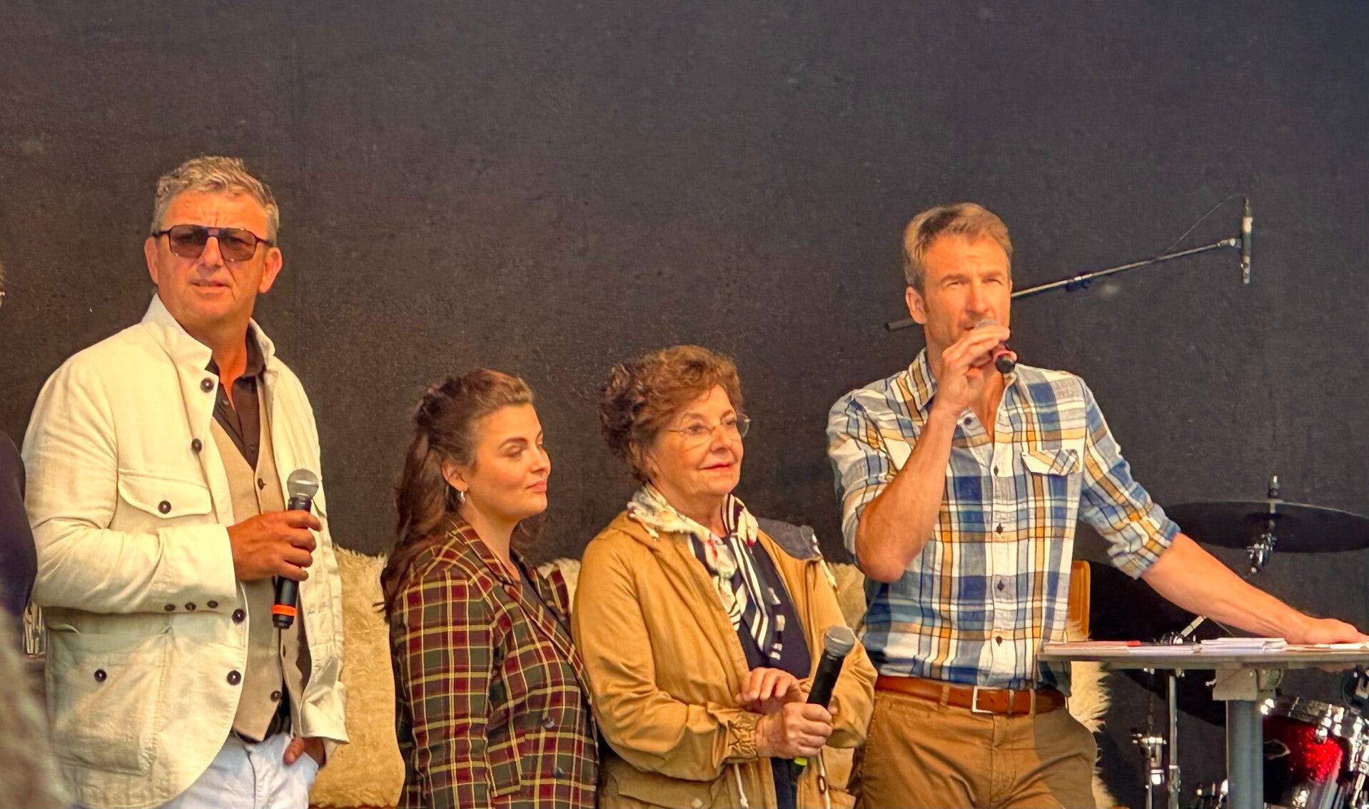 Was uns nach der Musik der Vorgruppe - tolle Musik, ganz der unsere Geschmack - erwartete war ein mehrstündiges sehr kurzweiliges Bühnenprogramm mit den Schauspielern der Serie „Der Bergdoktor“ gedreht hier am Wilden Kaiser. Nein vom Balkon aus reichte nicht, ich musste schon dort mit vor die Bühne. Standesgemäß kam Bauer Hans, mit Oma Lisbeth und Lilly, mit dem Traktor vorgefahren. Und Dr. Martin Gruber chauffierte Dr. Kahnweiler mit dem alten grünen Mercedes zu den Brettern die für manche die Welt bedeuten.