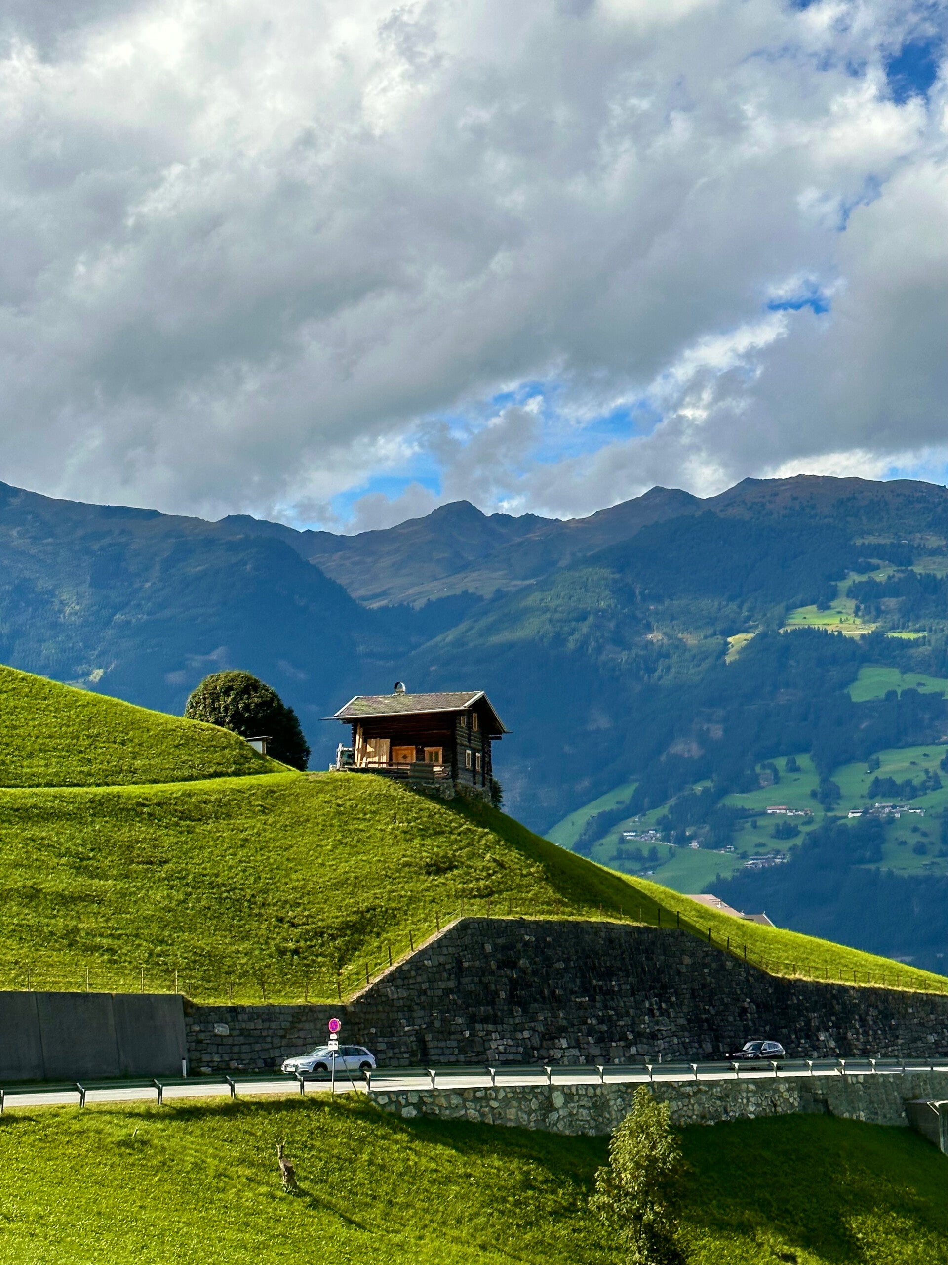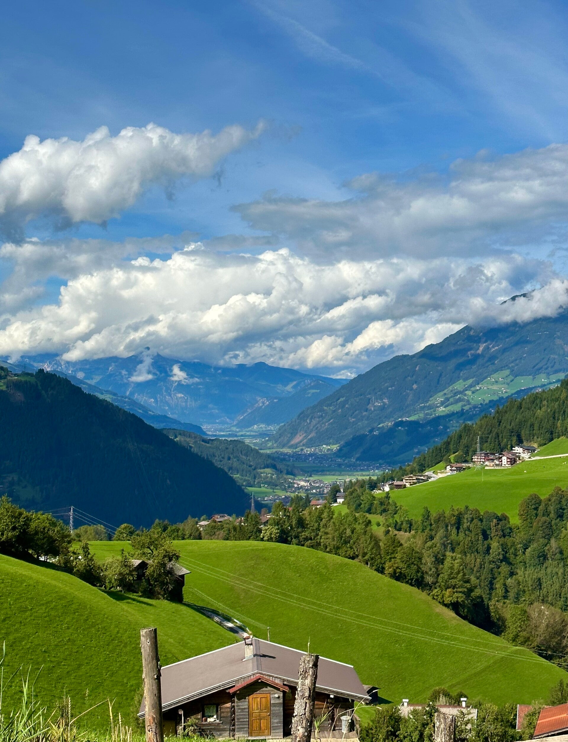 Der weitere Weg unserer heutigen Route führte uns über Kitzbühl bis zu den Krimmler Wasserfällen, die wir heute nur passierten. Ausführlicher "erwandert" haben wir sie schon vor einigen Jahren mit unseren Kindern. Über den Gerlospass ging es anschließend Richtung Mayerhofen im Zillertal. Einen kleinen Mittagssnack genossen wir in einer Käserei direkt an den Serpentinen ins Zillertal, mit einem umwerfenden Ausblick. Hier wanderte der erste Käse in unsere Kältebox.