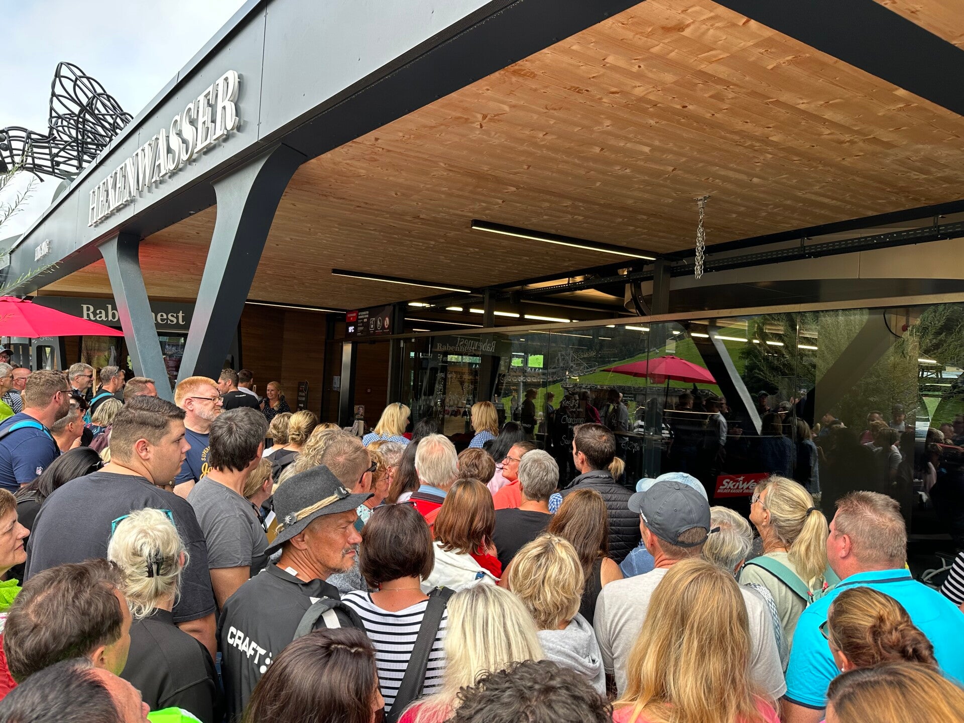 Am nächsten Morgen konnten wir vom hauseigenen Balkon schon um 8 Uhr den Soundcheck der Musikgruppe hören und mit den ersten Gondeln kamen auch die ersten Fans, die sich schon tapfer vor die Bühne stellten. Ca. 4000 sollten es noch werden.