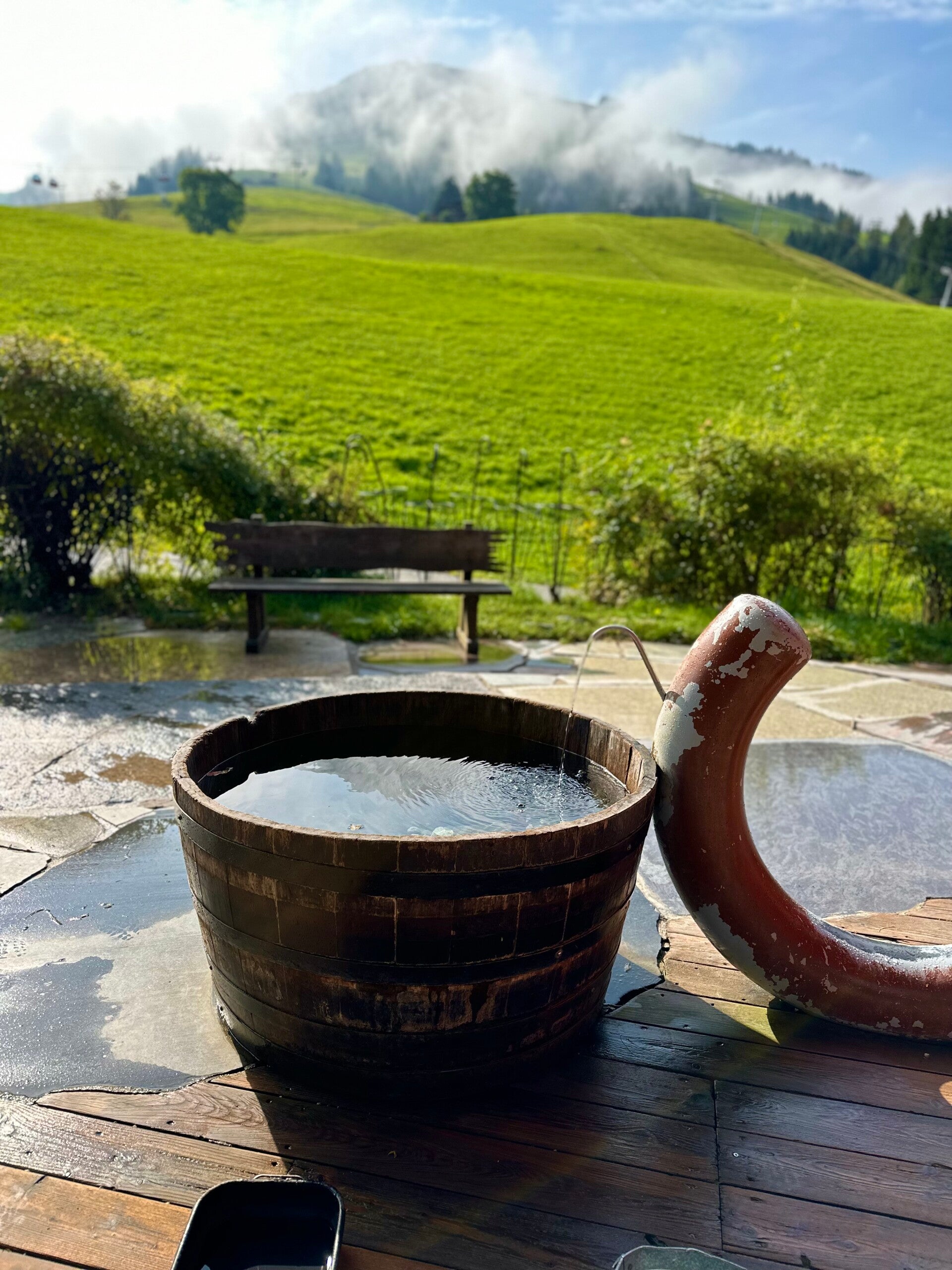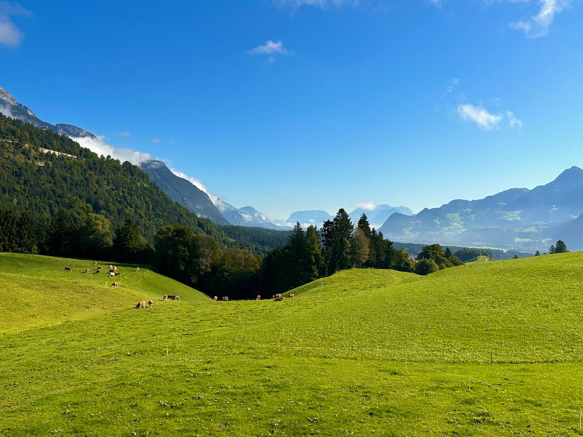 Der nächste Morgen bescherte und wieder herrliche Aussichten von unserem Zimmer. Als hätte man die Täler mit Watte ausgestopft. Gefrühstückt haben wir wieder bei strahlendem Sonnenschein, bevor wir unser Hotel für dieses Jahr verließen, um uns nochmal auf den Weg zum Achensee zu machen.