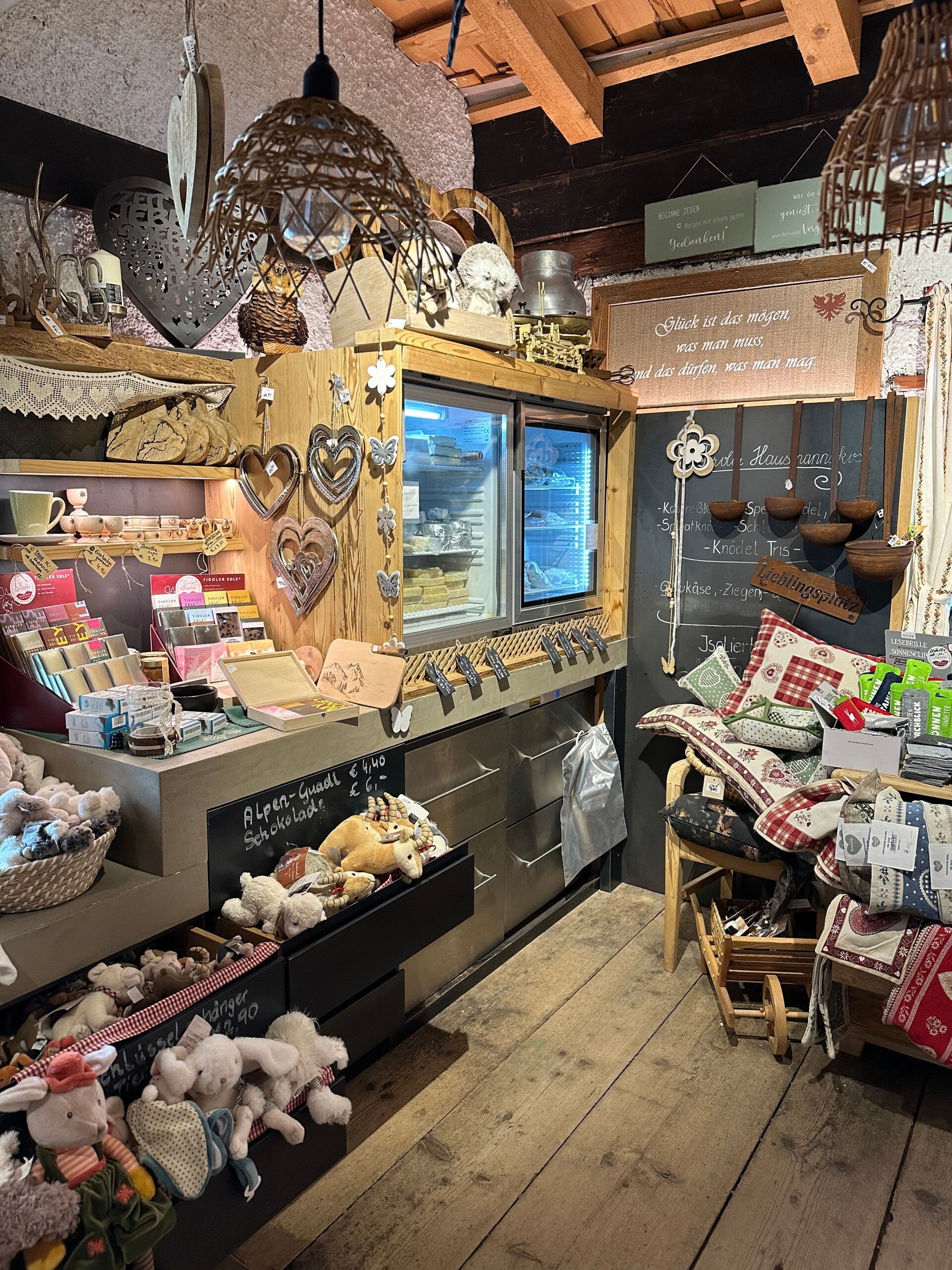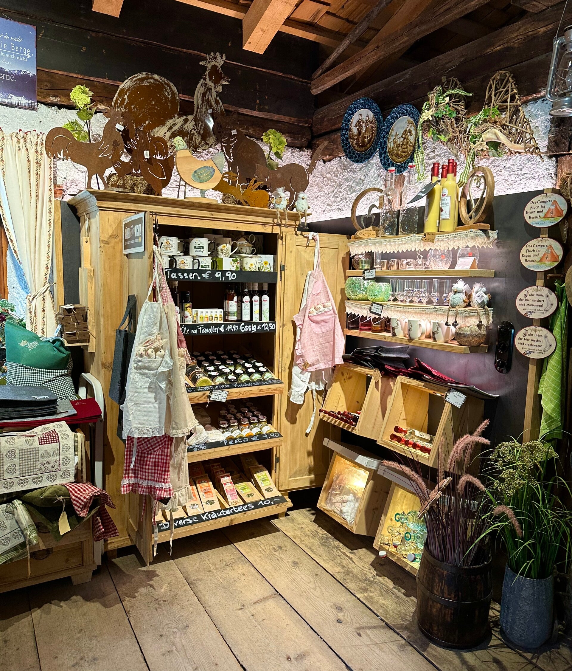 Man meint nicht, was es in der kleinen Kasalm, nemben Schinken, Speck und Käse noch alles zu entdecken gibt. Ein liebevoll eingerichtetes Lädchen, läd zum Bummeln und Mitbringsel kaufen ein.