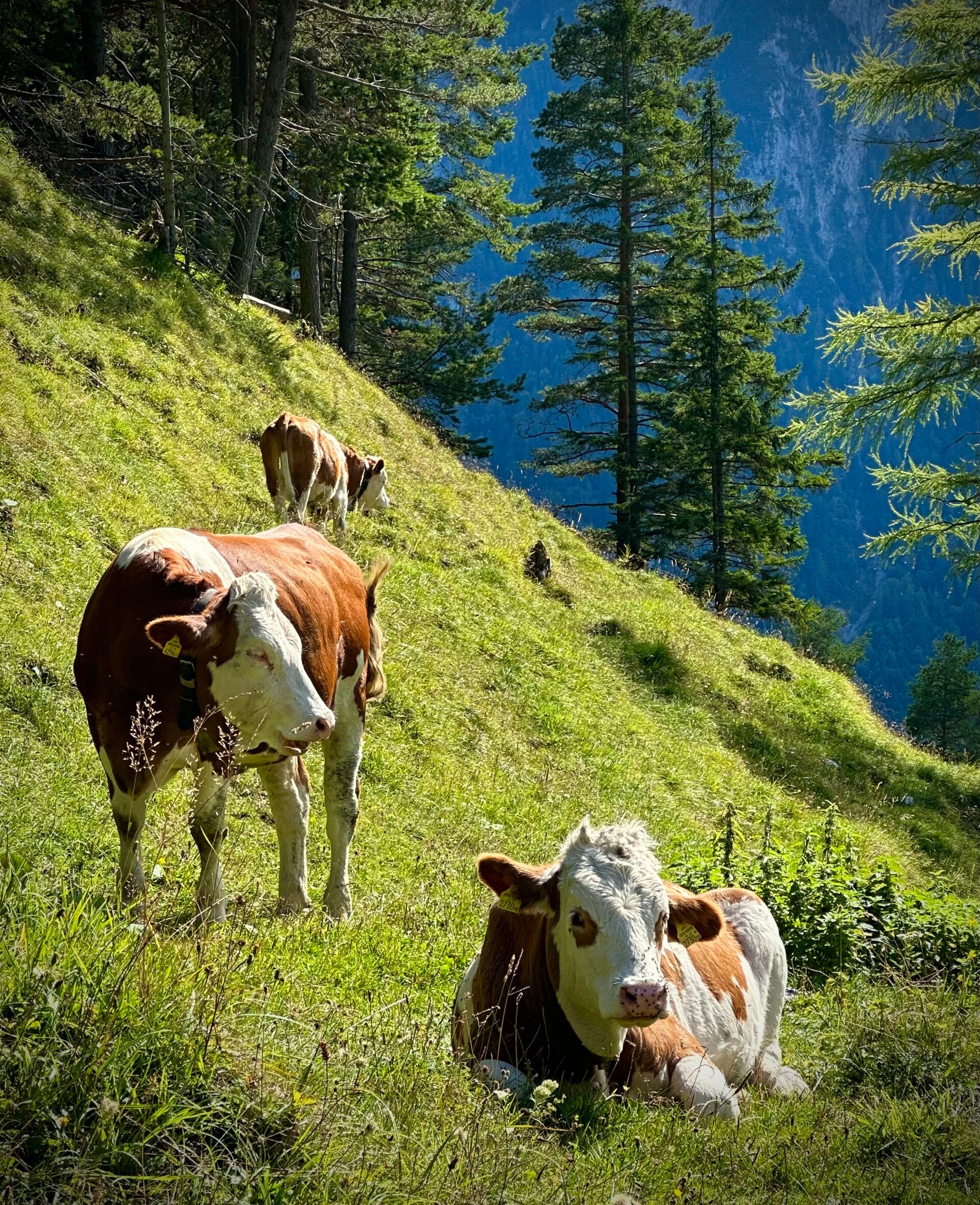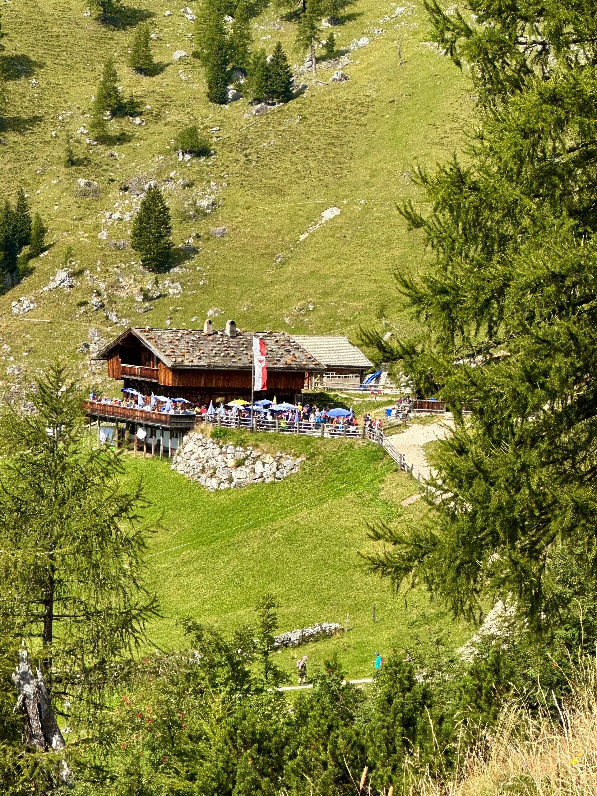 Schon bald darauf lag die Dafalzalm in der Sonne, in mitten von saftigen Bergwiesen vor uns. Hier ergatterten wir ein schattiges Plätzchen und gönnten uns eine kleine Vesper und eine Erfrischung vor dem Abstieg.
