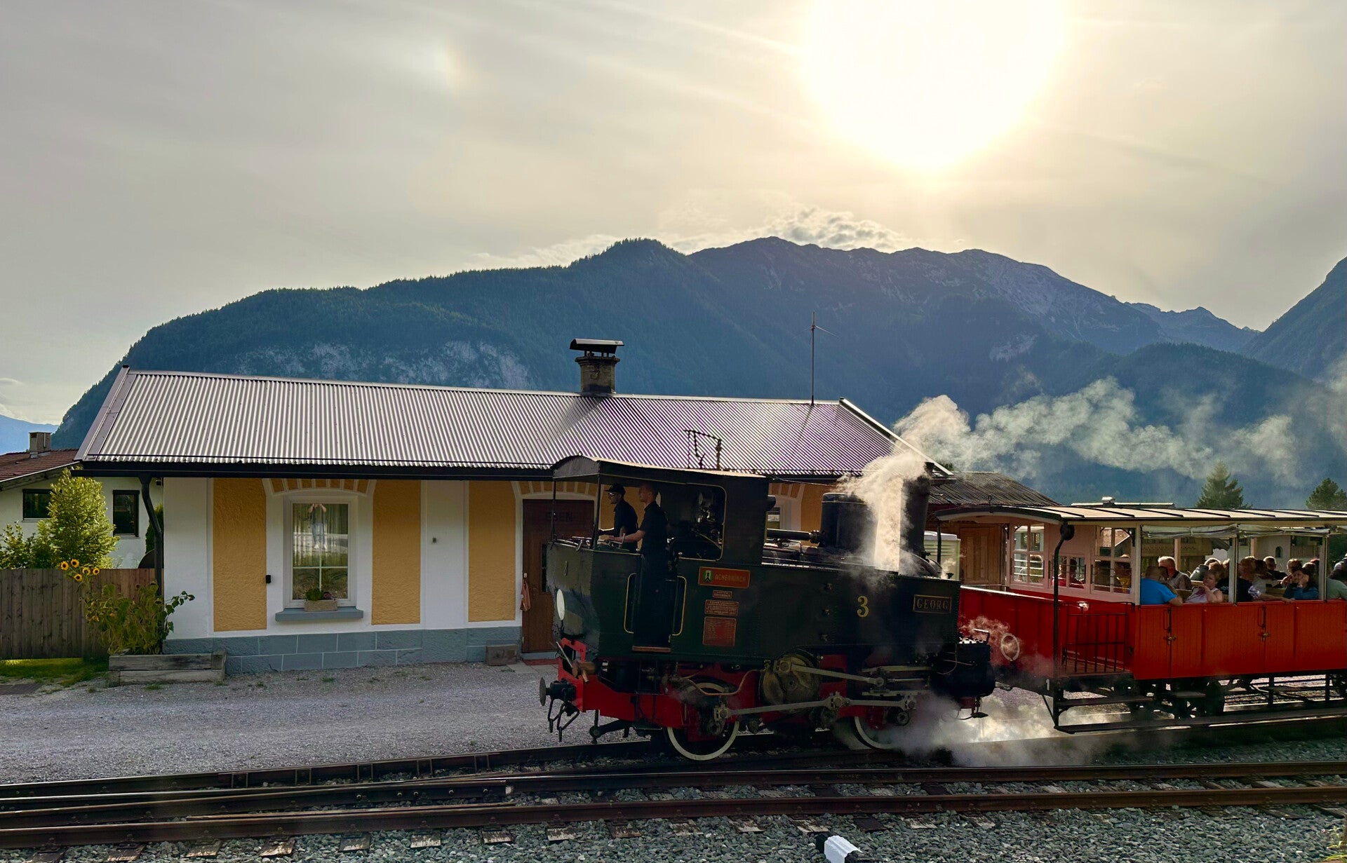 Schon seit 1889 fährt die Achenseebahn von Jenbach im Inntal zum Tiroler Meer, dem Achensee. Die älteste Dampf-Zahnradbahn der Welt, überwindet auf den knapp 7 Kilometern 440 Höhenmeter. Schon als Kind durfte ich mit unserem Vermieter, der im Hauptberuf Lokführer war, auf der alten Dampflok mitfahren.