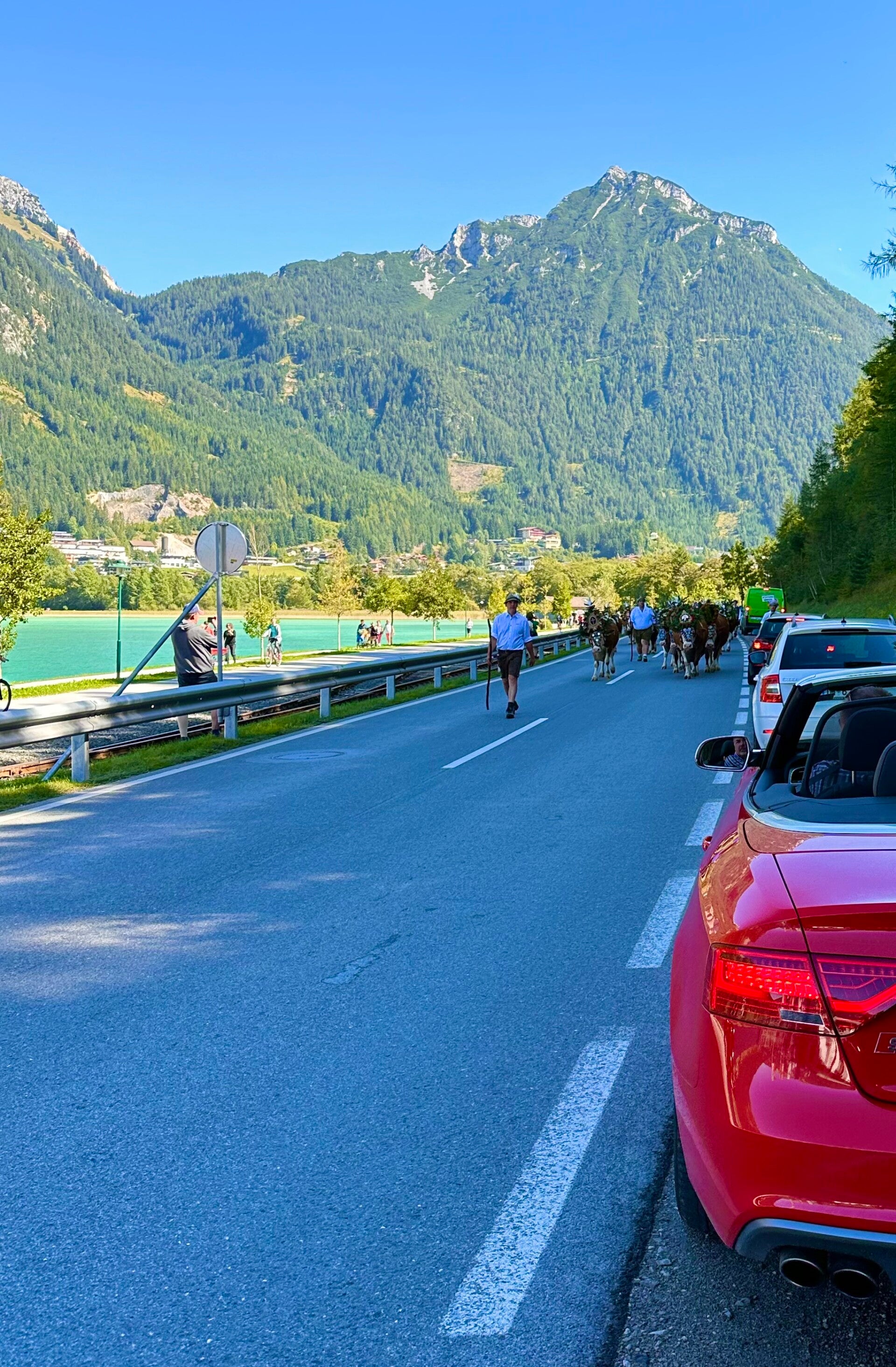 Ein letzter Blick auf den See, und als wir den Heimweg antraten, durften wir uns noch an einem weiteren Almabtrieb, von Achenkirch nach Pertisau, erfreuen. Dann machten wir uns auf die Rückfahrt, und ohne größere Verzögerungen kamen wir entspannt Zuhause an.