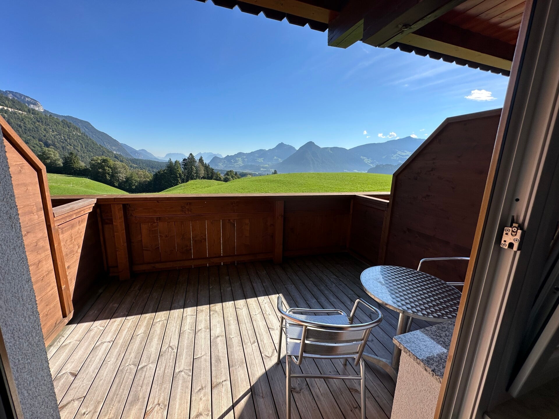 Und der kleine Balkon mit Premiumaussicht, auf den Wilden Kaiser, die umliegenden Berge und natürlich auf den Gruberhof. ;-)