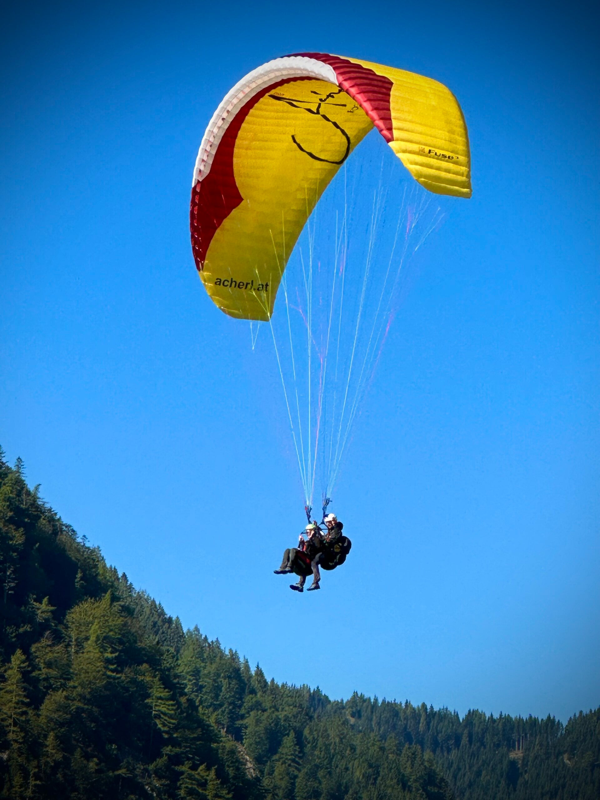 Mittlerweile hatten auch die Paragleiter fertig gefrühstückt und drehten ihre Runden über unseren Köpfen, bevor sie zur Landung ins Tal gleiten.