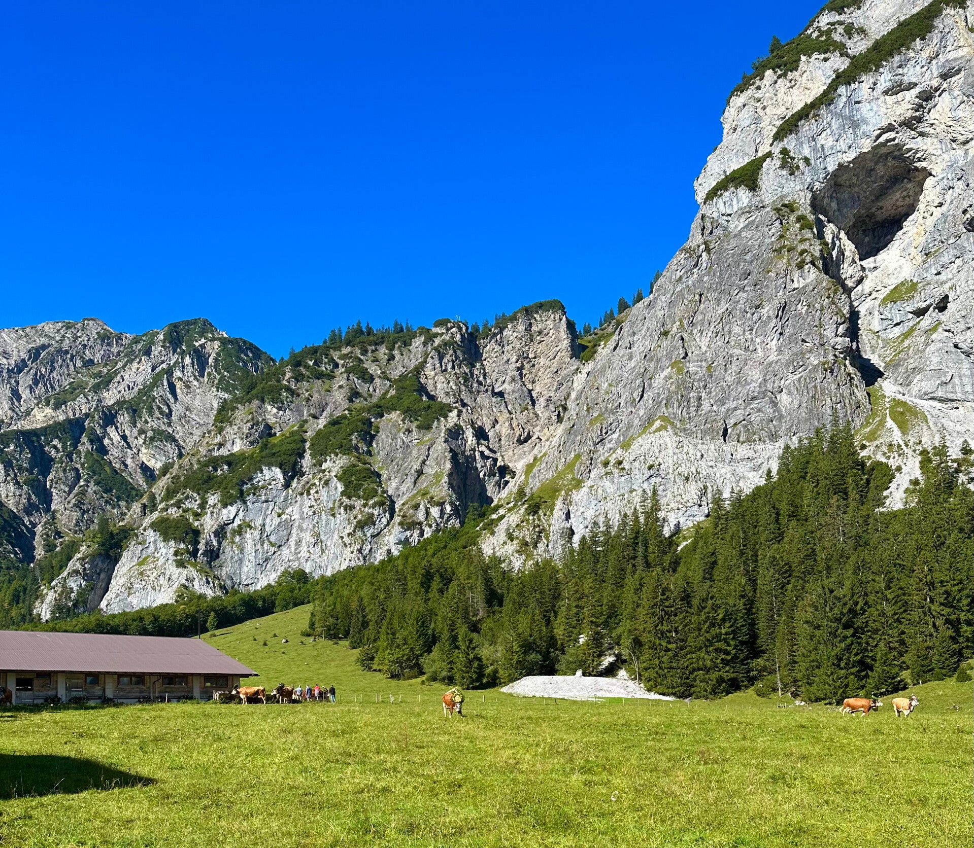 Mit einem ausgezeichneten Frühstück gestärkt, machen wir uns auf den Weg, über Pertisau am Achensee, in die Gramaialm.