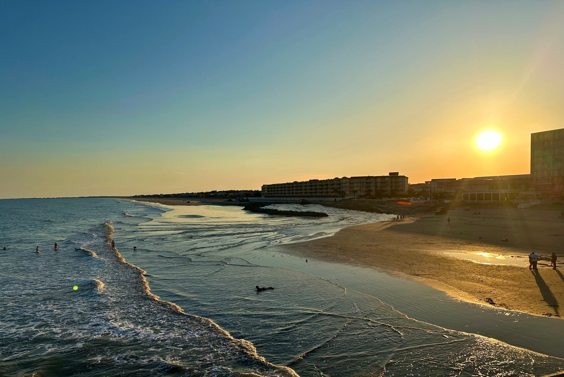 Die Seebrücke von Pier 101 war unser Ziel. Dort fanden wir auch ein leckeres Abendessen, mit Blick auf den Strand und einer angenehmen Meeresbrise, bevor wir uns auf den Spaziergang zum äußeren Ende des Steges machten.