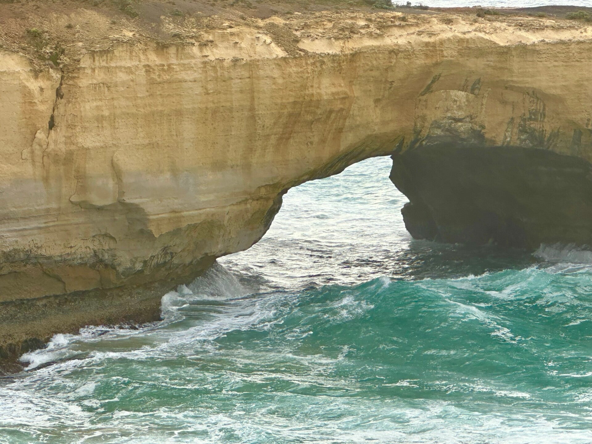 In Port Campell reihte sich dann ein sensationeller Aussichtspunkt an den Nächsten. Loch Ard Gorge, The Razorback usw. Stunden hätte man hier stehen und die Gewalt der Natur beobachten können. An den Gebilden, welche die unaufhörlich am Kalksandsteinbruch knabbernden Wellen erschaffen, kann man sich kaum satt sehen, immer wieder neue schöne Stellen entdecken, und dabei der Brandung lauschen. Und welches Glück wir hatten, dass nach dem leichten Regen vor kurzem jetzt wieder die Sonne für uns lachte.