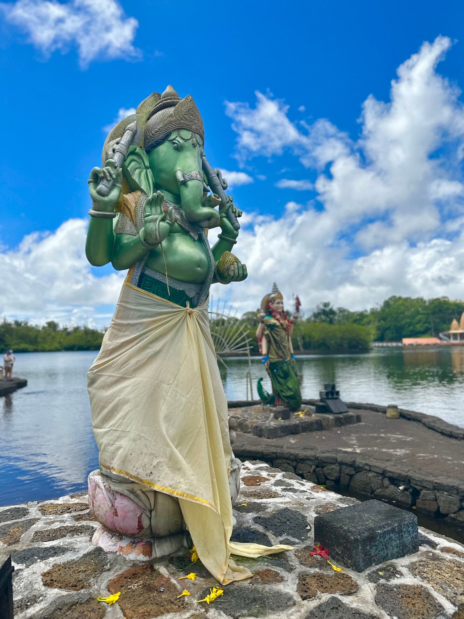 Der Kratersee „Grand Bassin“ beheimatet die wichtigsten Pilgerstätten der Insel, auf welcher 28 Religionen friedlich zusammen leben, hier sollte man sich ein Beispiel daran nehmen. Zu Beginn empfingen uns zwei - über 30 Meter hohe - Heiligenstatuen, davor riesige Flächen mit Parkplätzen - heute leer - aber an gewissen Tagen von der überwiegend indisch stämmigen Bevölkerung stark frequentiert, jedes neue Auto zum Beispiel muss den Heiligenfiguren erstmal vorgestellt werden.