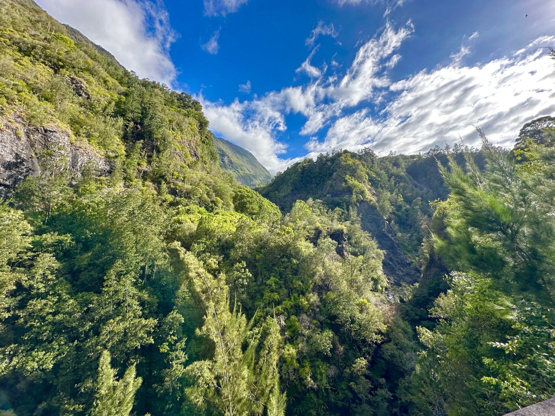 Für uns geht es weiter in das Landesinnere in die Salazie. In Mitten der Insel, die ebenfalls vulkanischen Ursprungs ist, bildete sich in der Frühzeit ein Vulkan, welcher vor Jahrtausenden in sich zusammen viel und das Landesinnere mit drei Talkesseln bildete - die Salazie. Dort hin führt nur eine einzige abenteuerliche Straße - die wir heute befuhren. Die beiden übrigen Talkessel sind ebenfalls bewohnt, müssen aber per Hubschrauber mit Nachschub an Lebensmitteln und alles weiterem beschickt werden, da hier keine Straßen vorhanden sind.