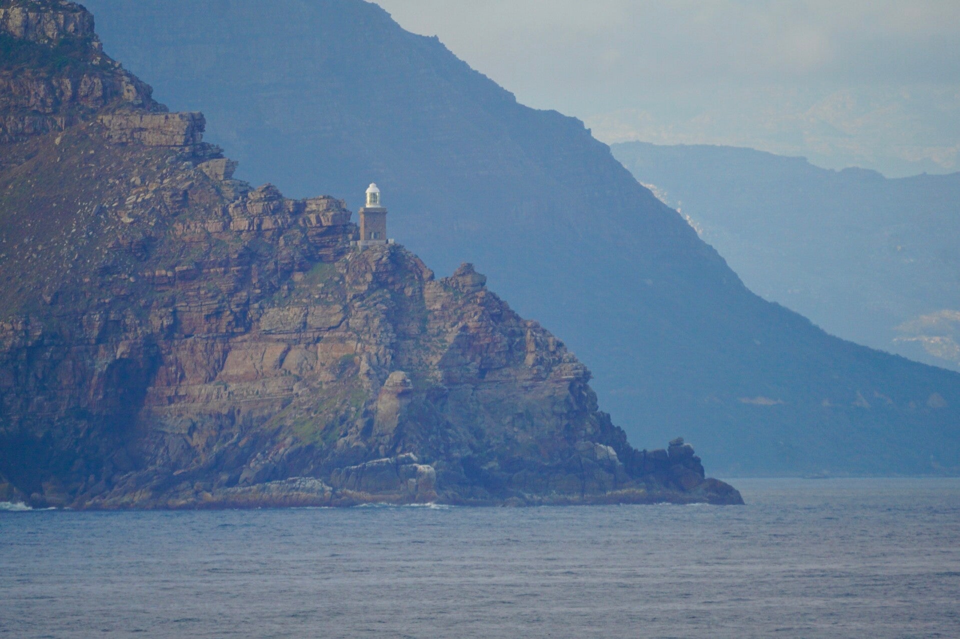 Dann tauchte das Kap mit seinem charakteristischem Leuchtturm auf der Spitze in unserem Blickfeld auf, und das Wasser vor uns war - wie zu Beginn der Reise am Kap Horn - unerwartet ruhig.